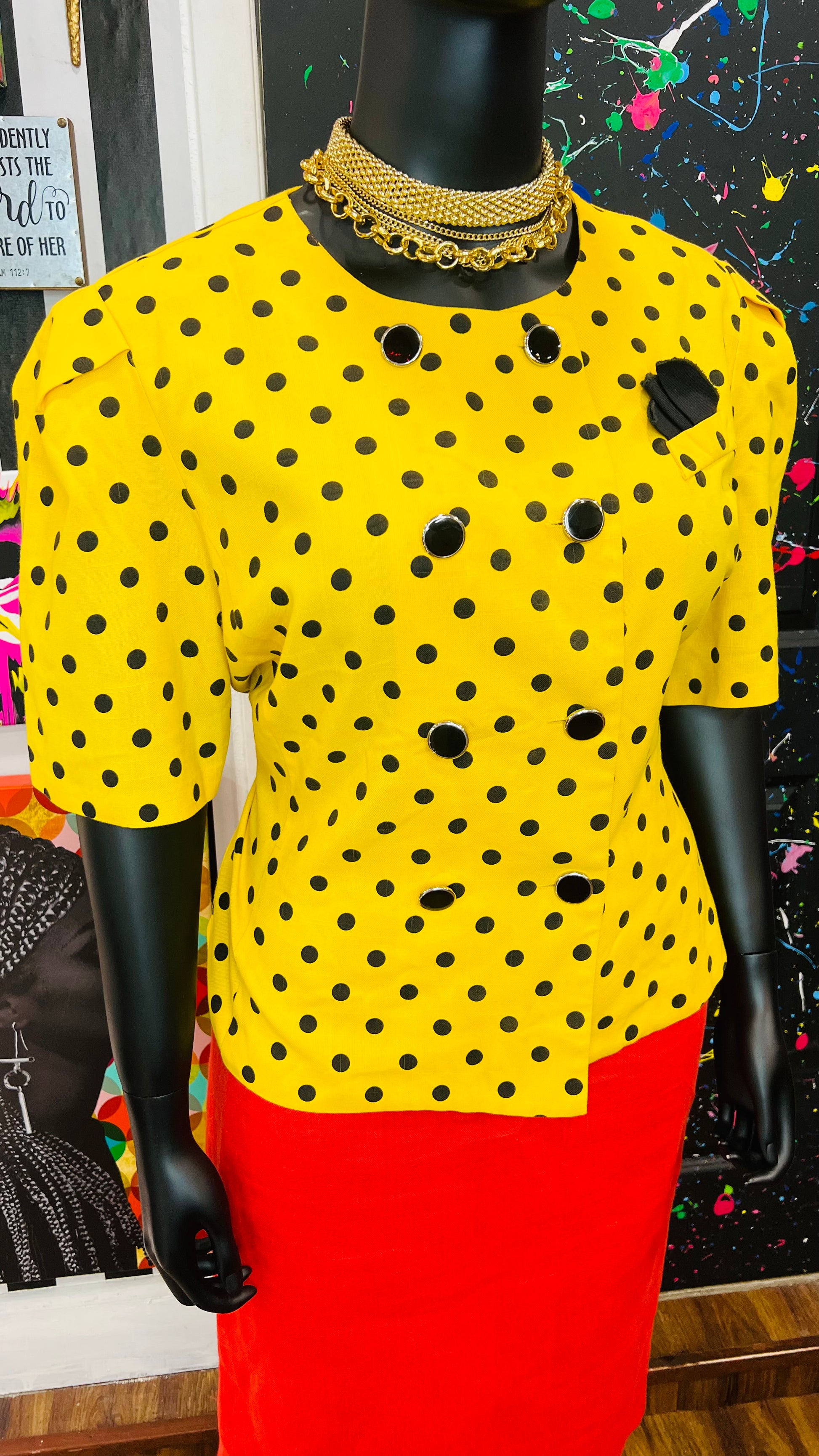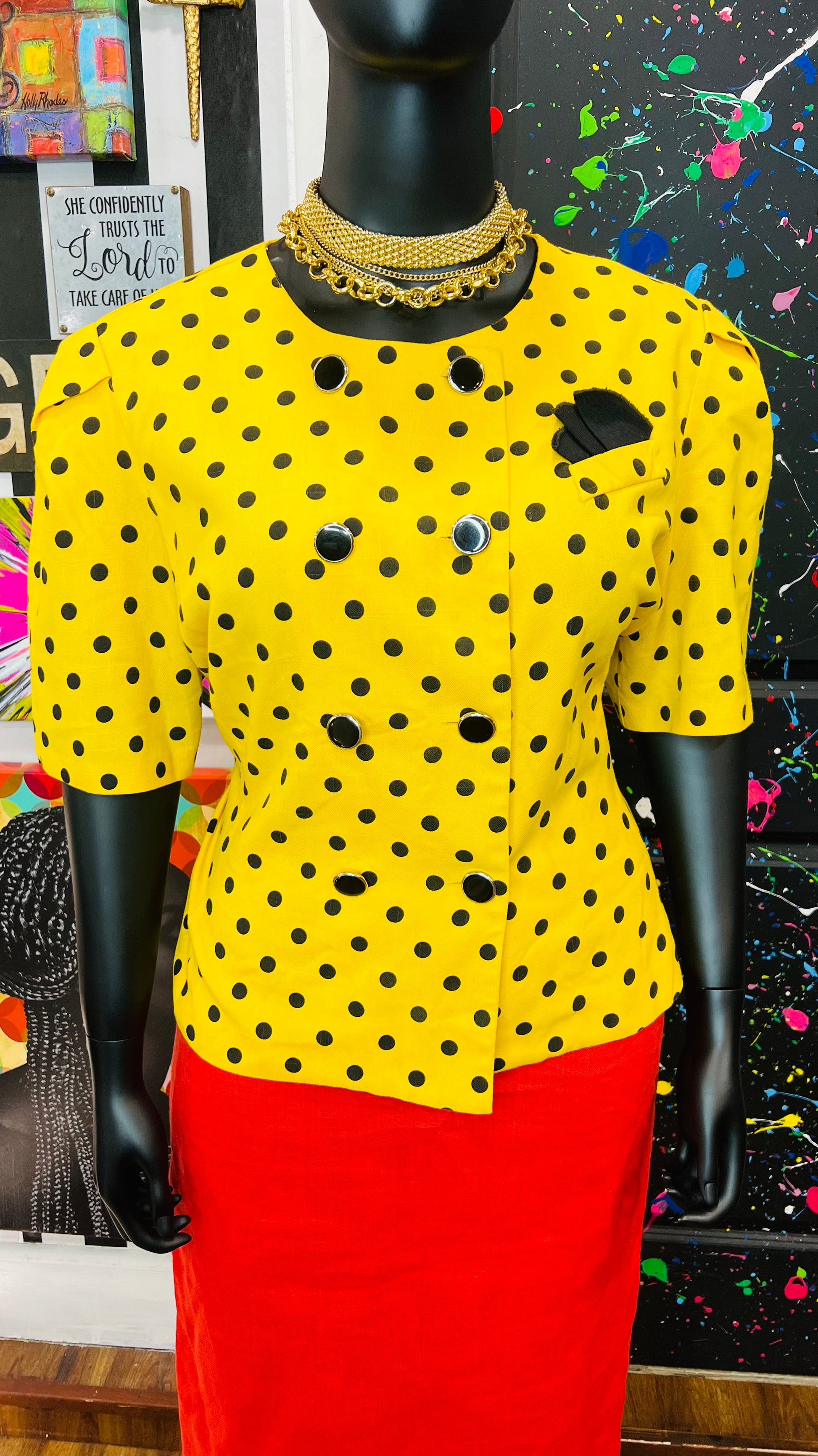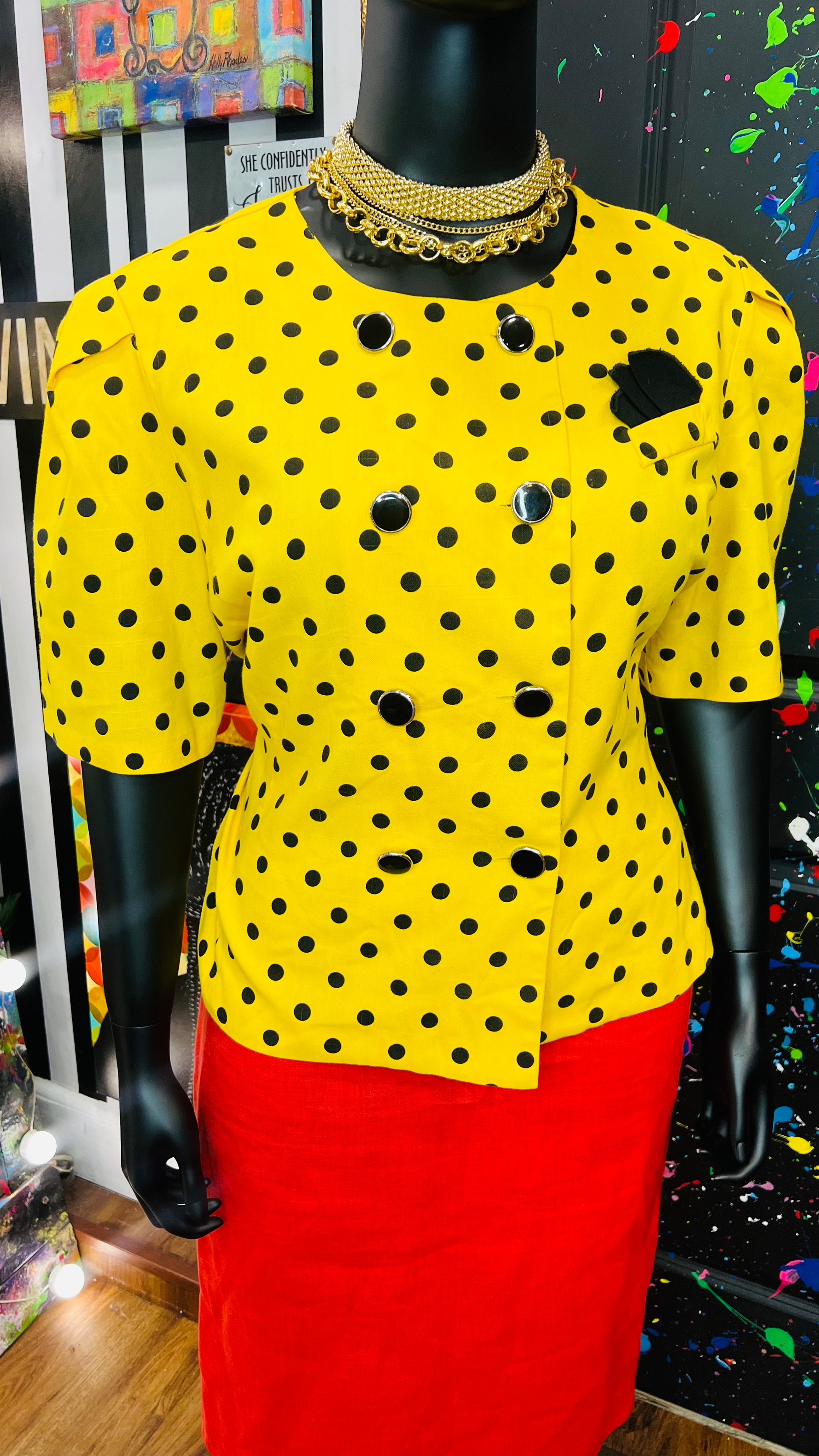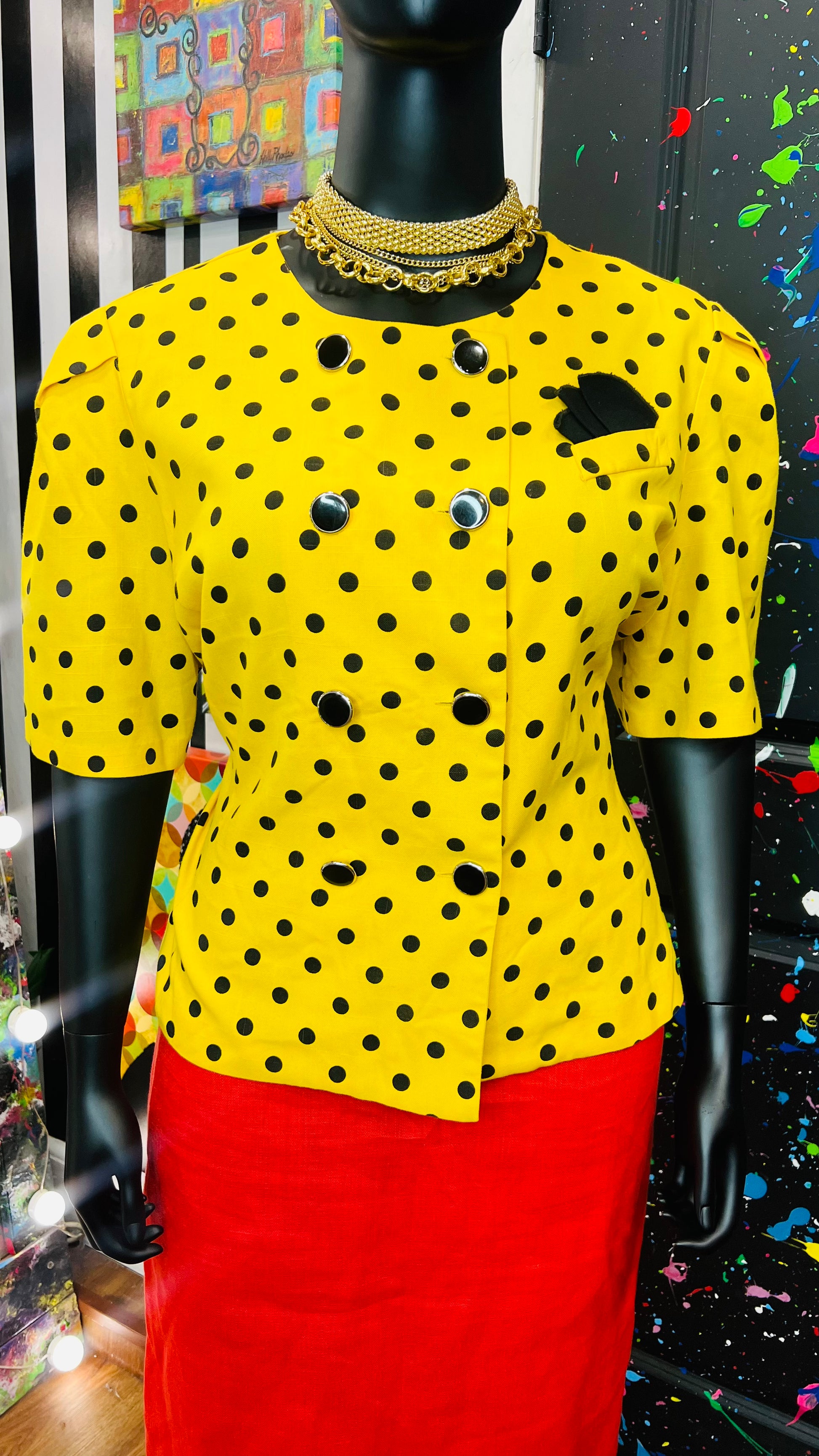 Vintage Polka Dot Short Sleeve Double Breasted Blazer (20)