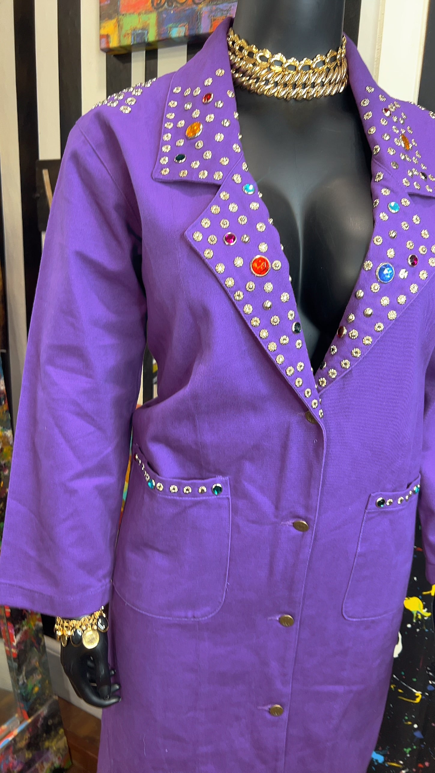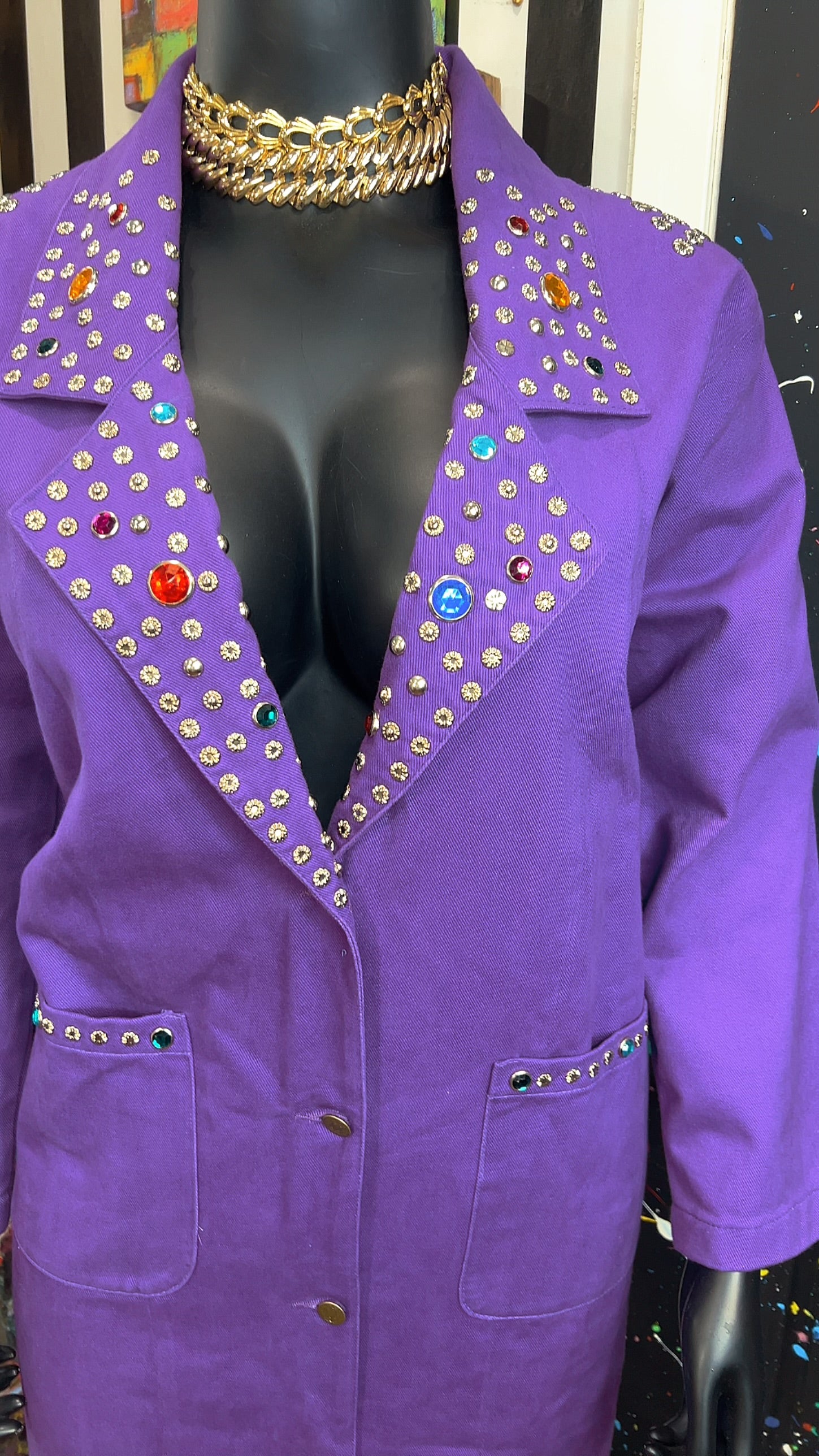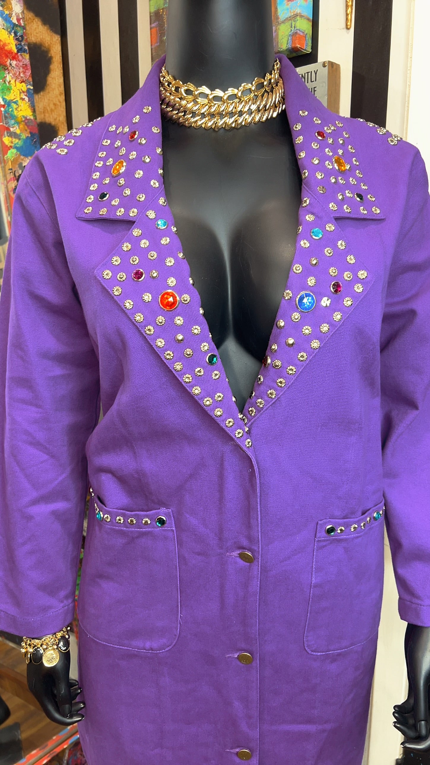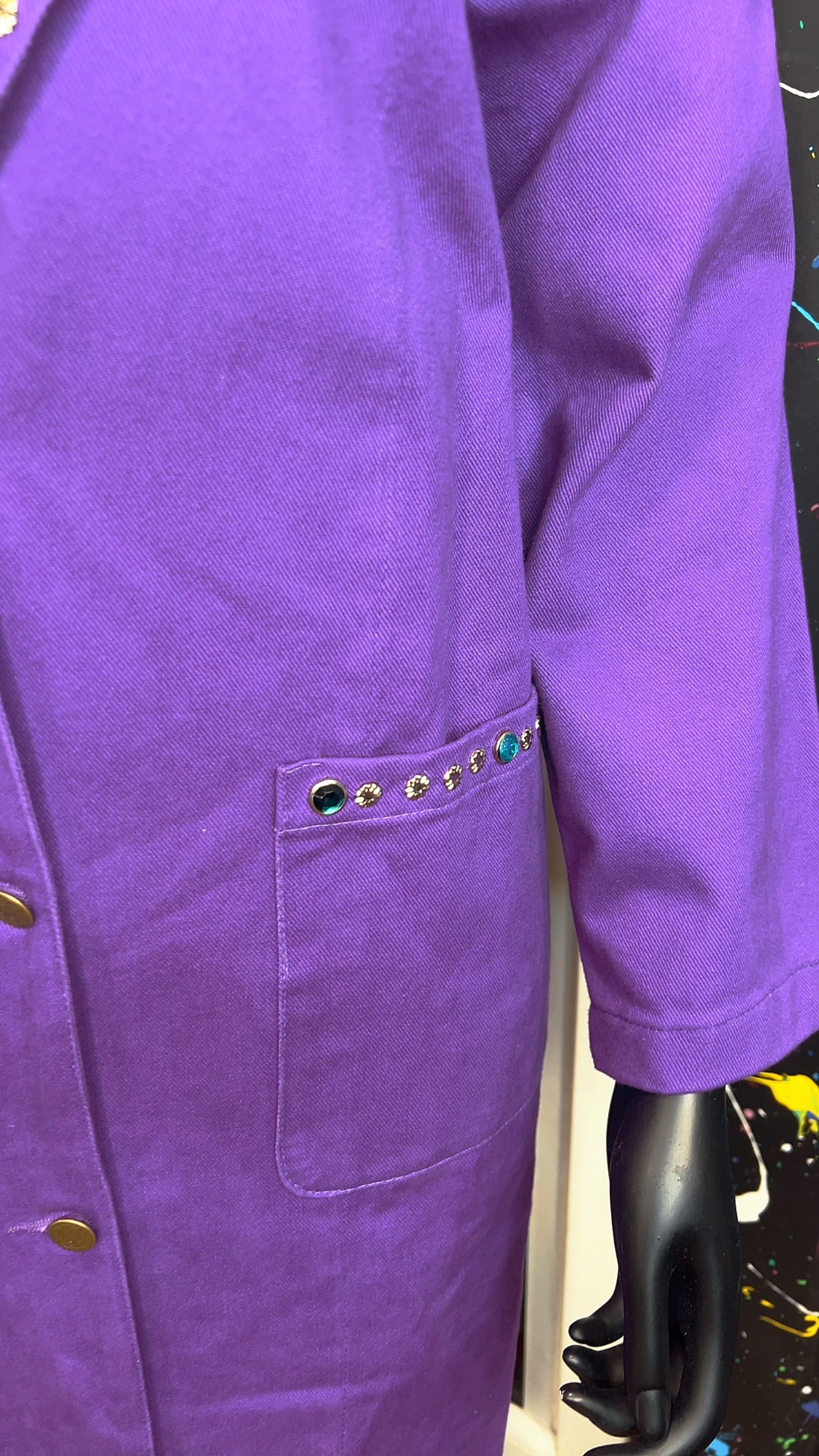 Vintage Purple Denim Jeweled Trench Coat (16)