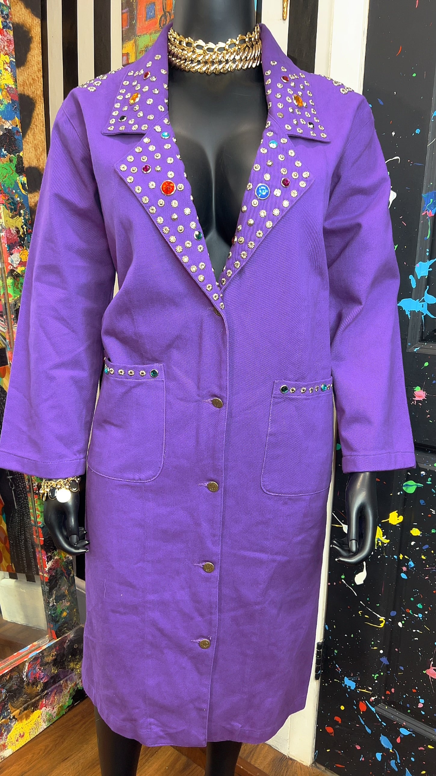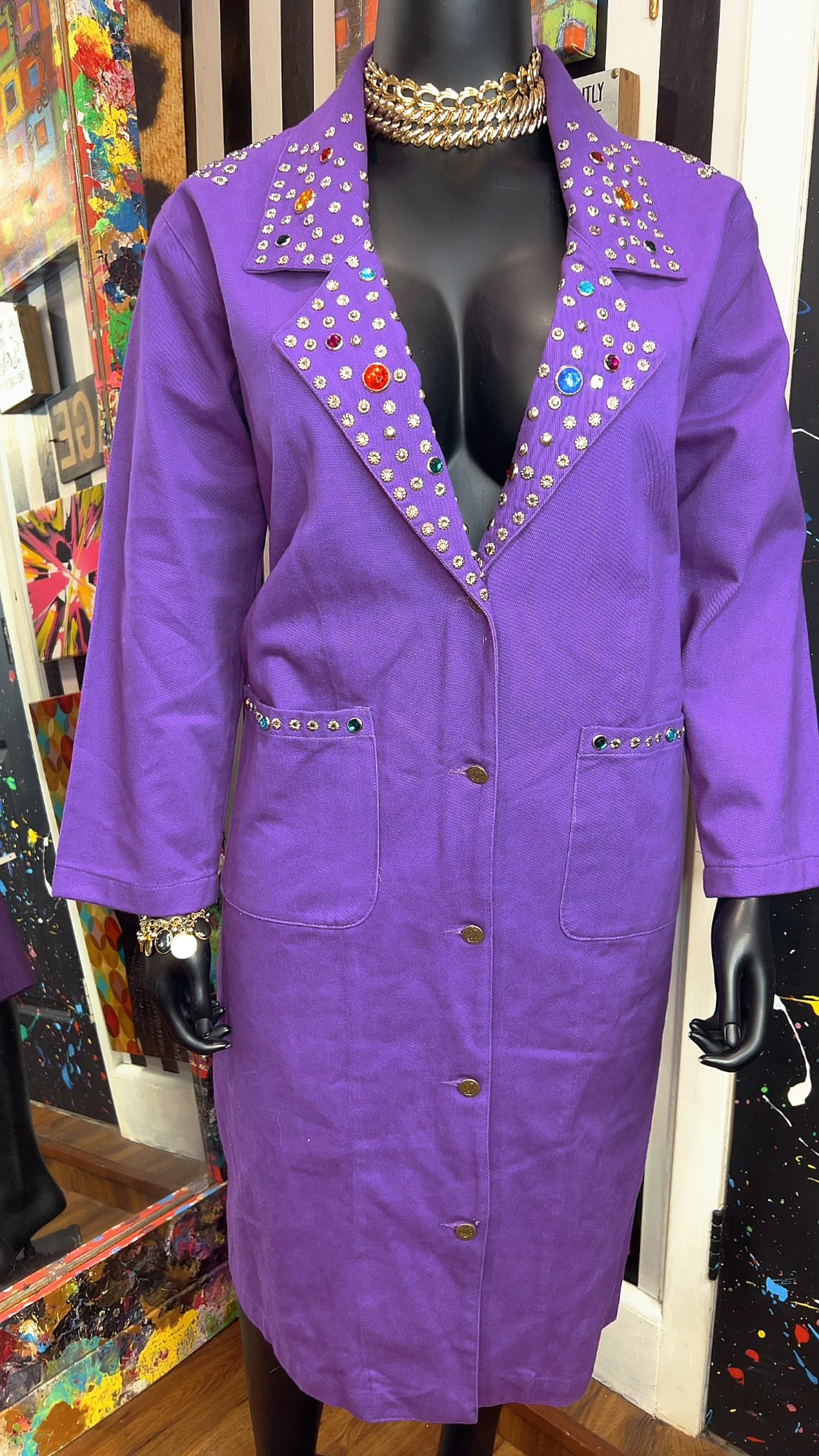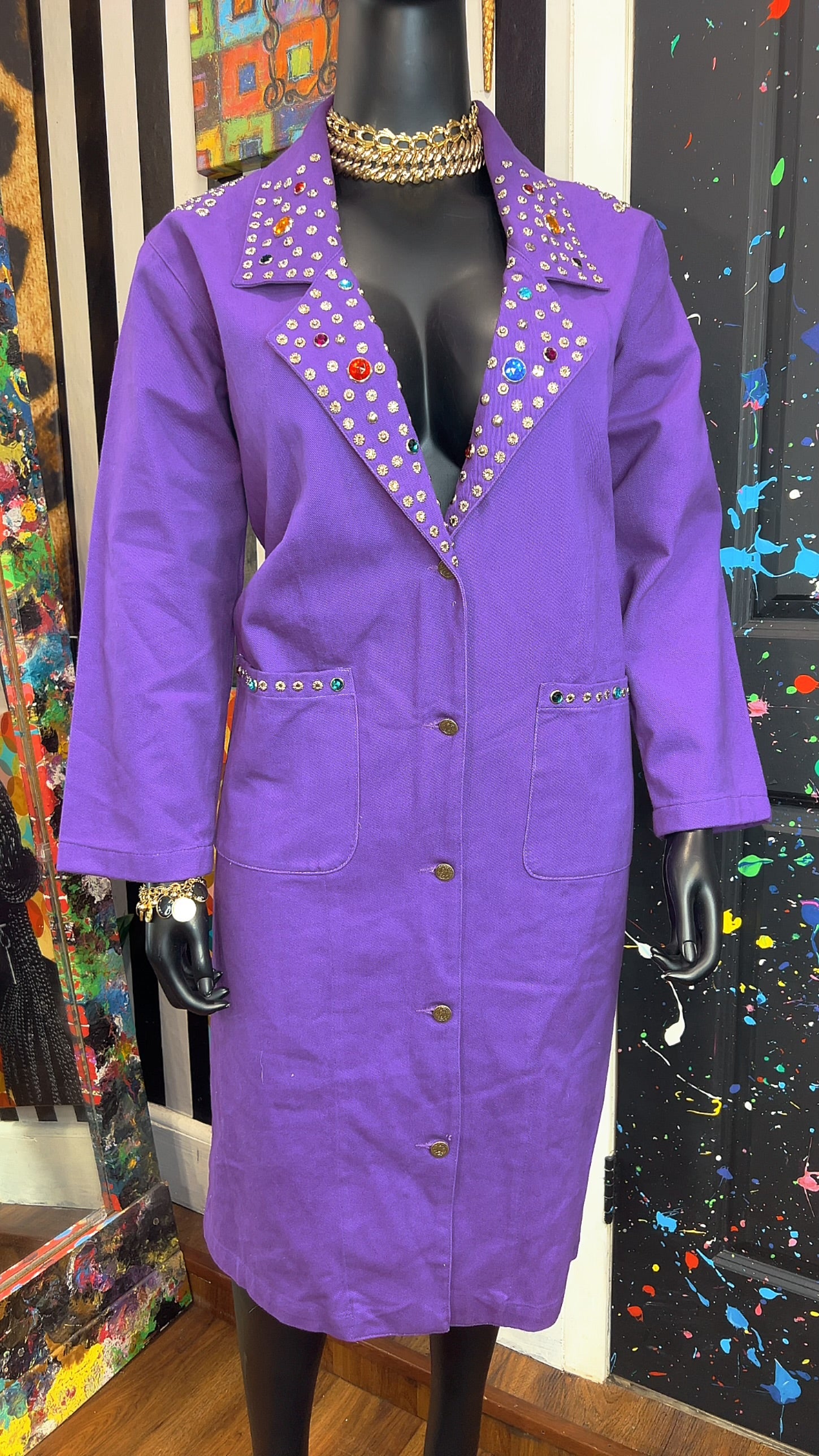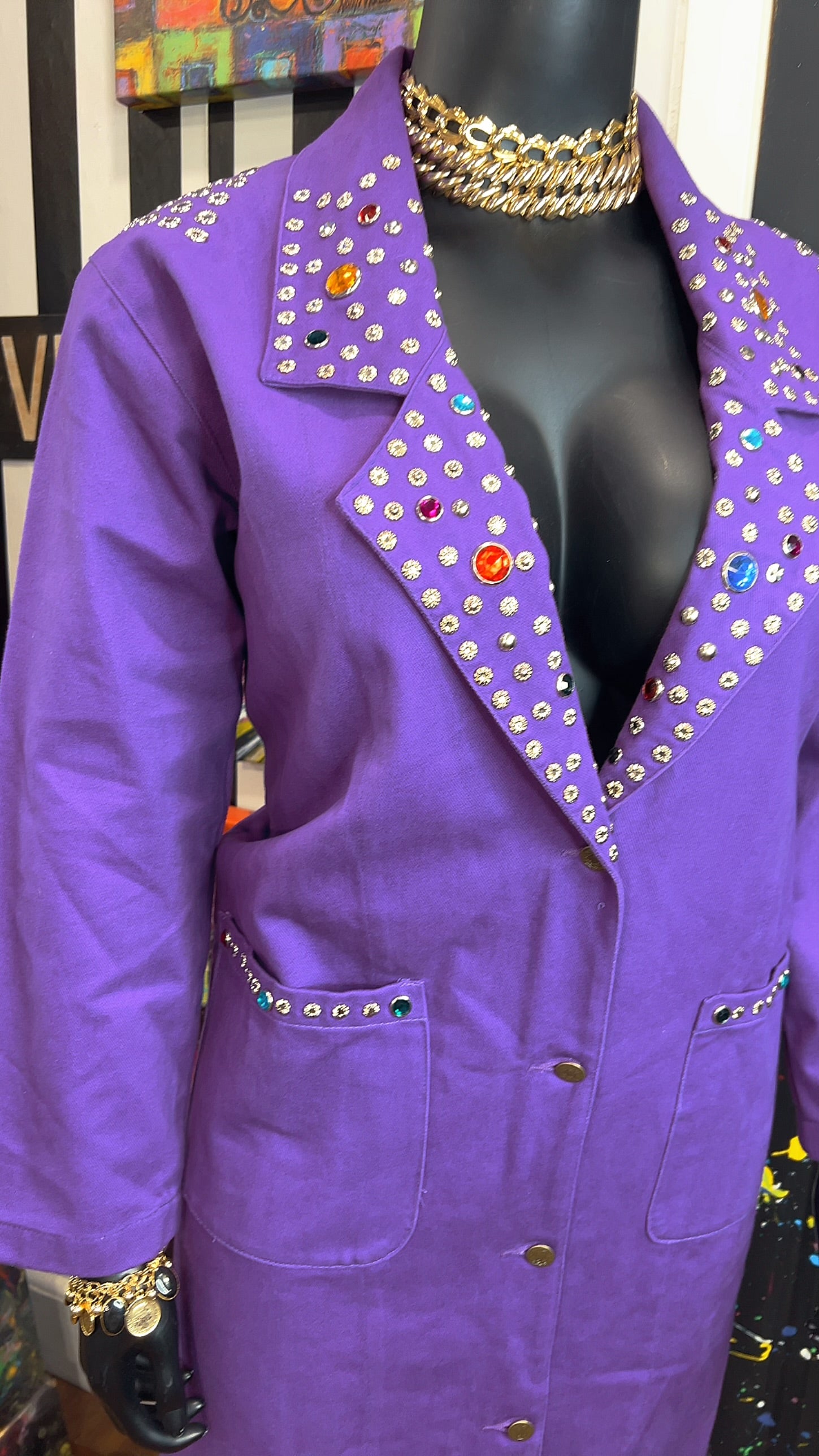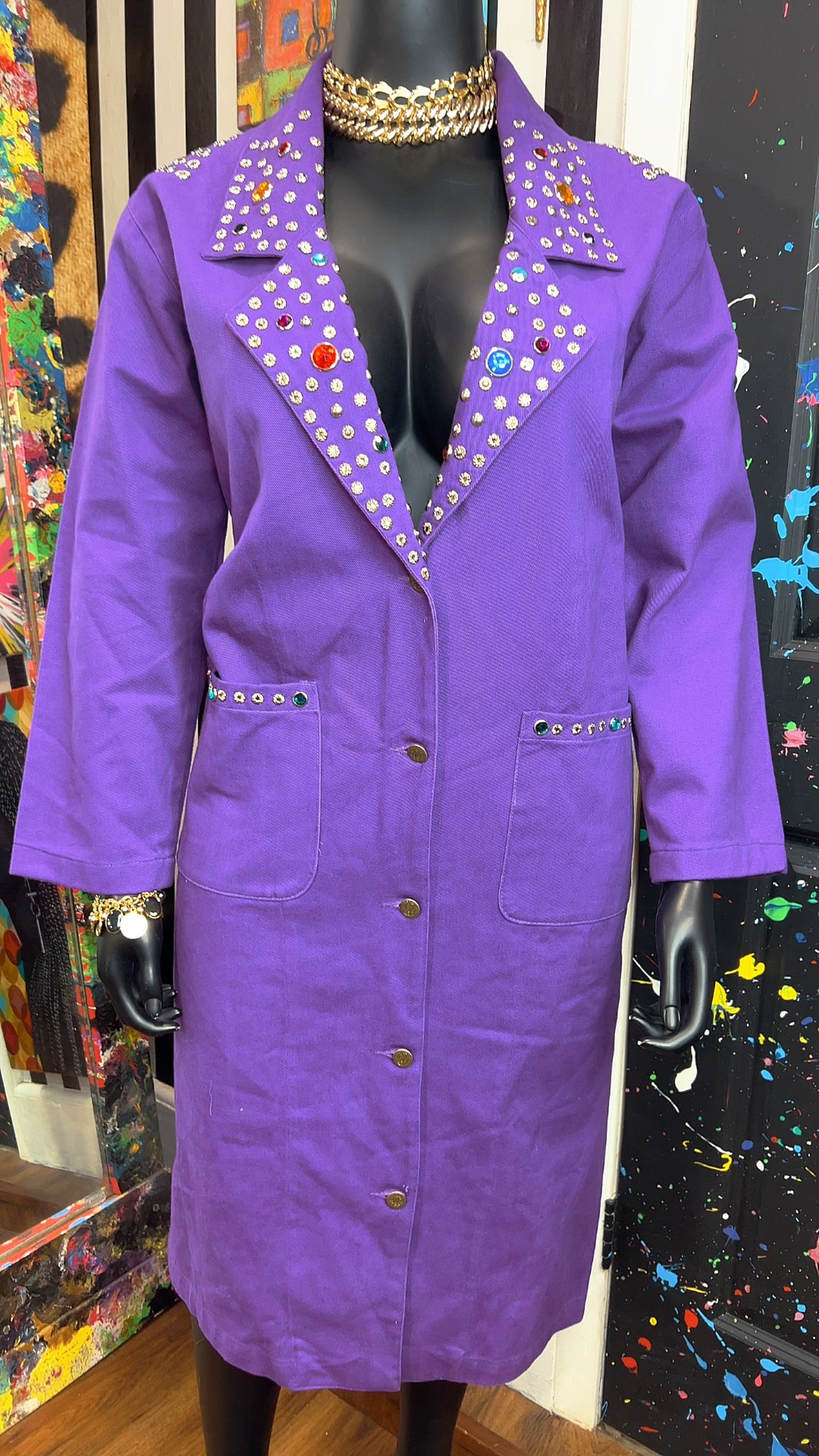 Vintage Purple Denim Jeweled Trench Coat (16)