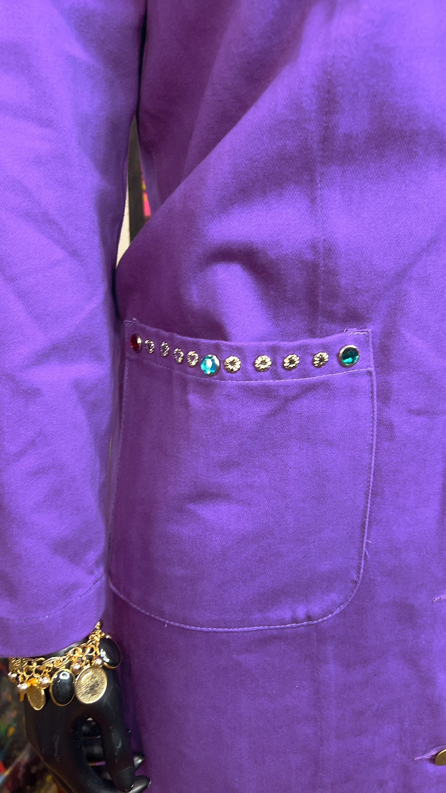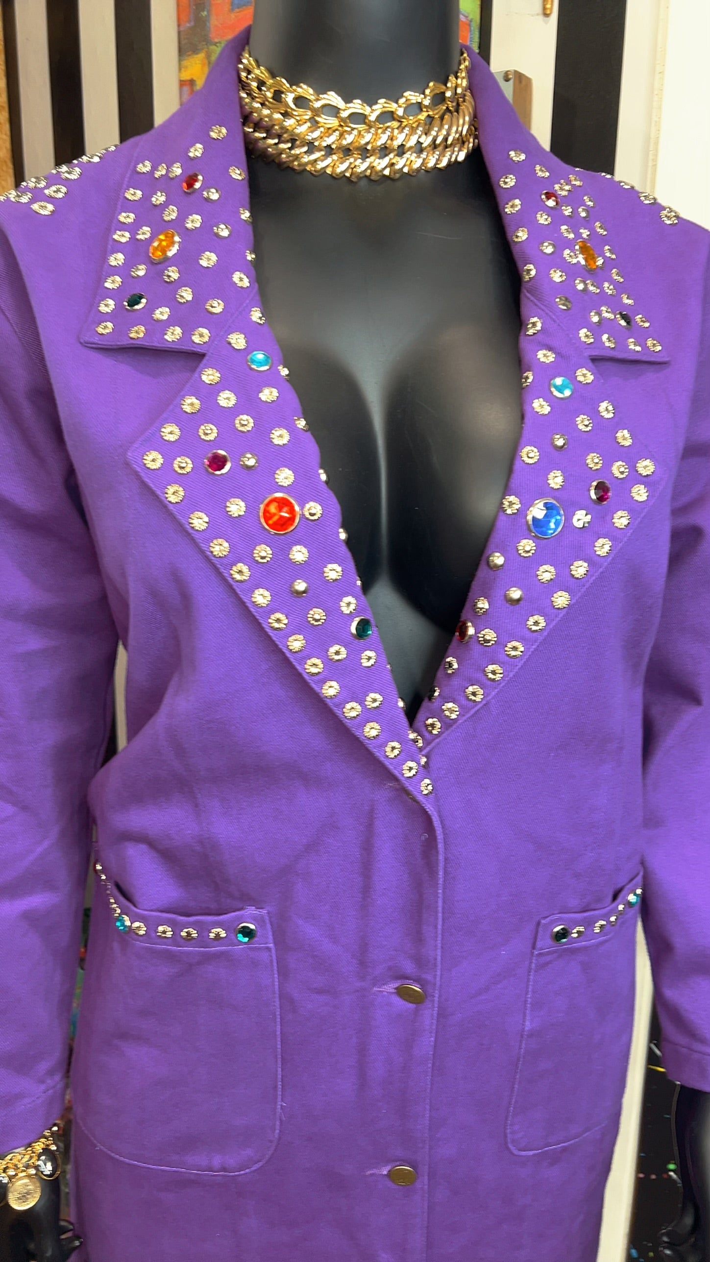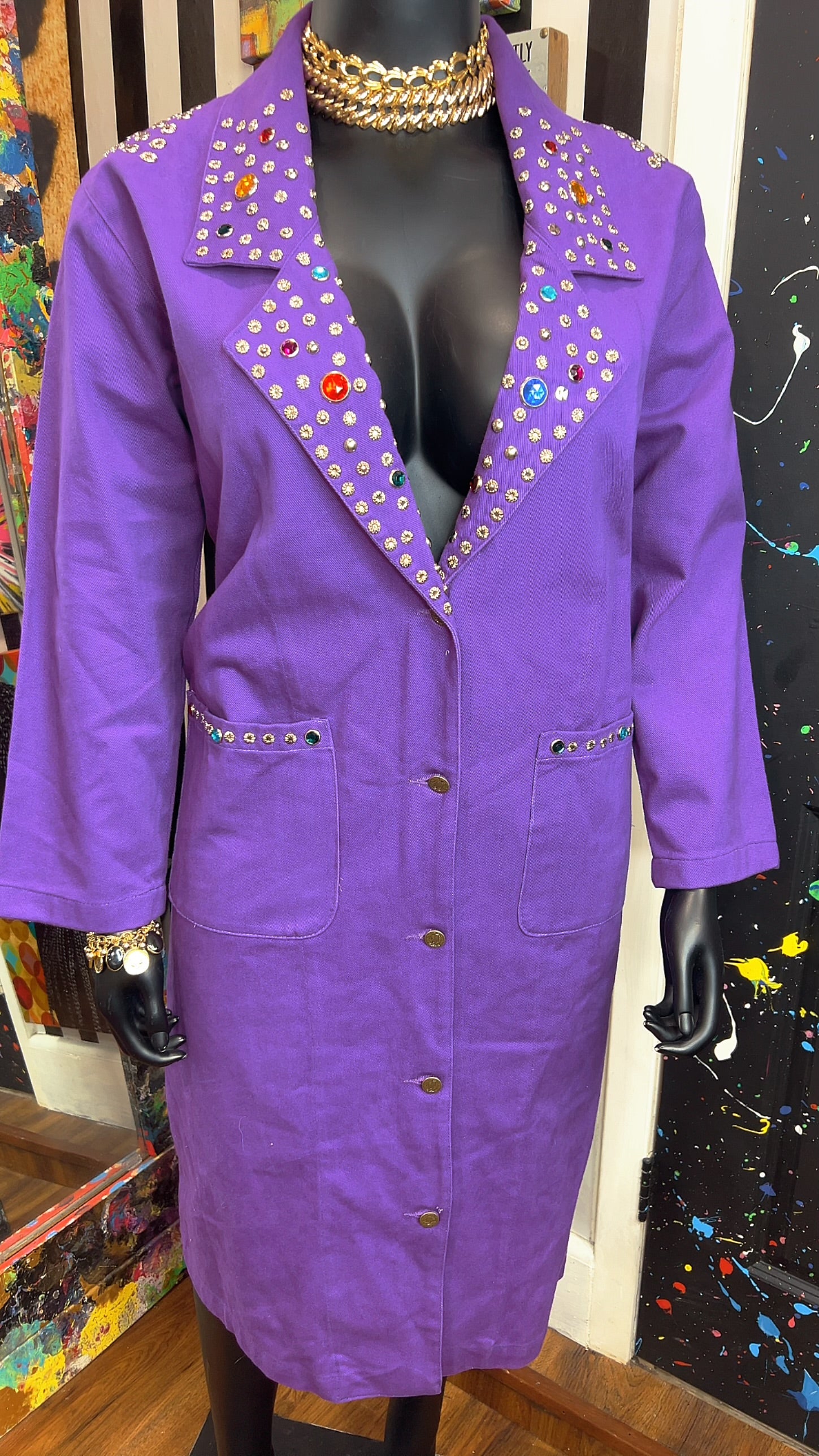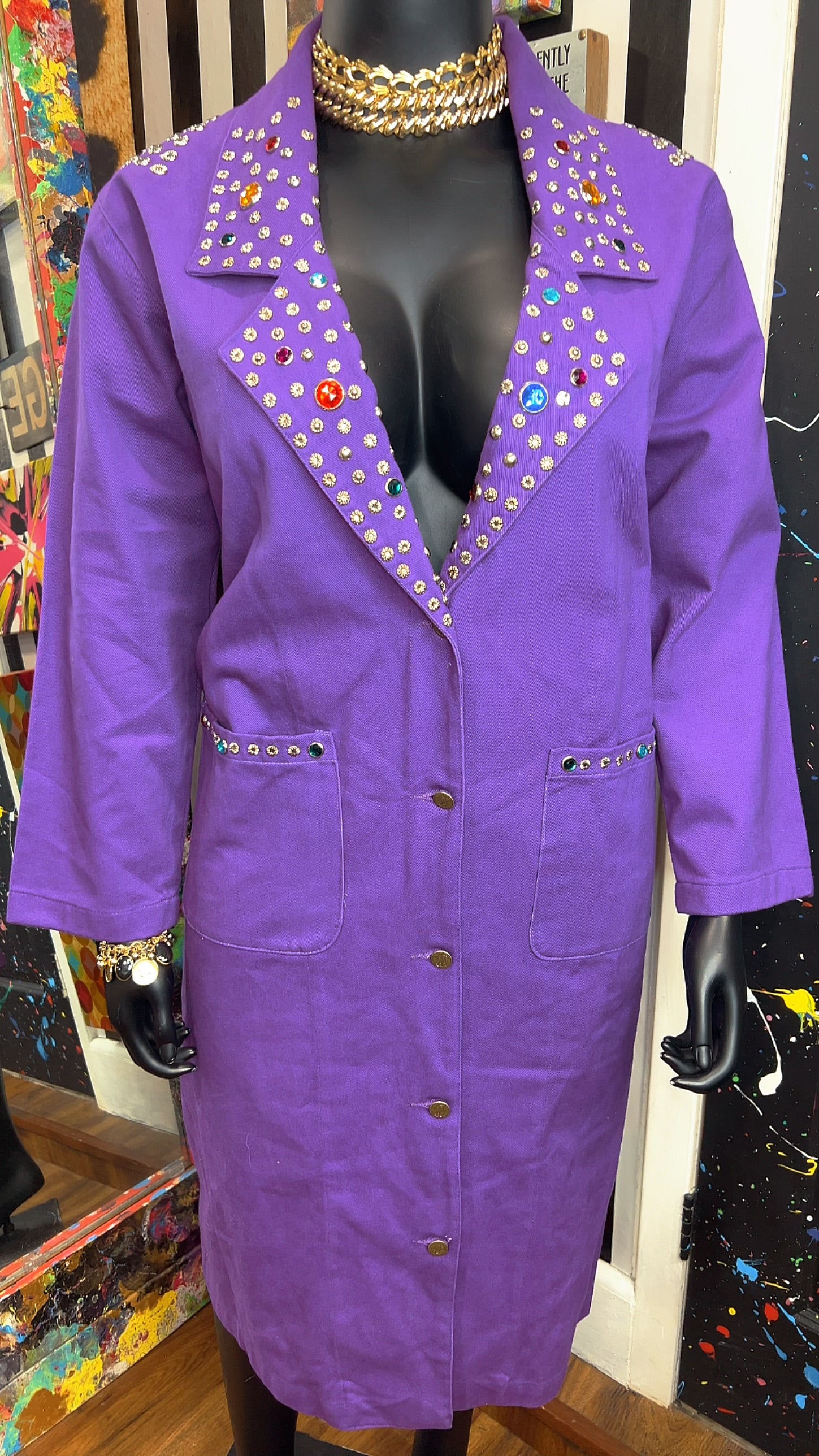Vintage Purple Denim Jeweled Trench Coat (16)
