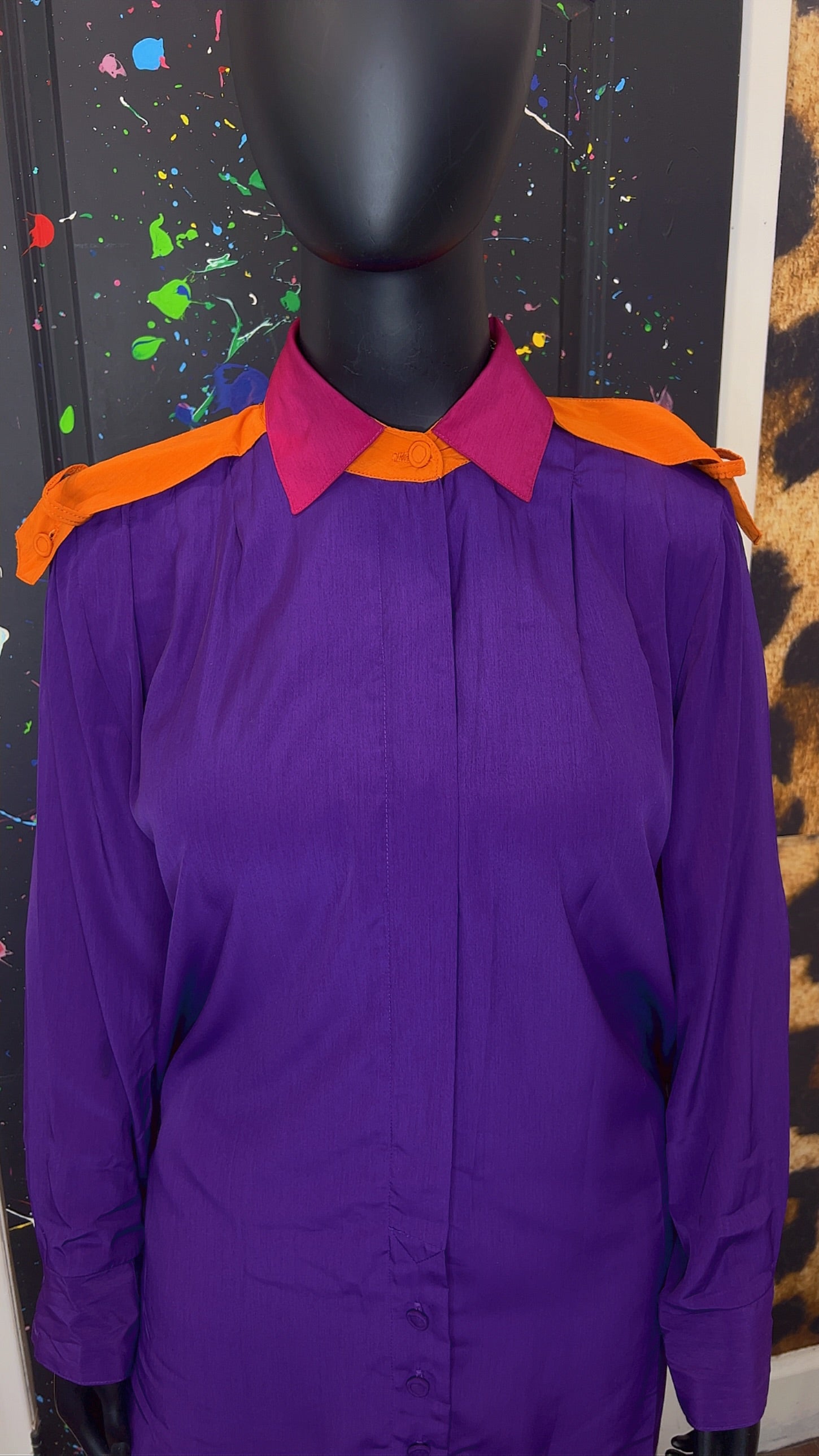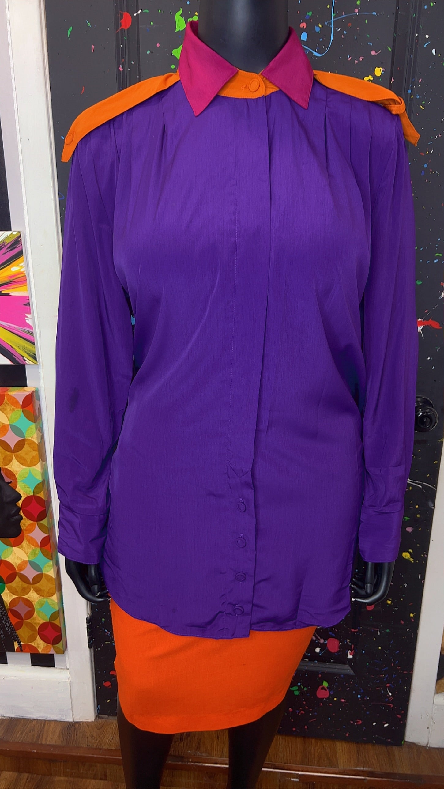 Vintage Purple Orange & Pink Pleated Blouse (22)