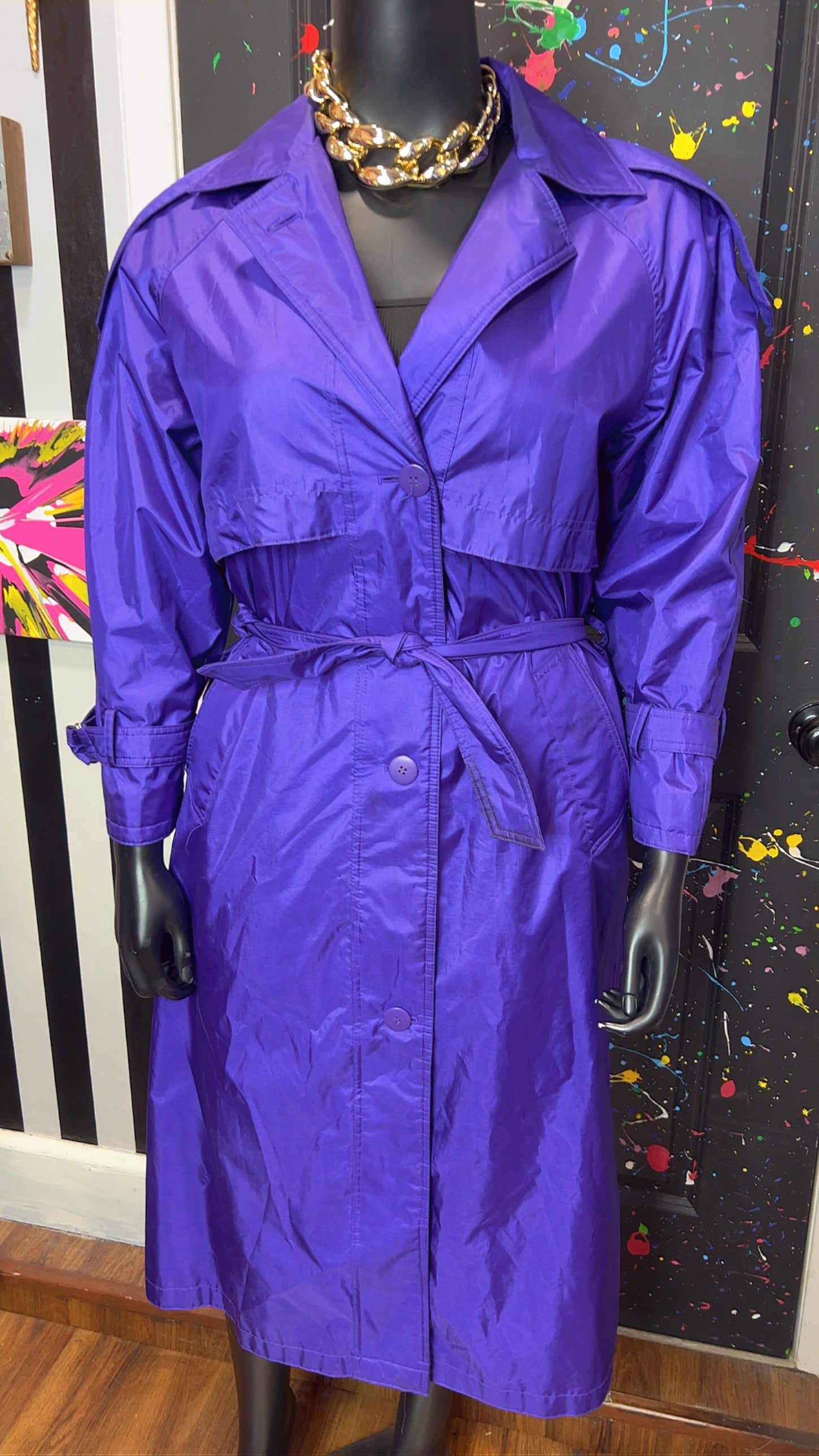 Vintage Purple Trench Rain Coat w/ Belt (14) *KC