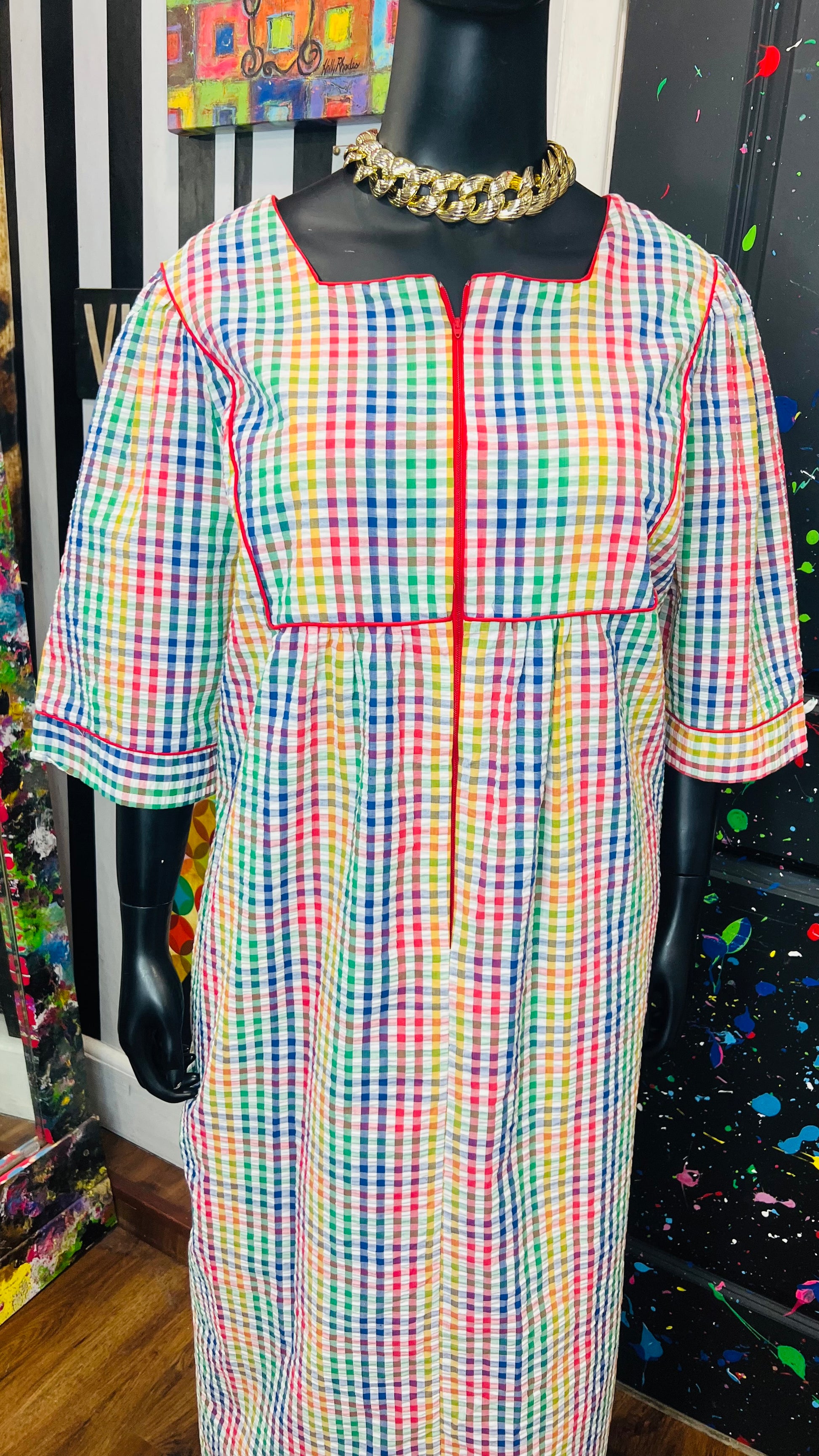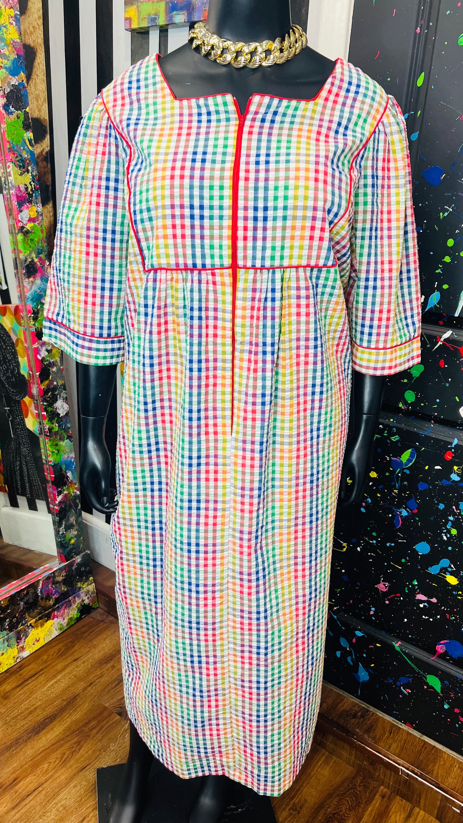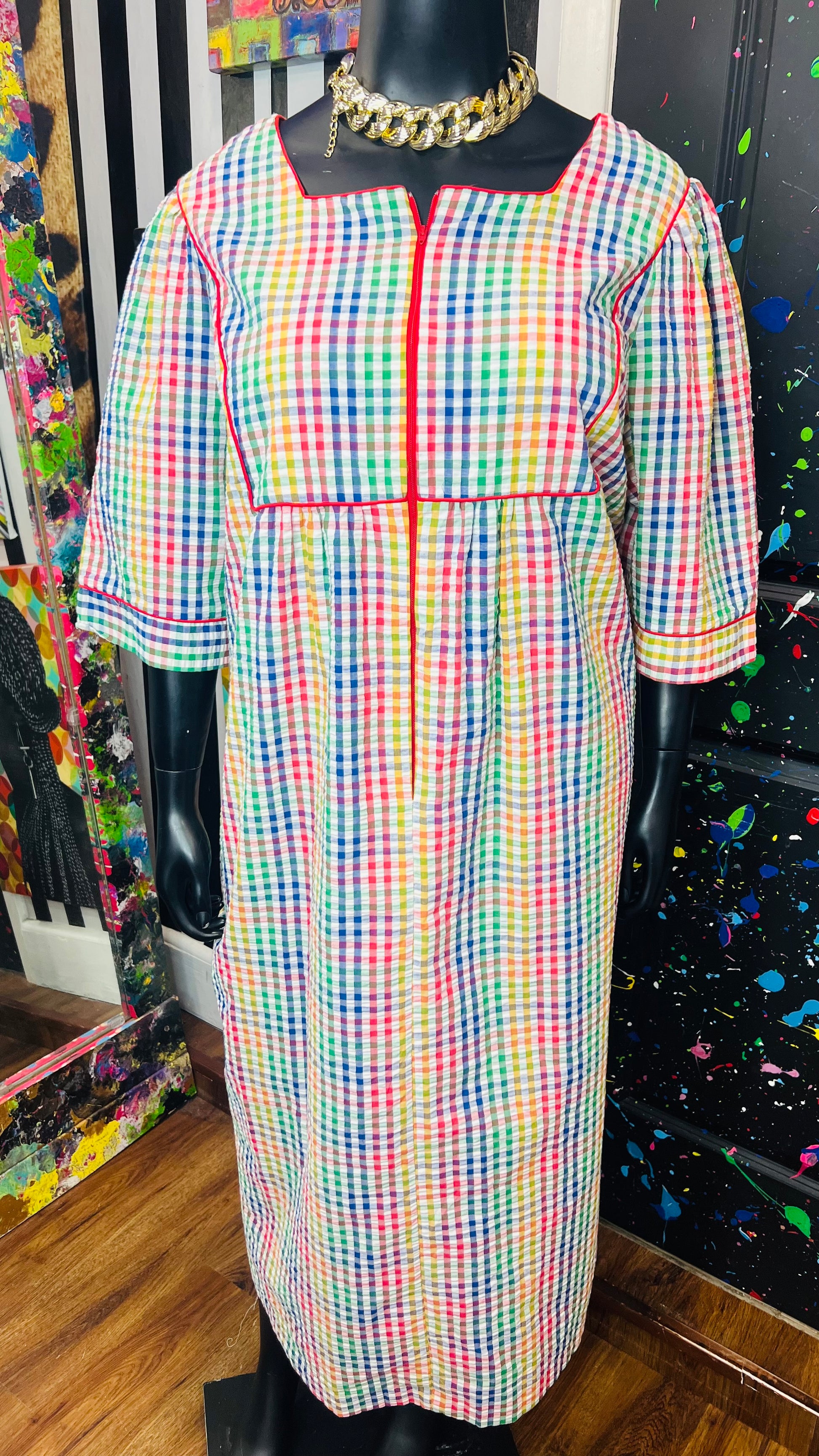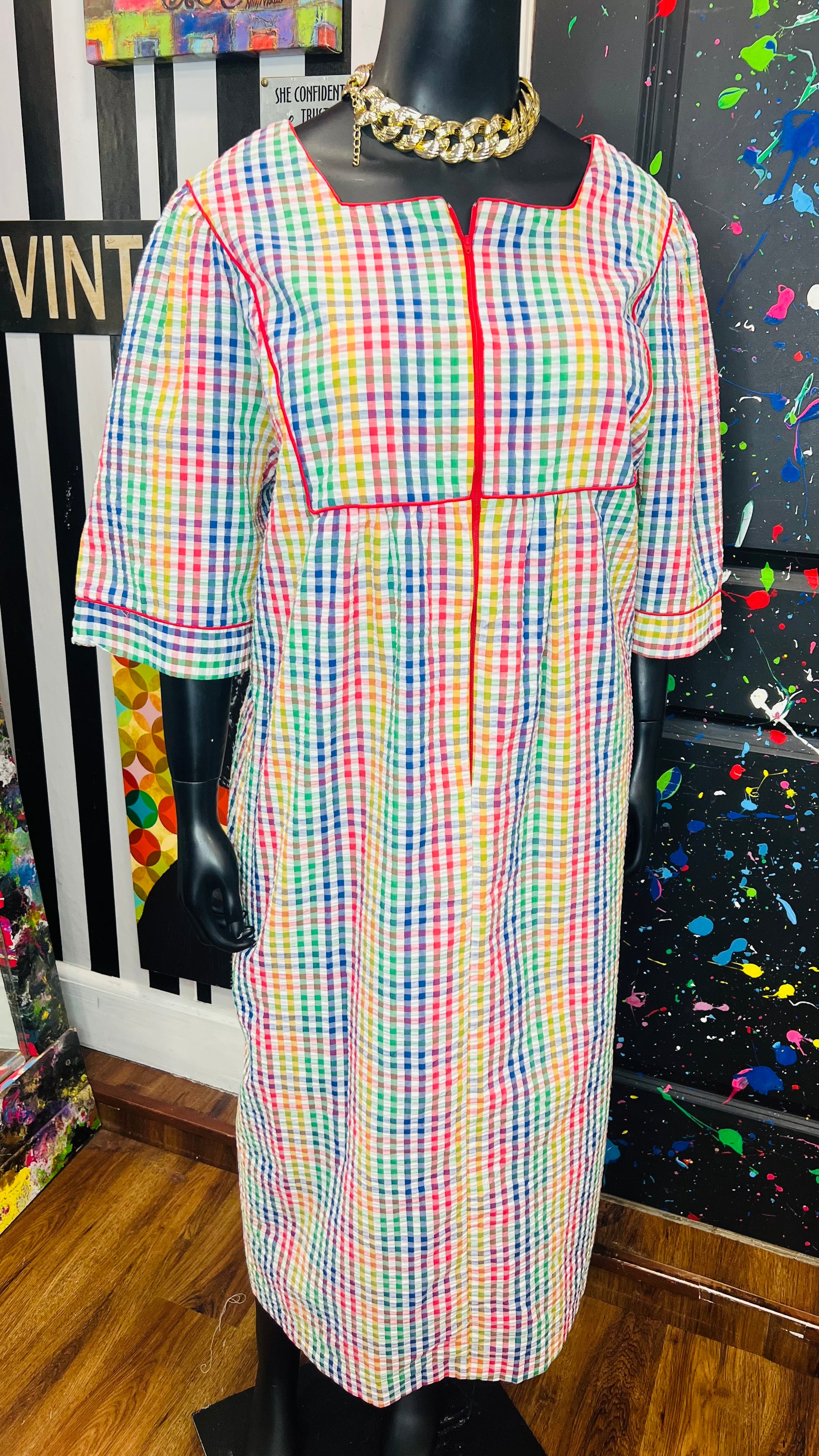 Vintage Rainbow Checkered Dress (22)