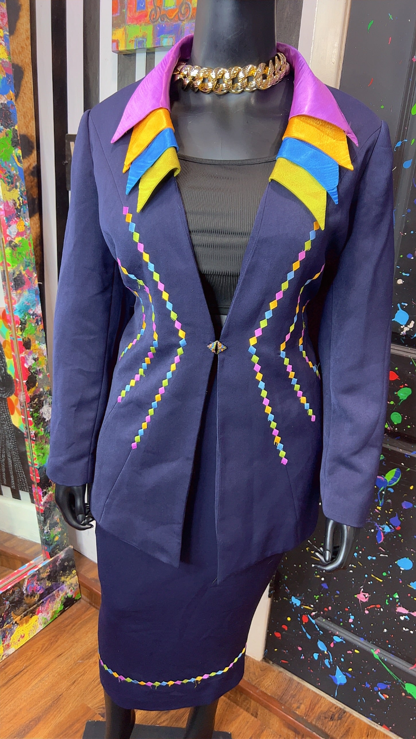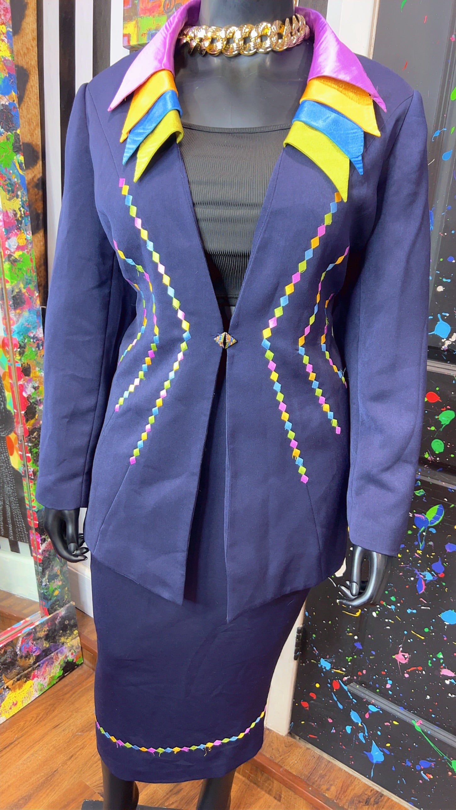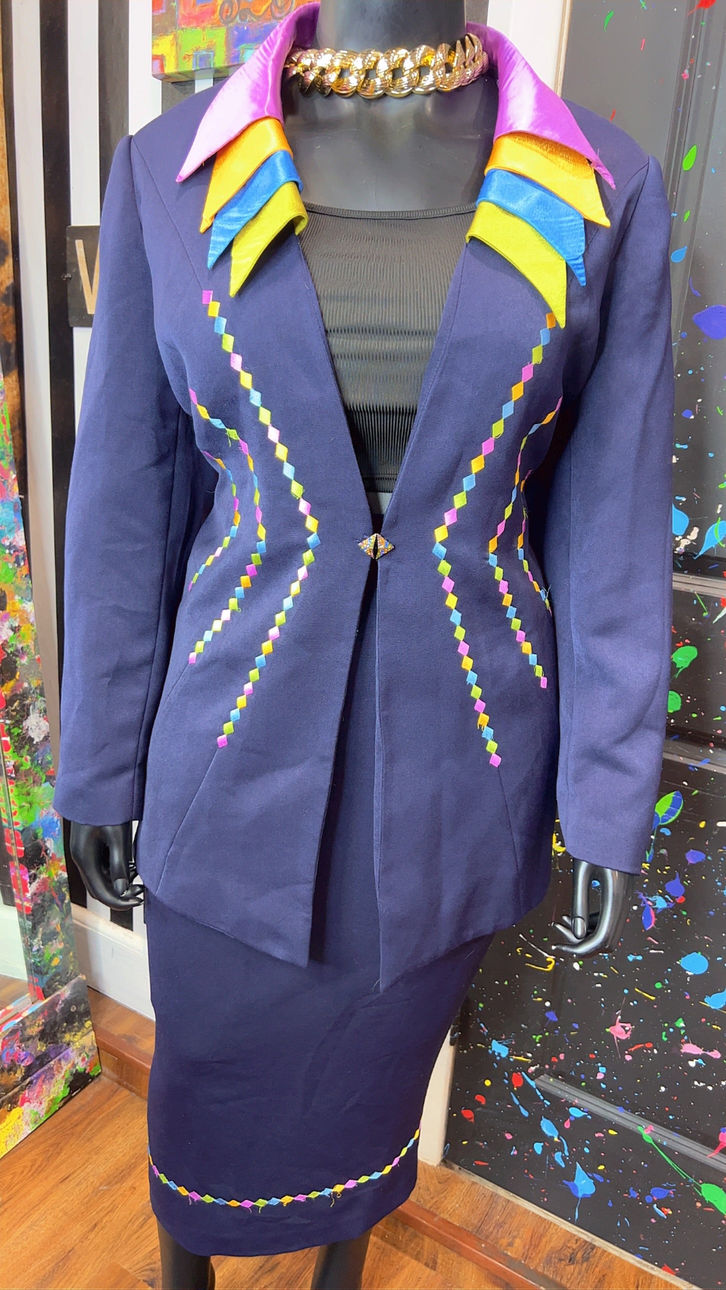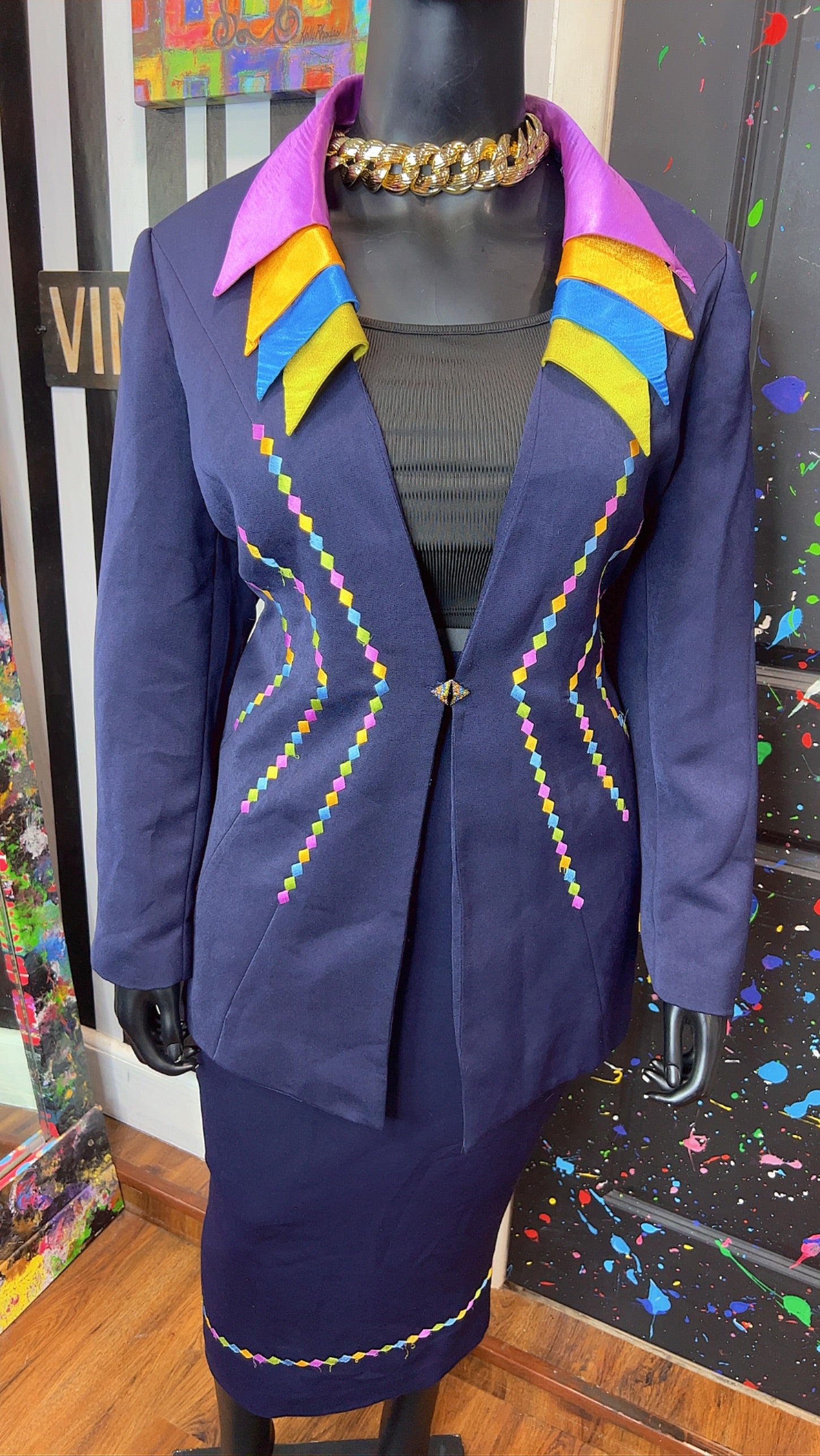 Vintage Rainbow Collar Skirt Suit (20W)