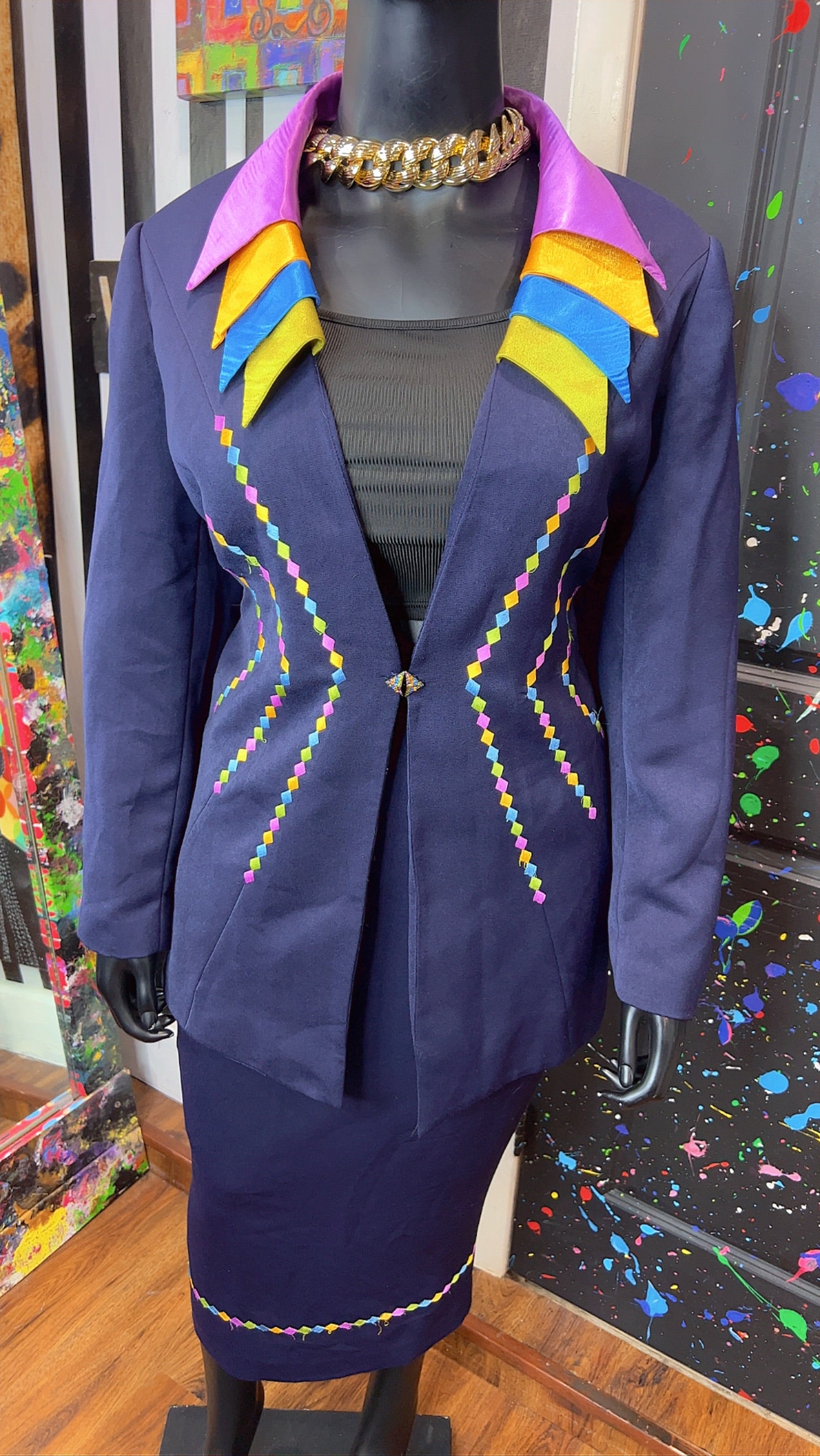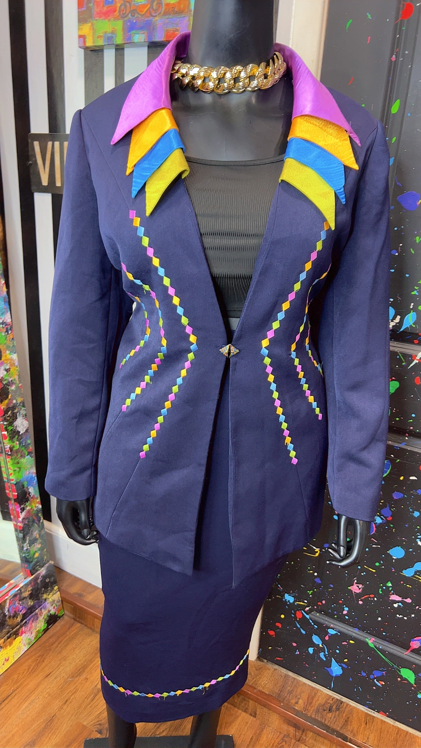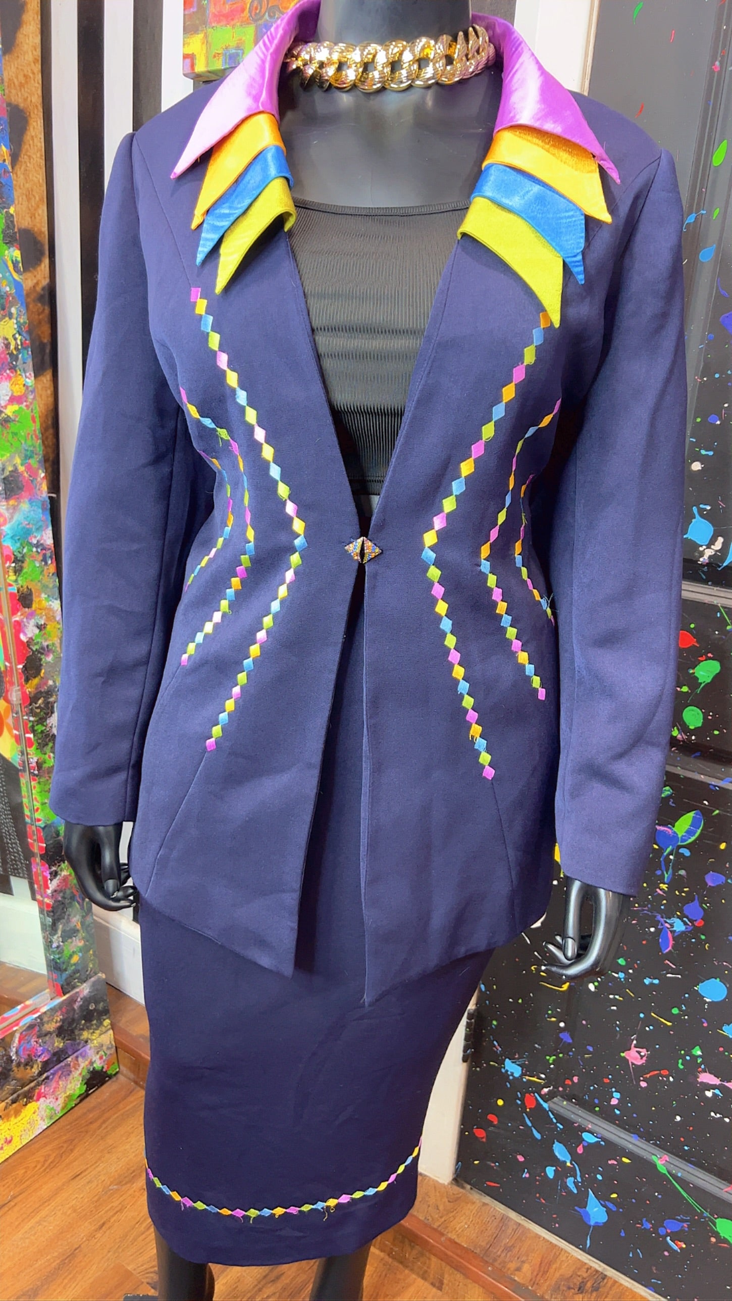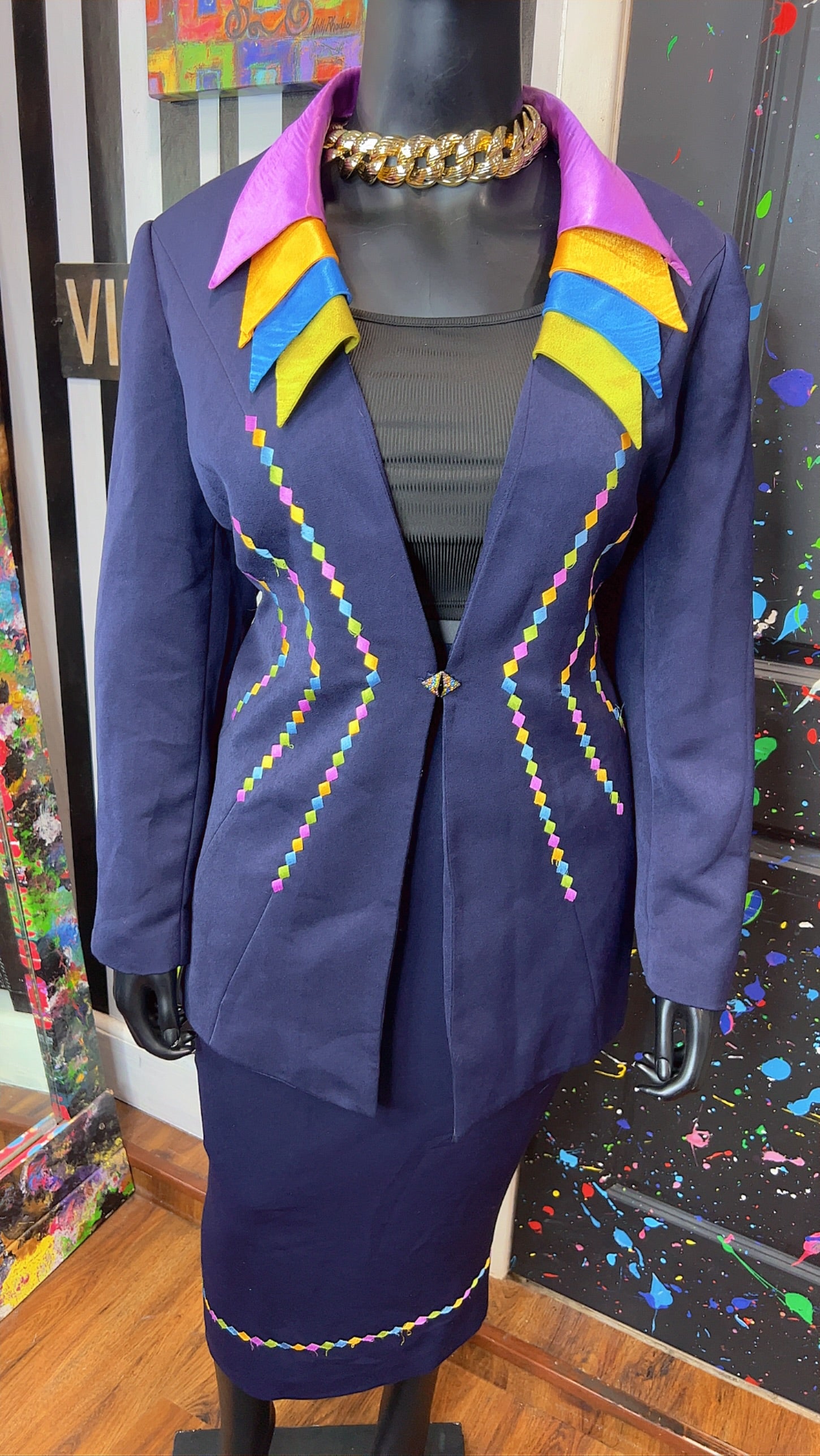 Vintage Rainbow Collar Skirt Suit (20W)
