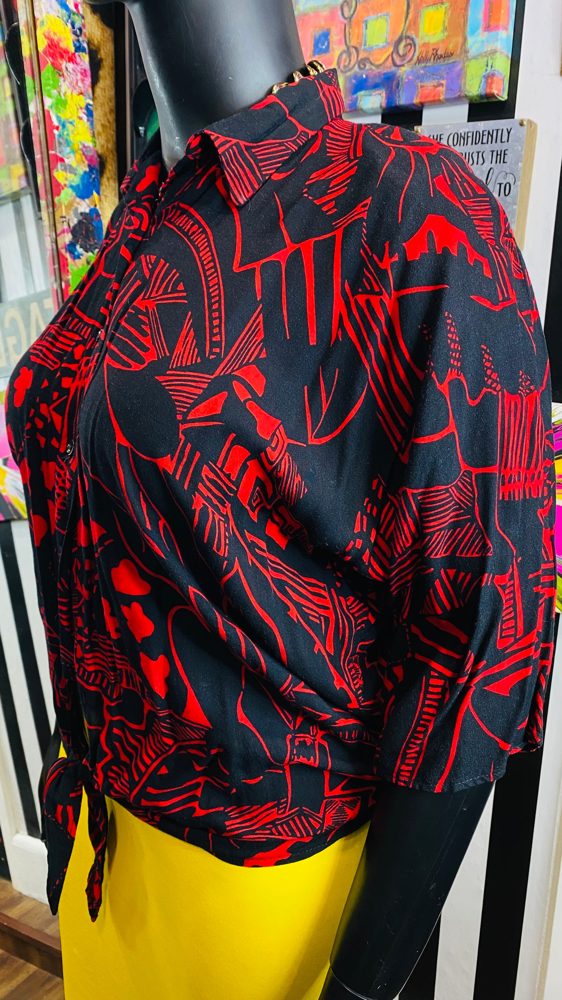 Vintage Rayon Abstract Tie Front Blouse (24)