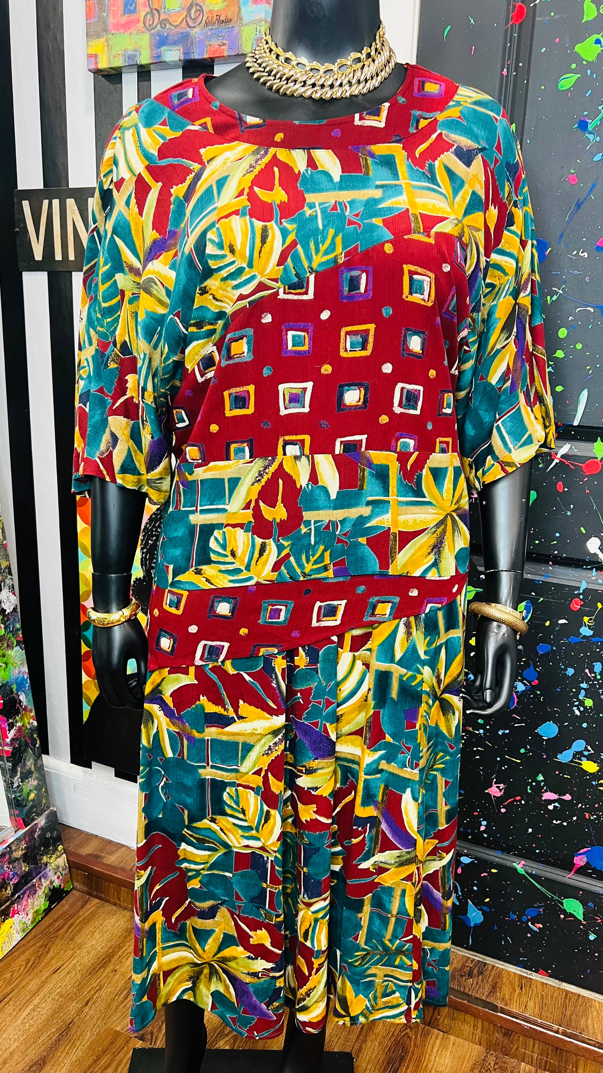 Vintage Rayon Abstract Skirt Set (18)