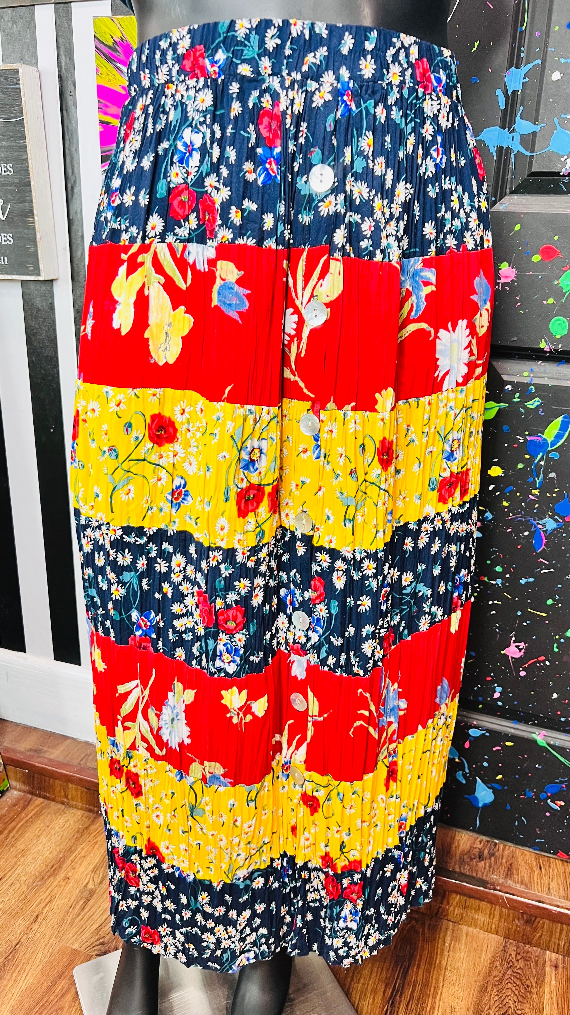 Vintage Rayon Patchwork Button Down Front Skirt (22/24)