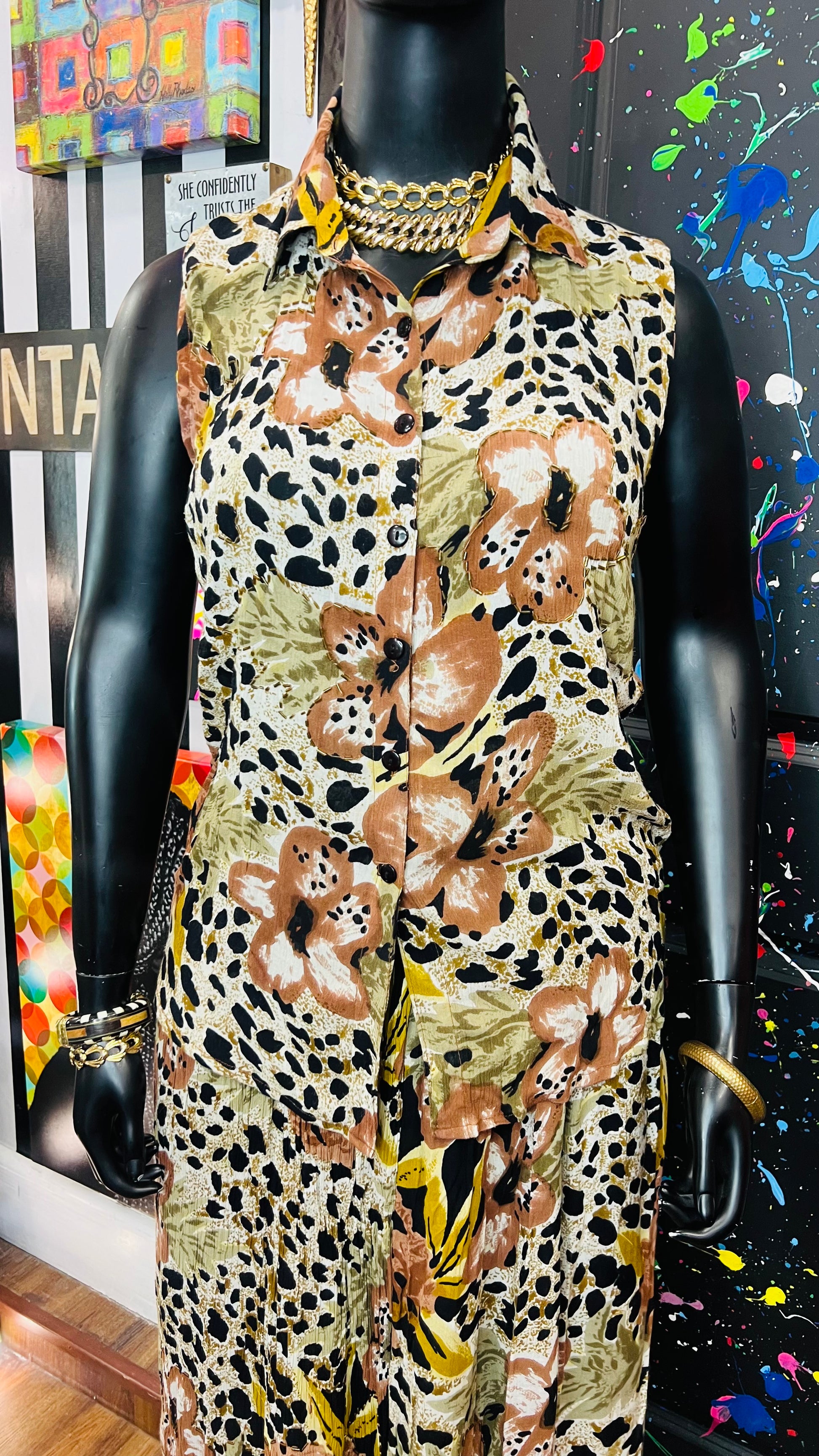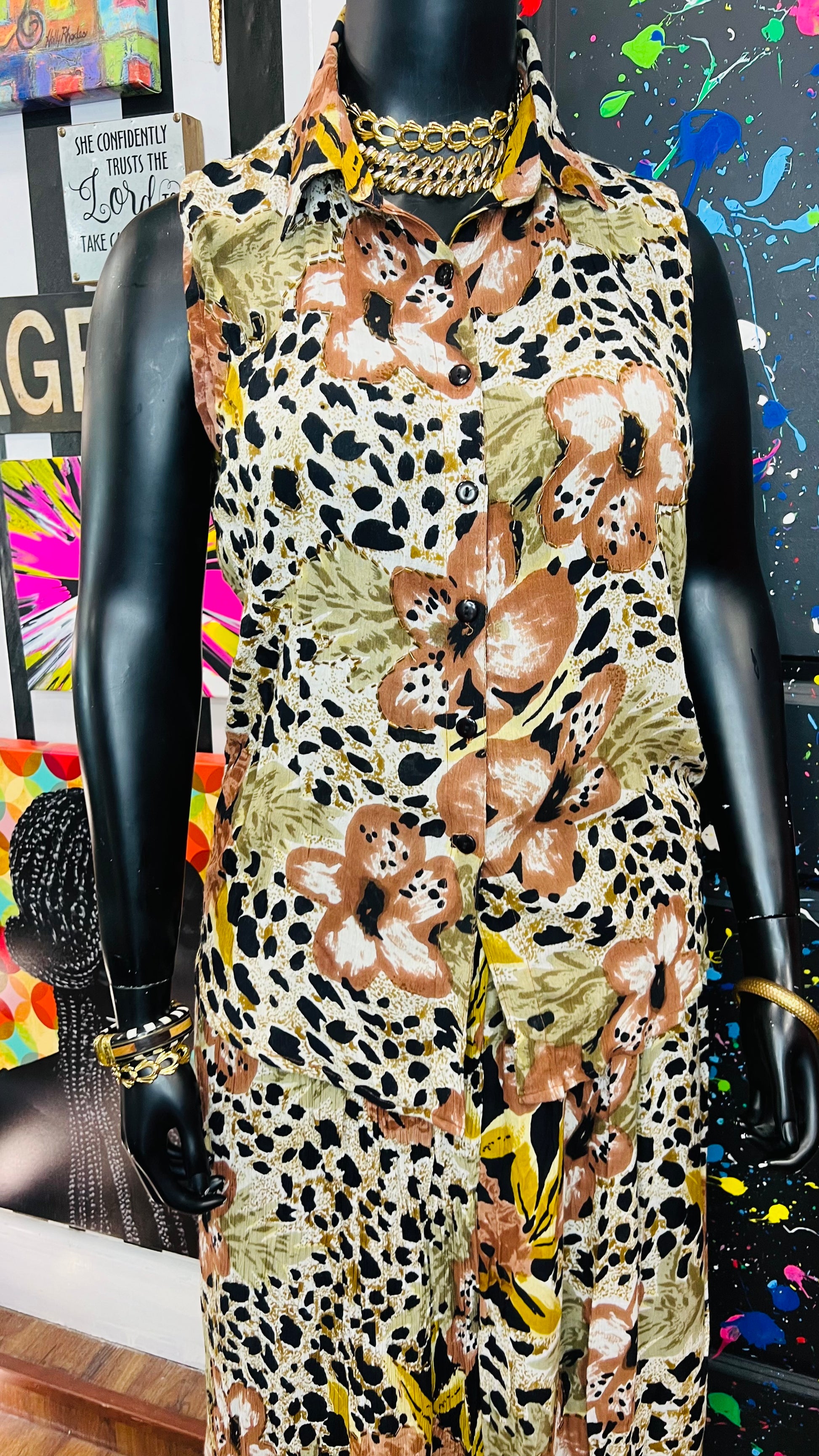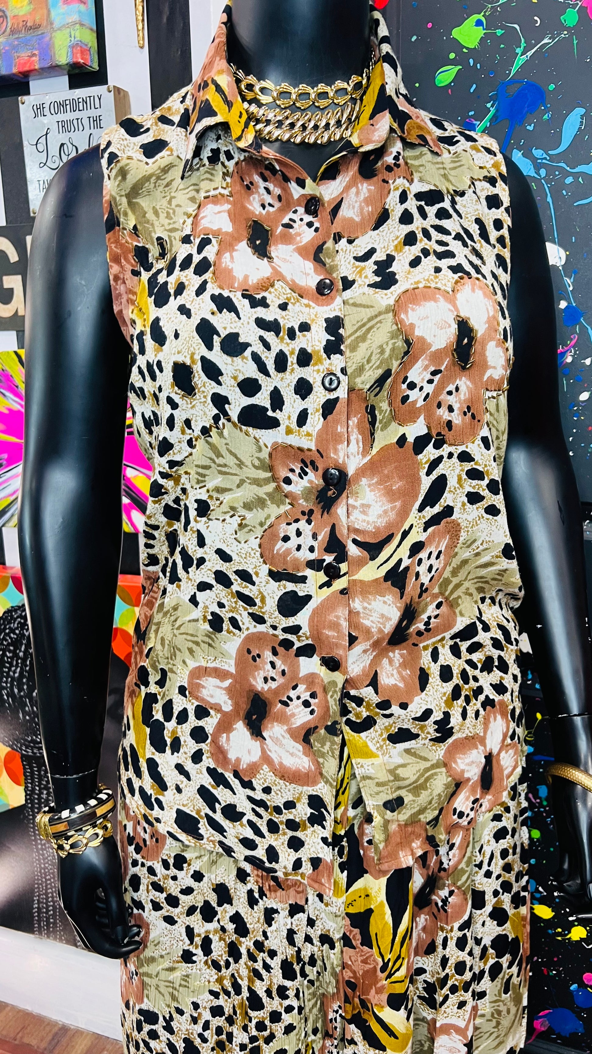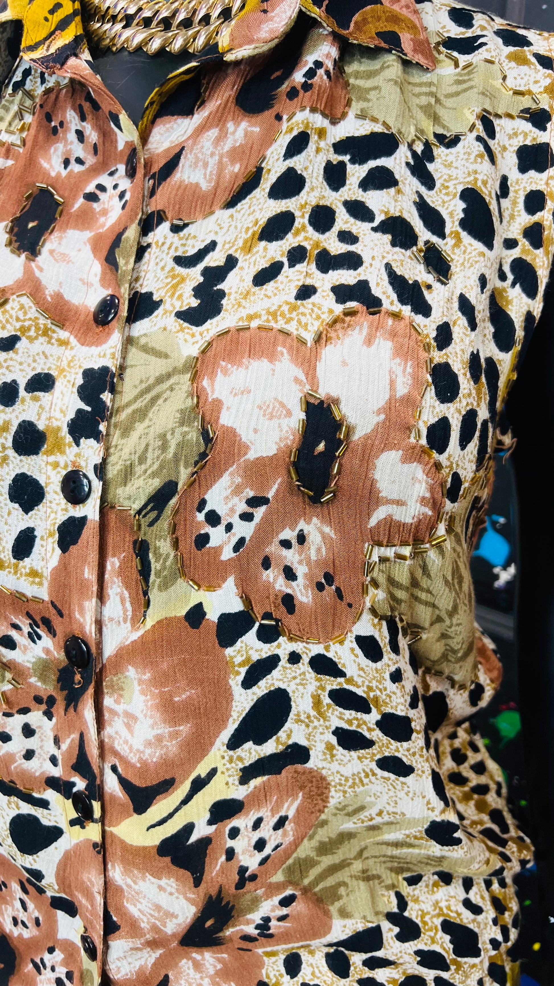 Vintage Rayon & Sequin Mix Print Skirt Set (18)