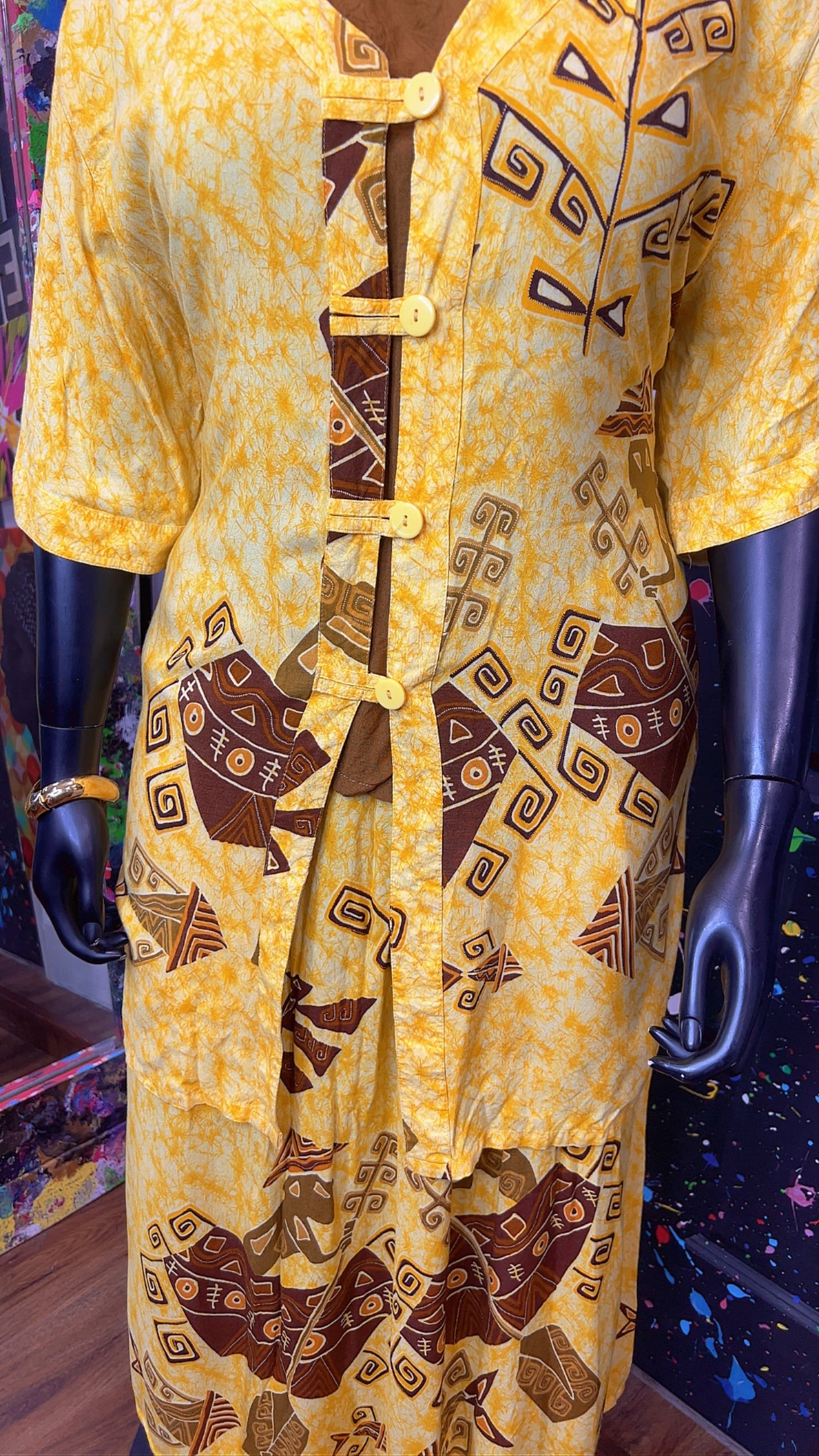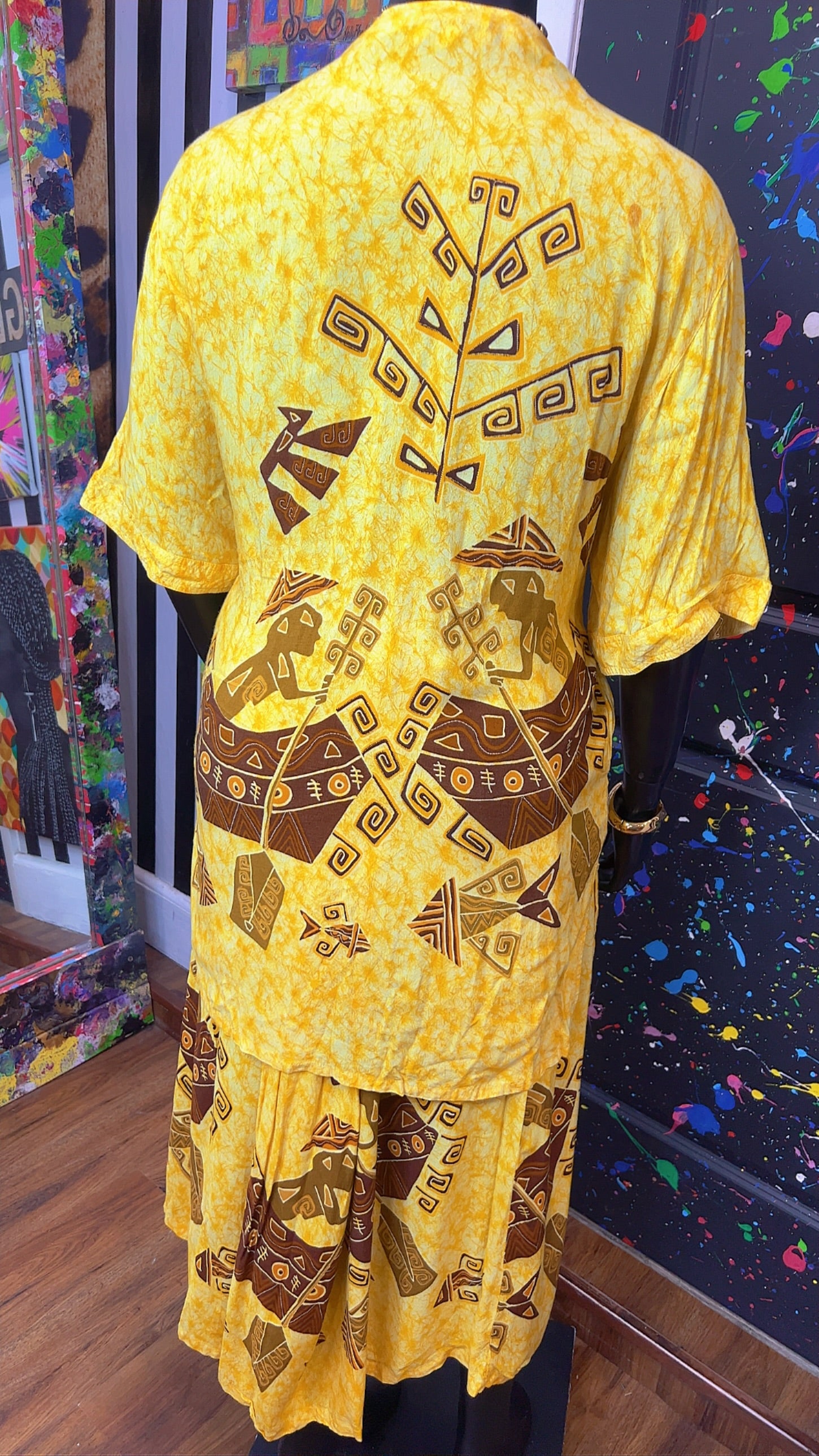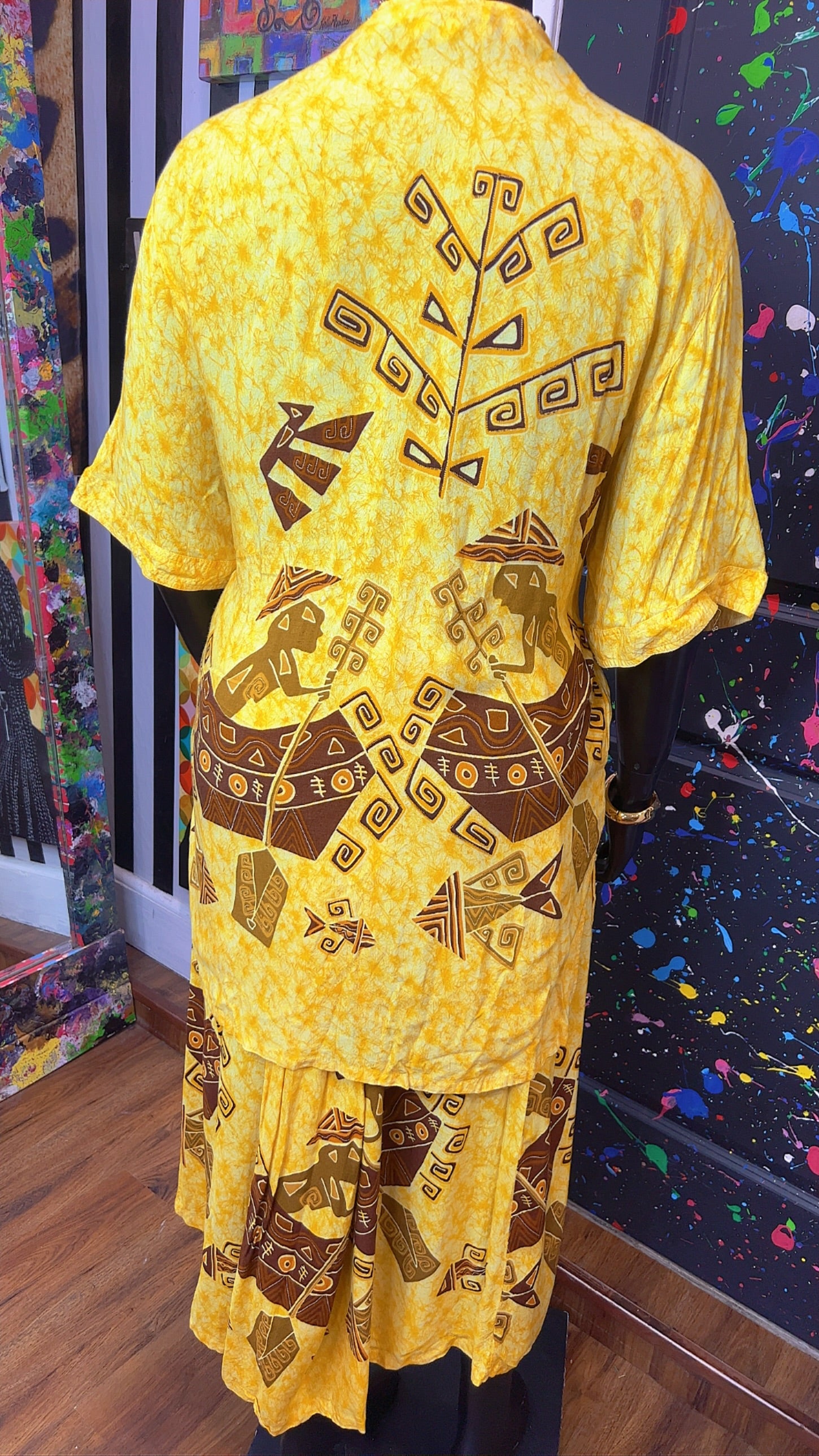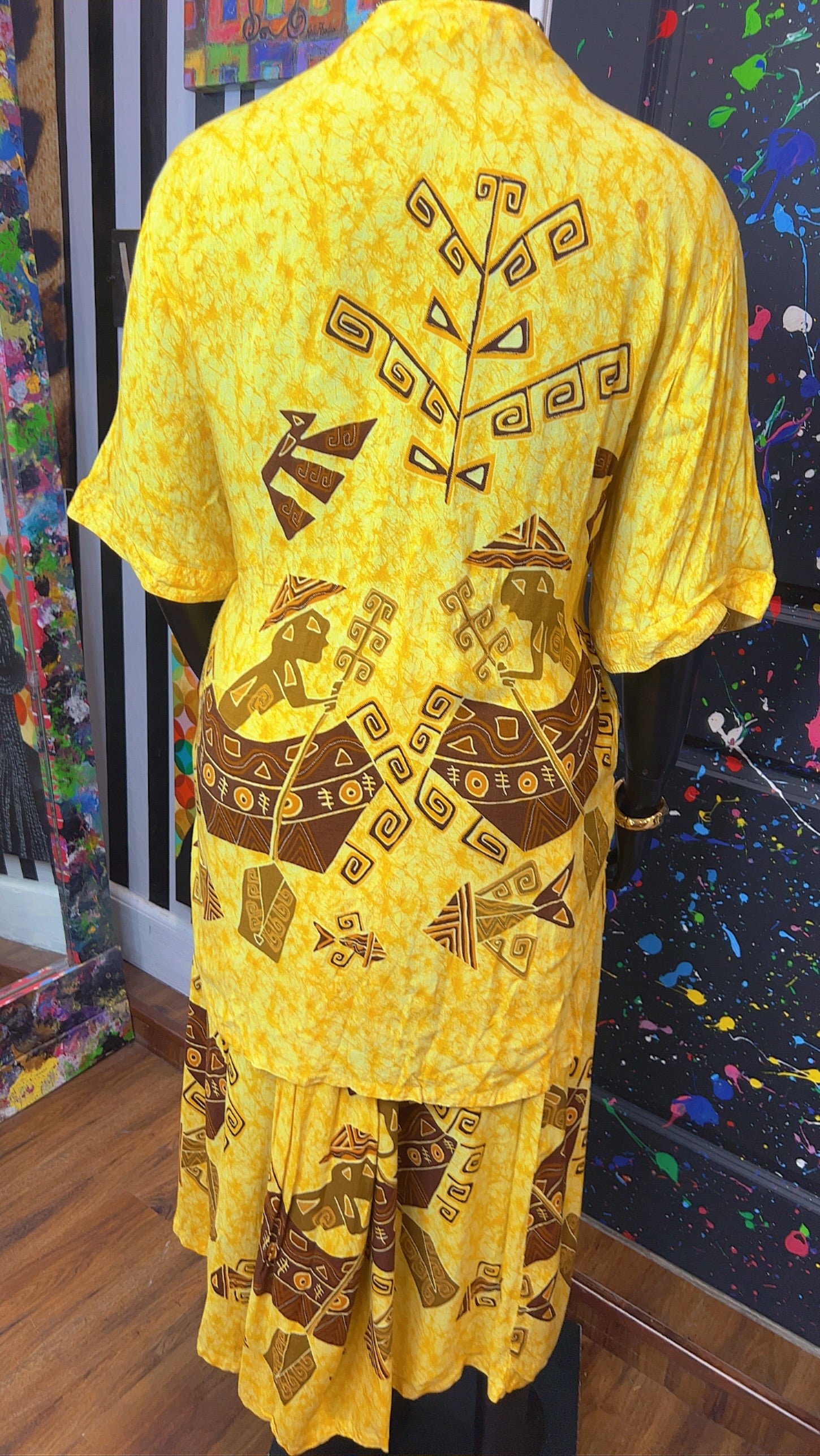 Vintage Rayon Tribal Yellow Skirt Set (18)