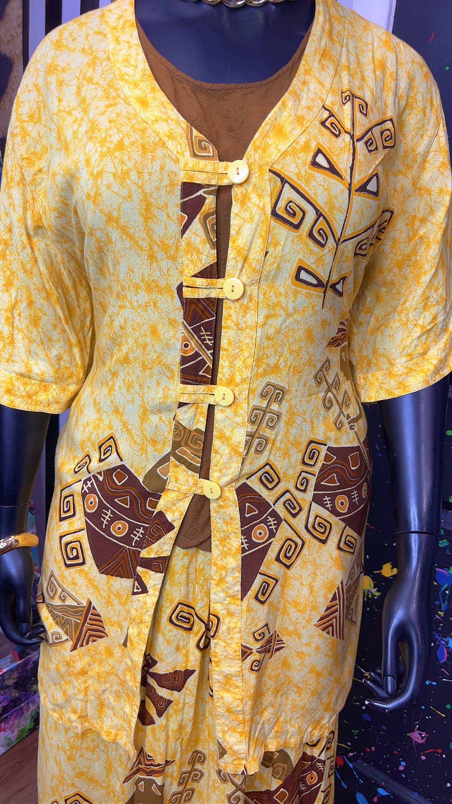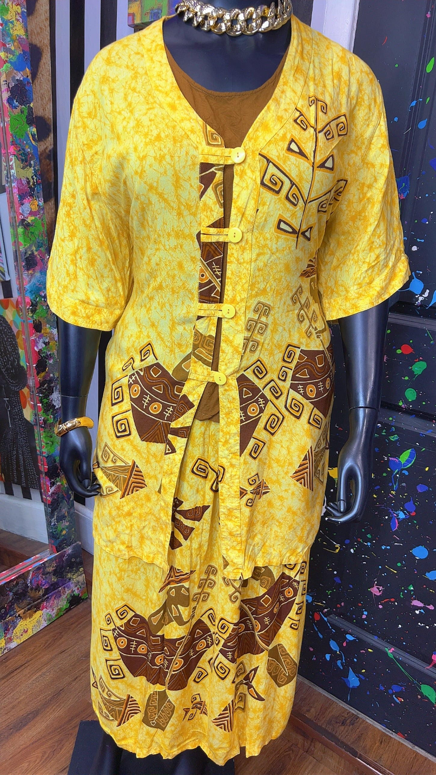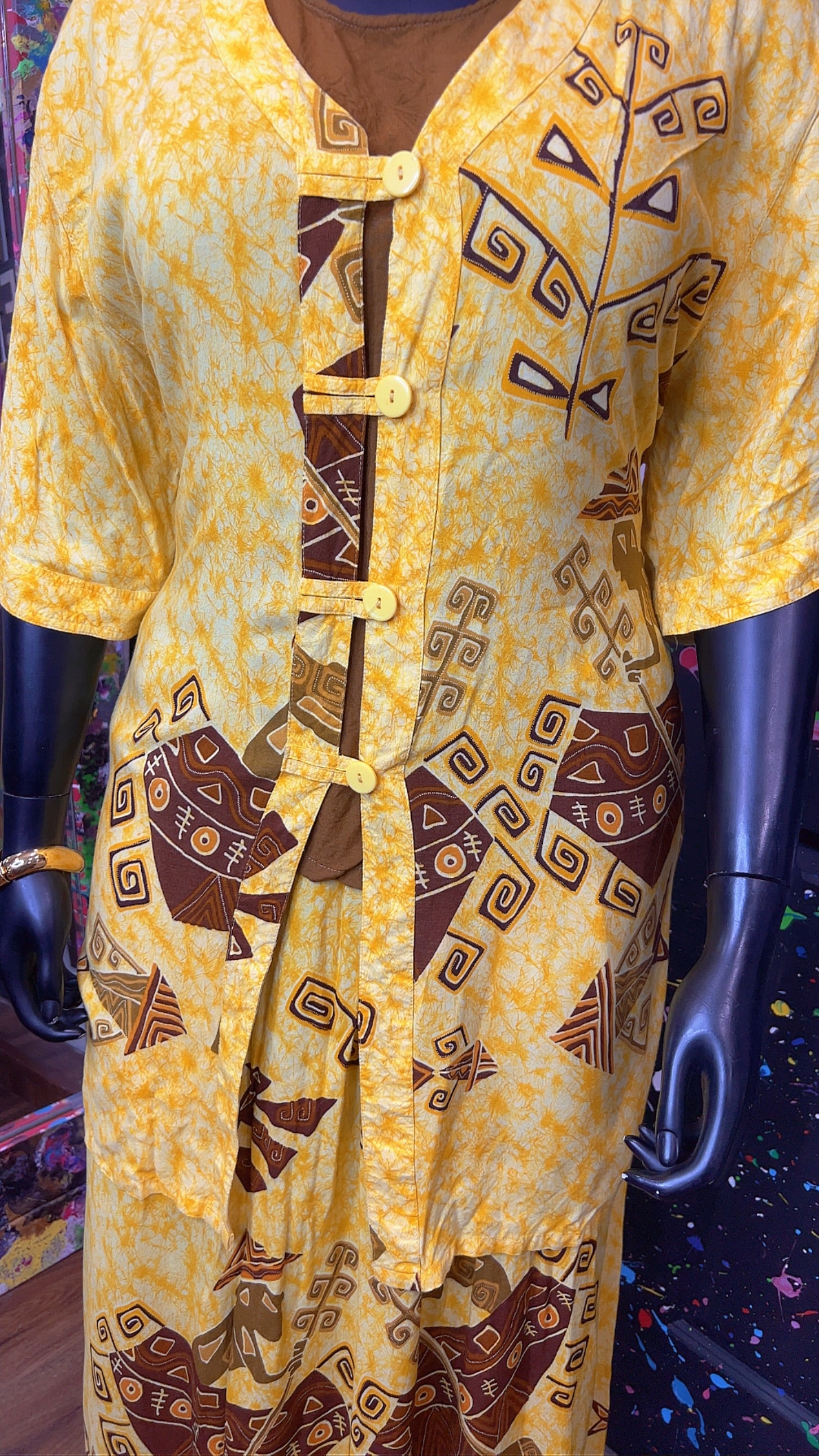 Vintage Rayon Tribal Yellow Skirt Set (18)