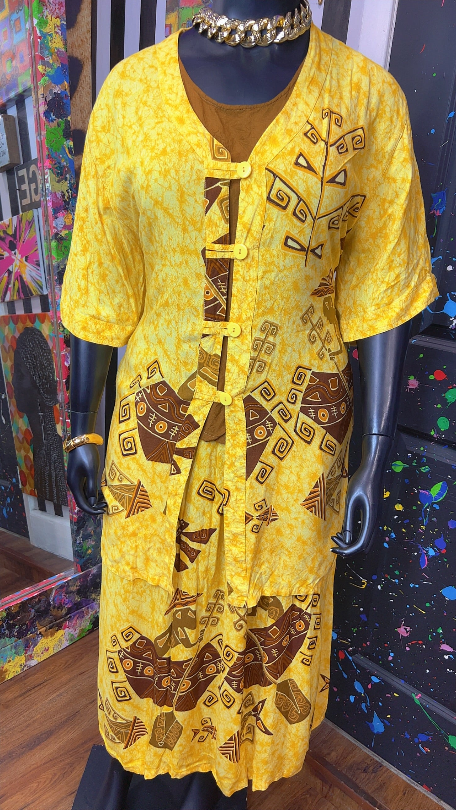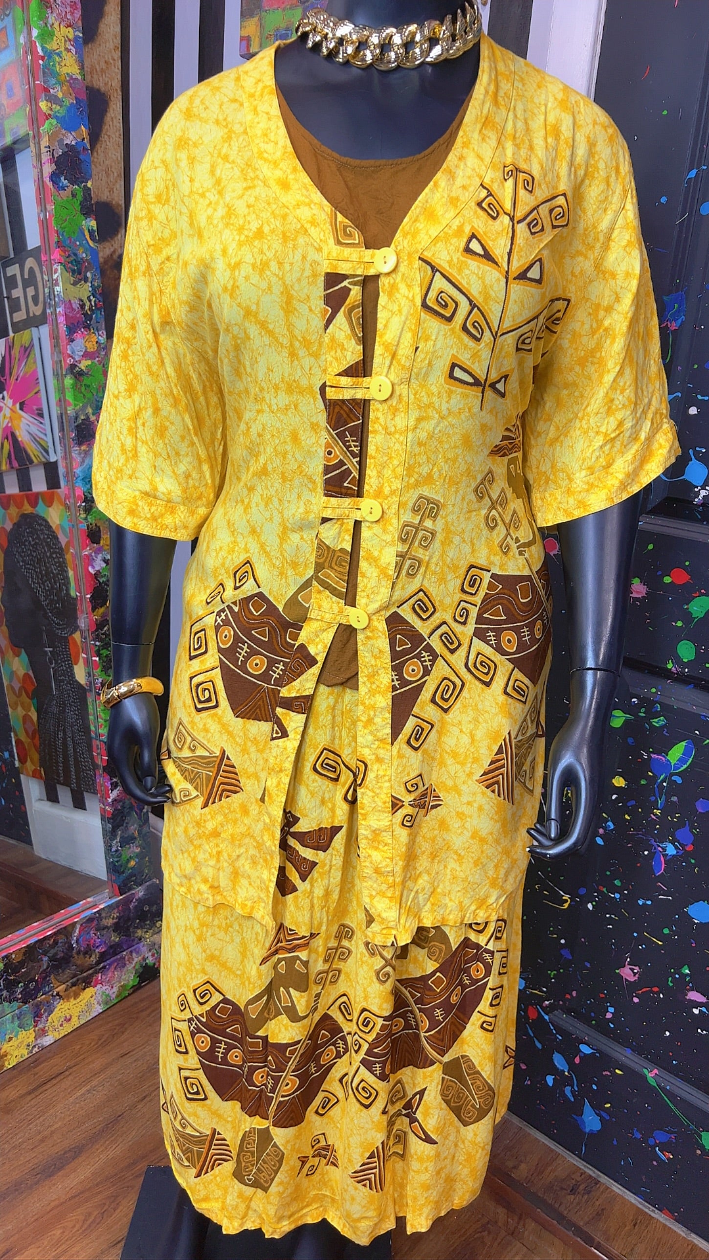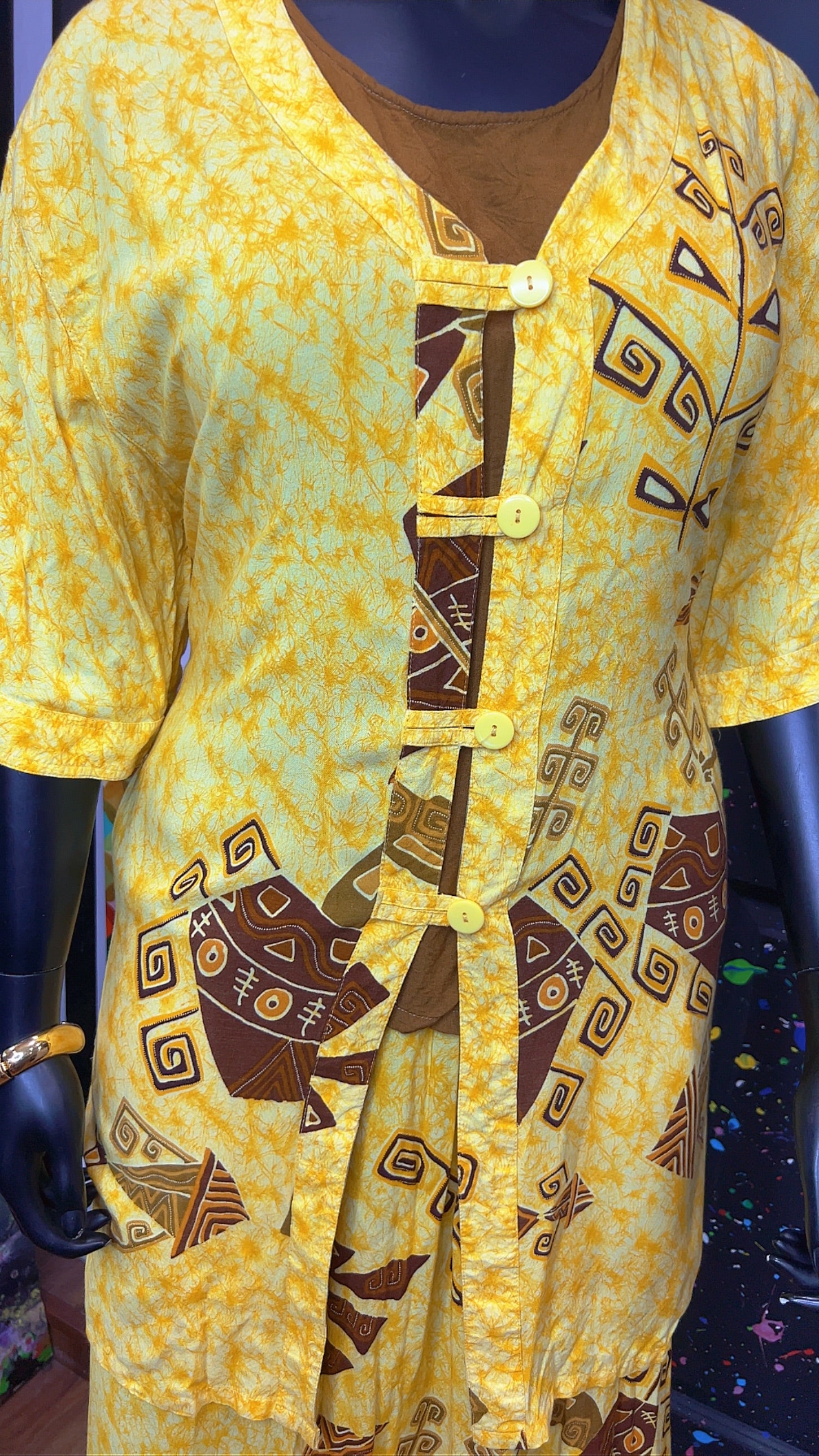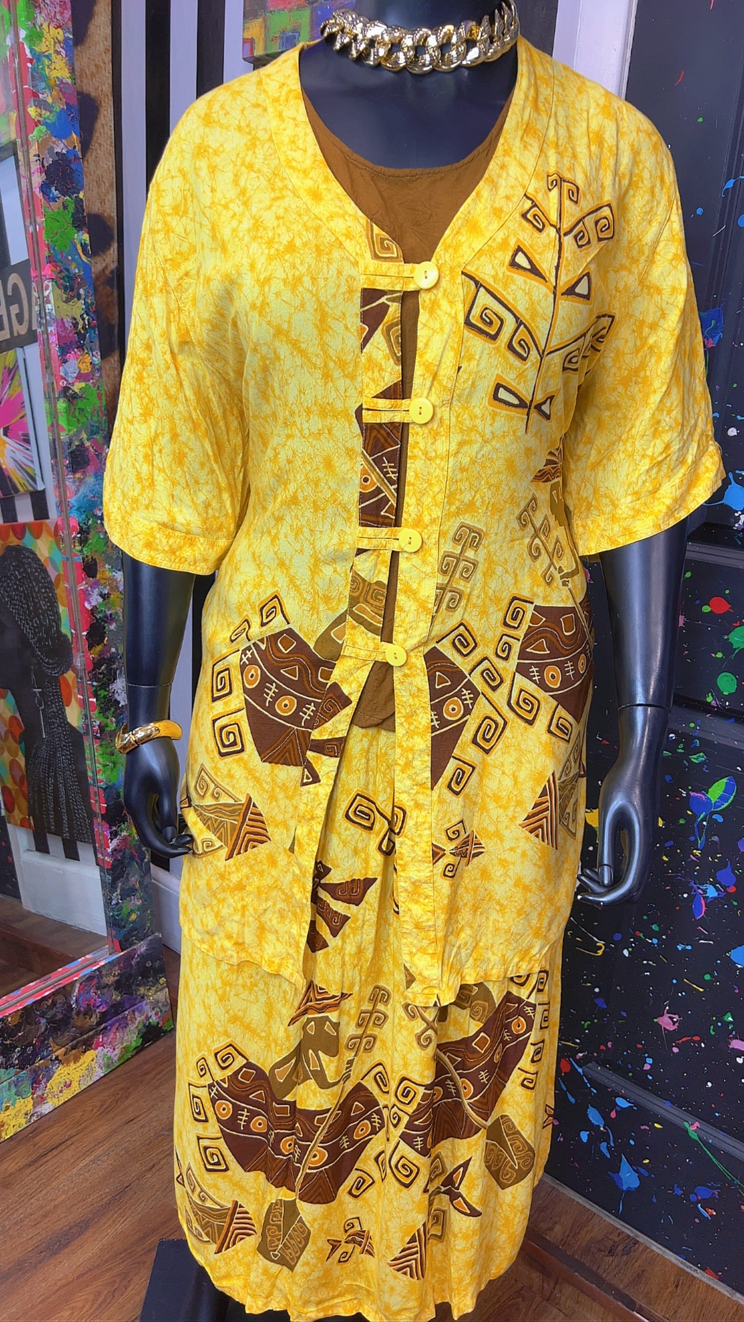 Vintage Rayon Tribal Yellow Skirt Set (18)