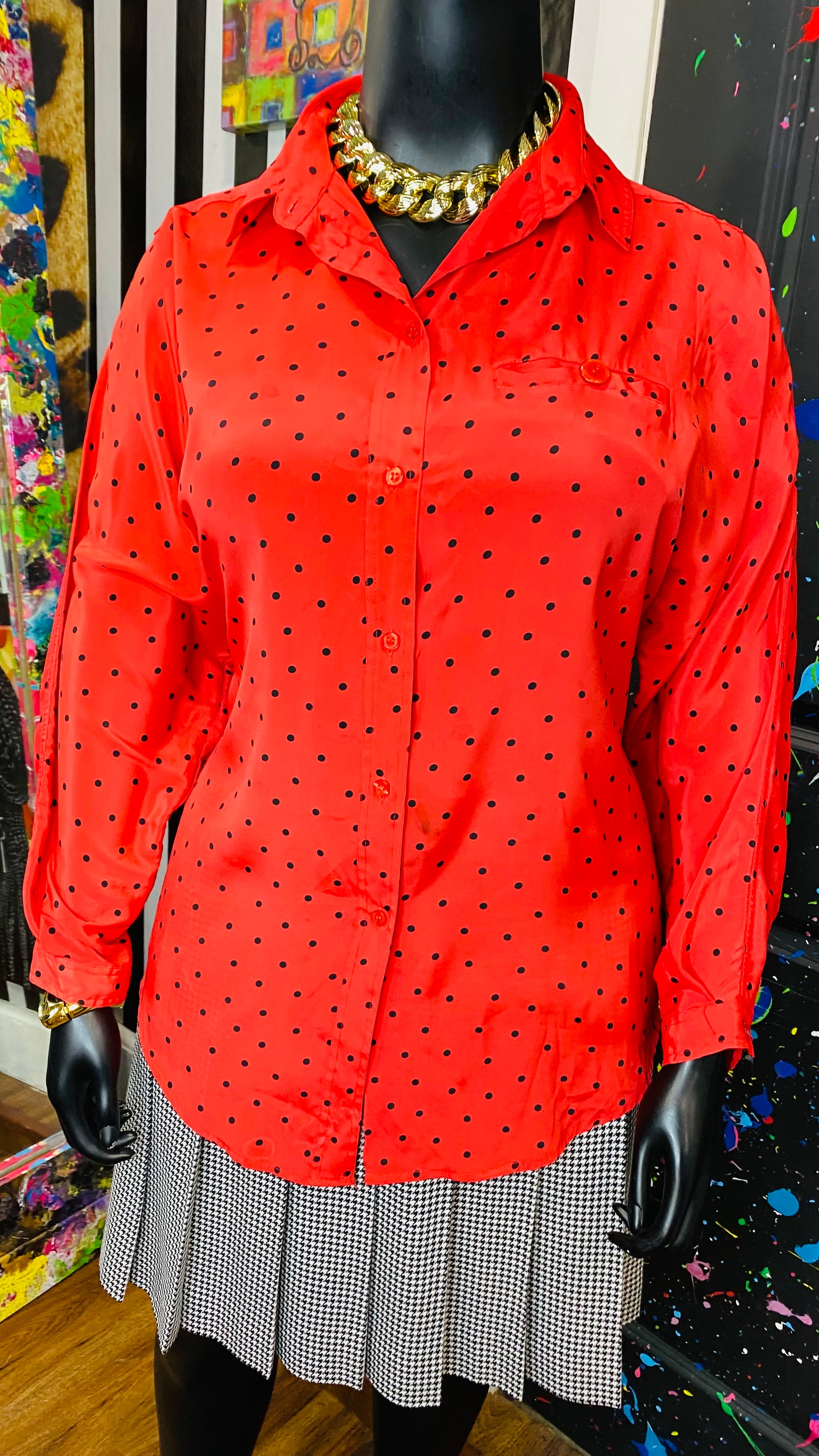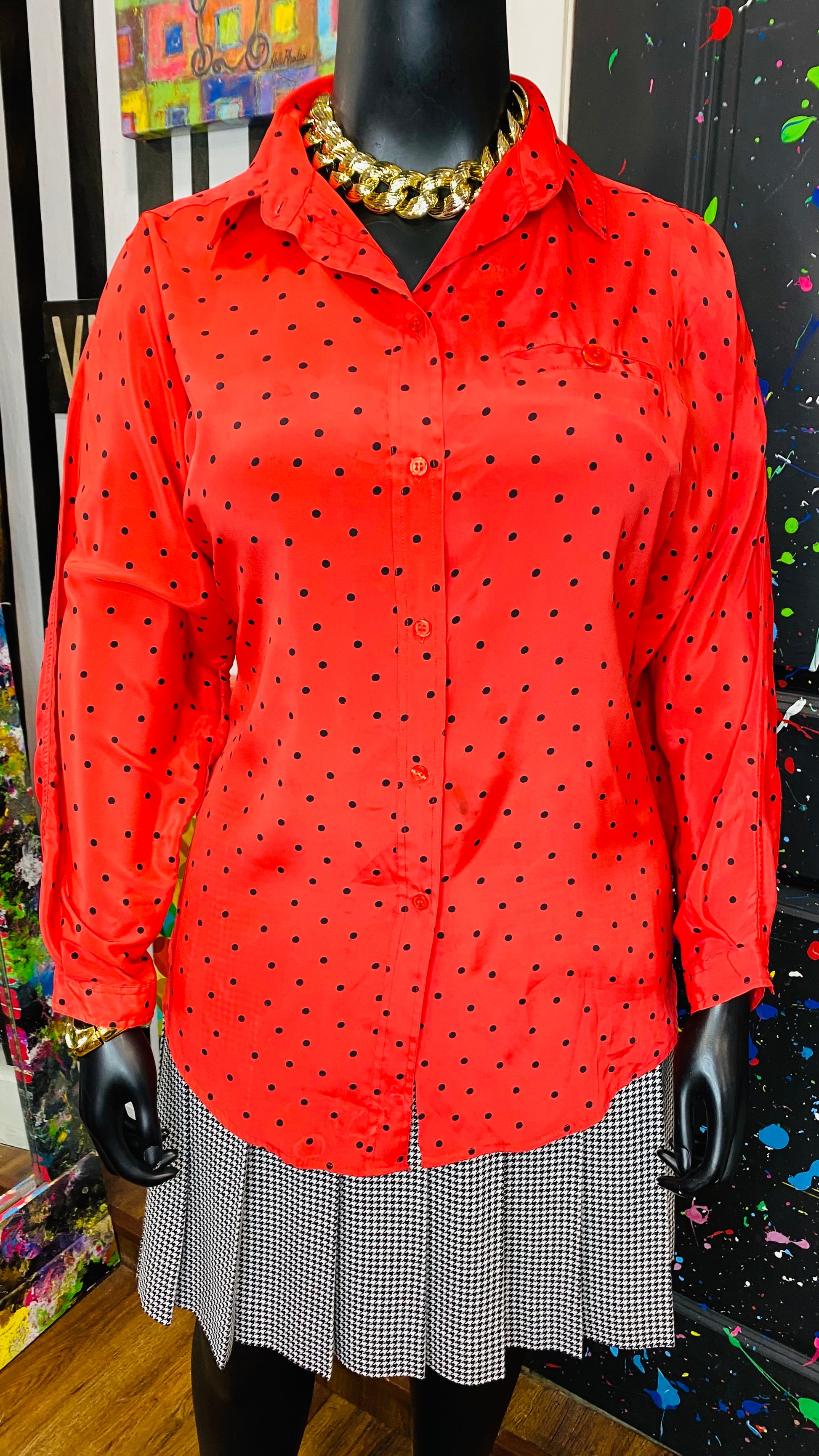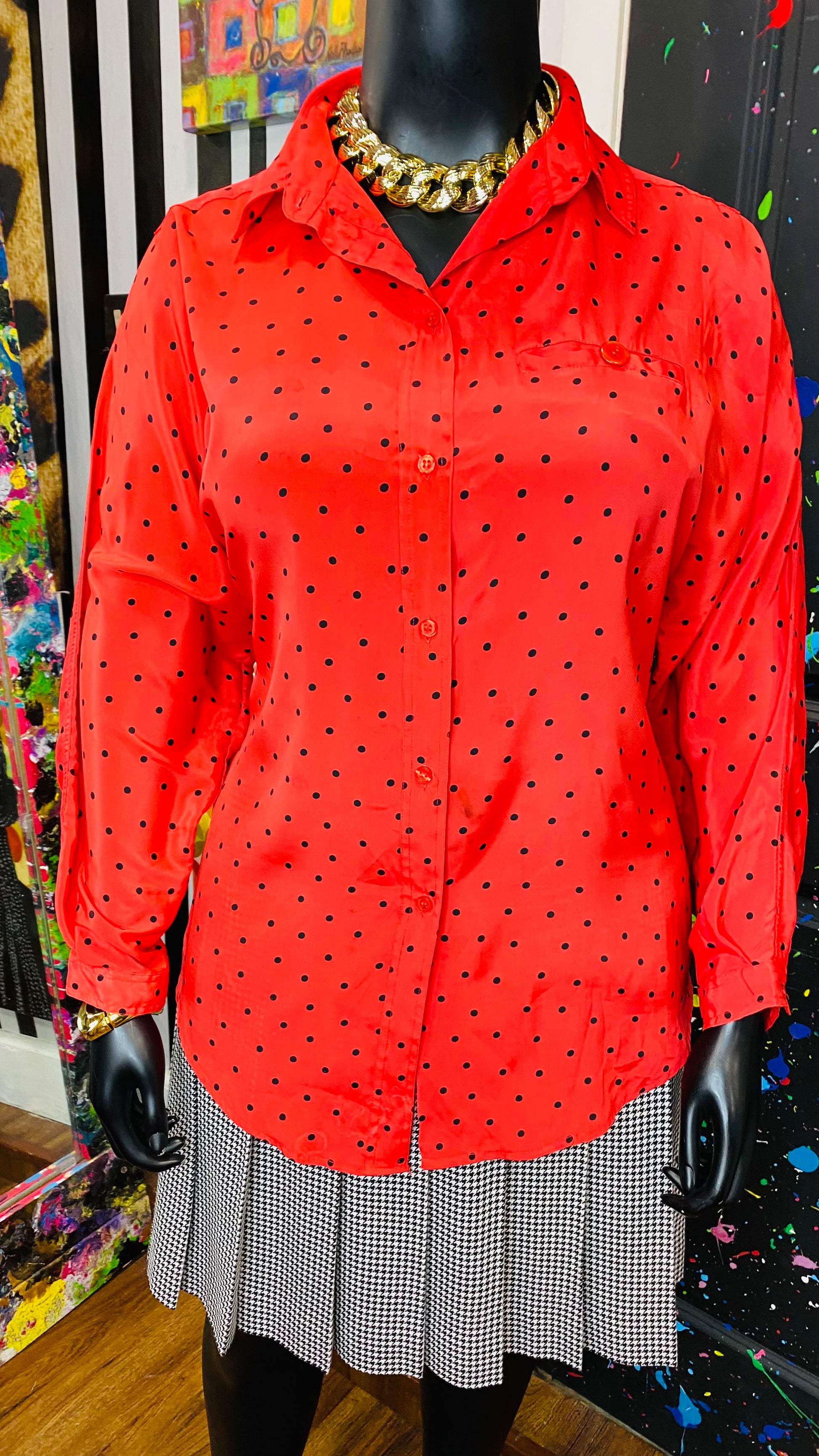 Vintage Red & Black Polka Dot Blouse (20)