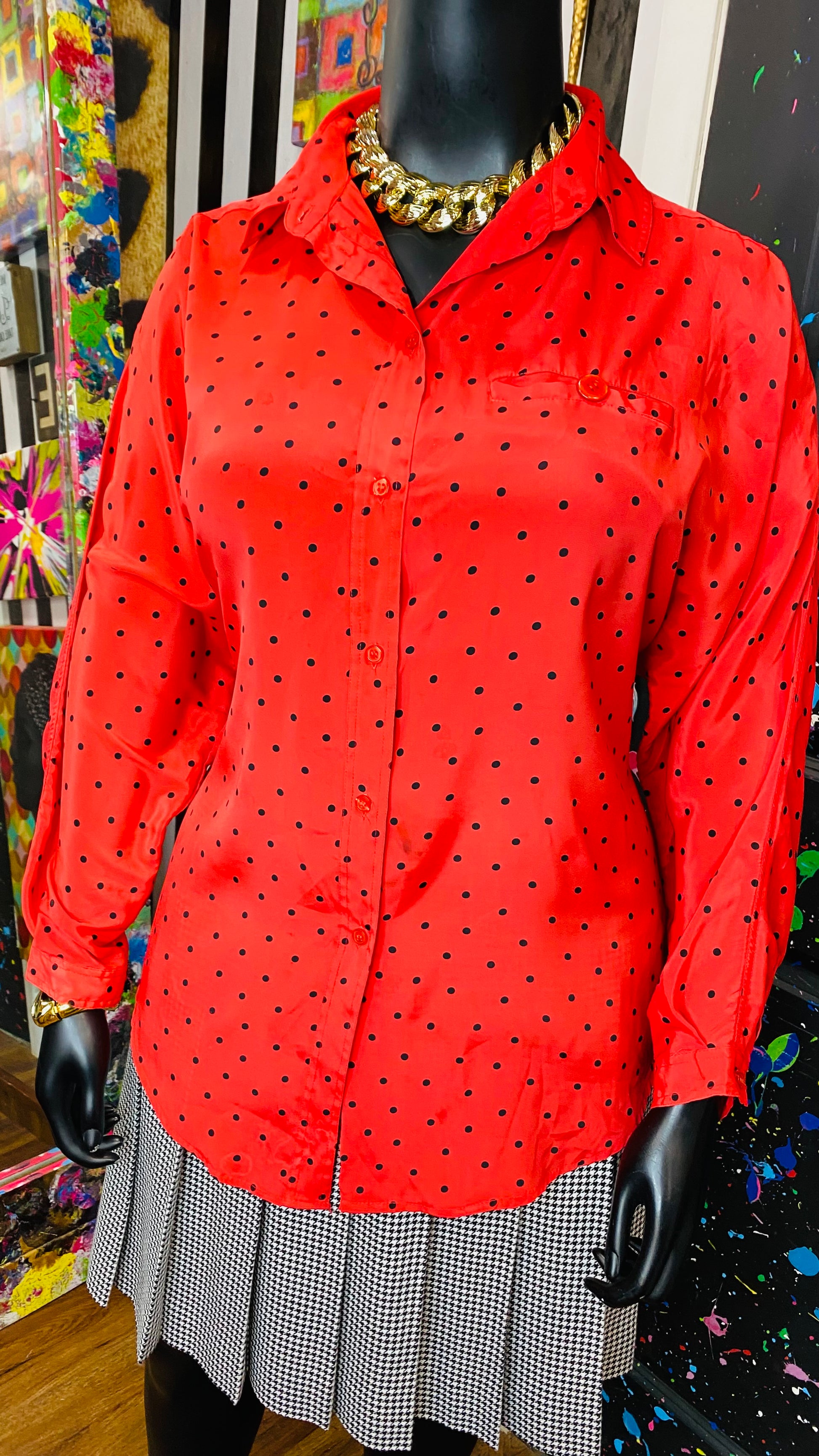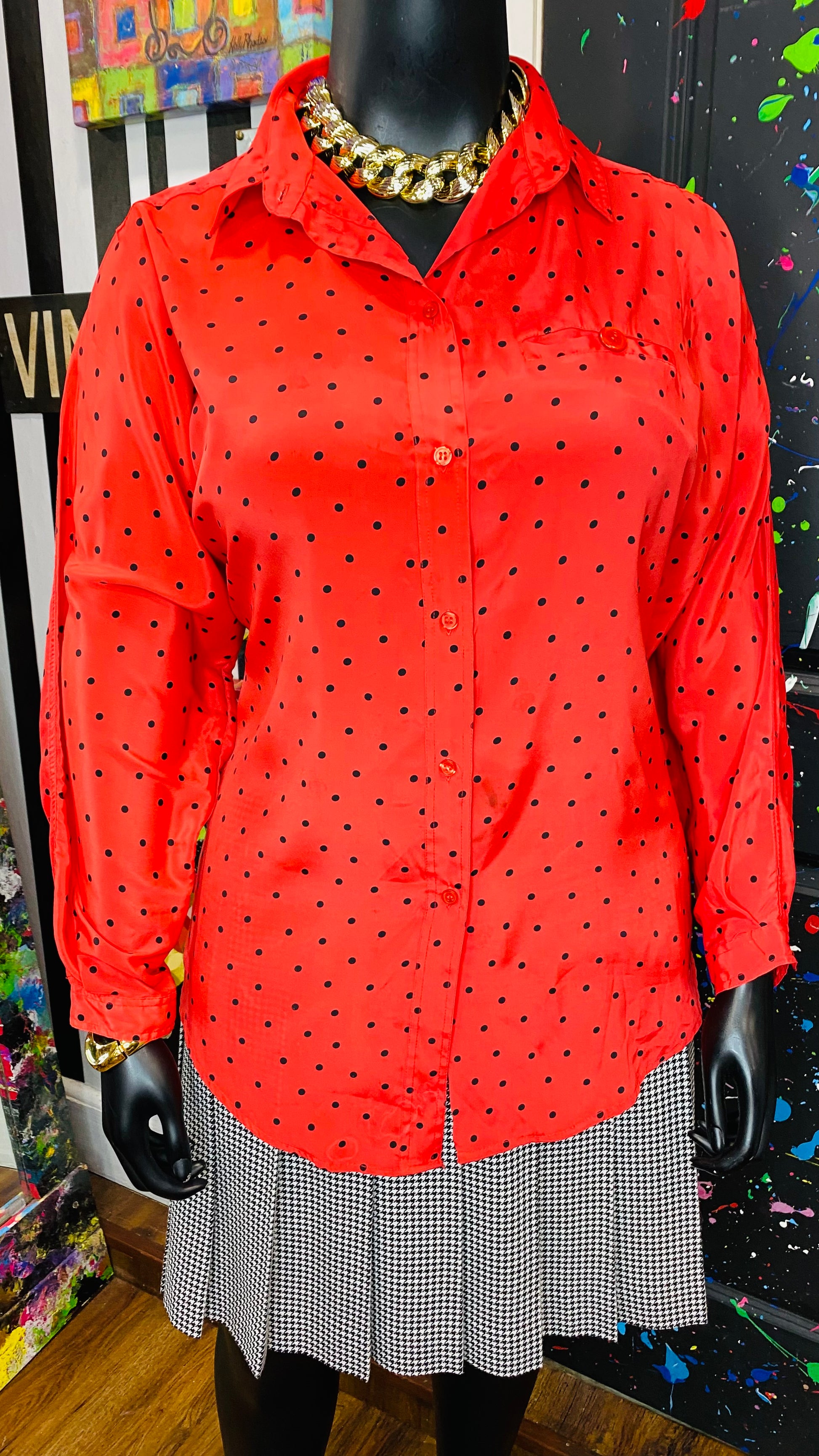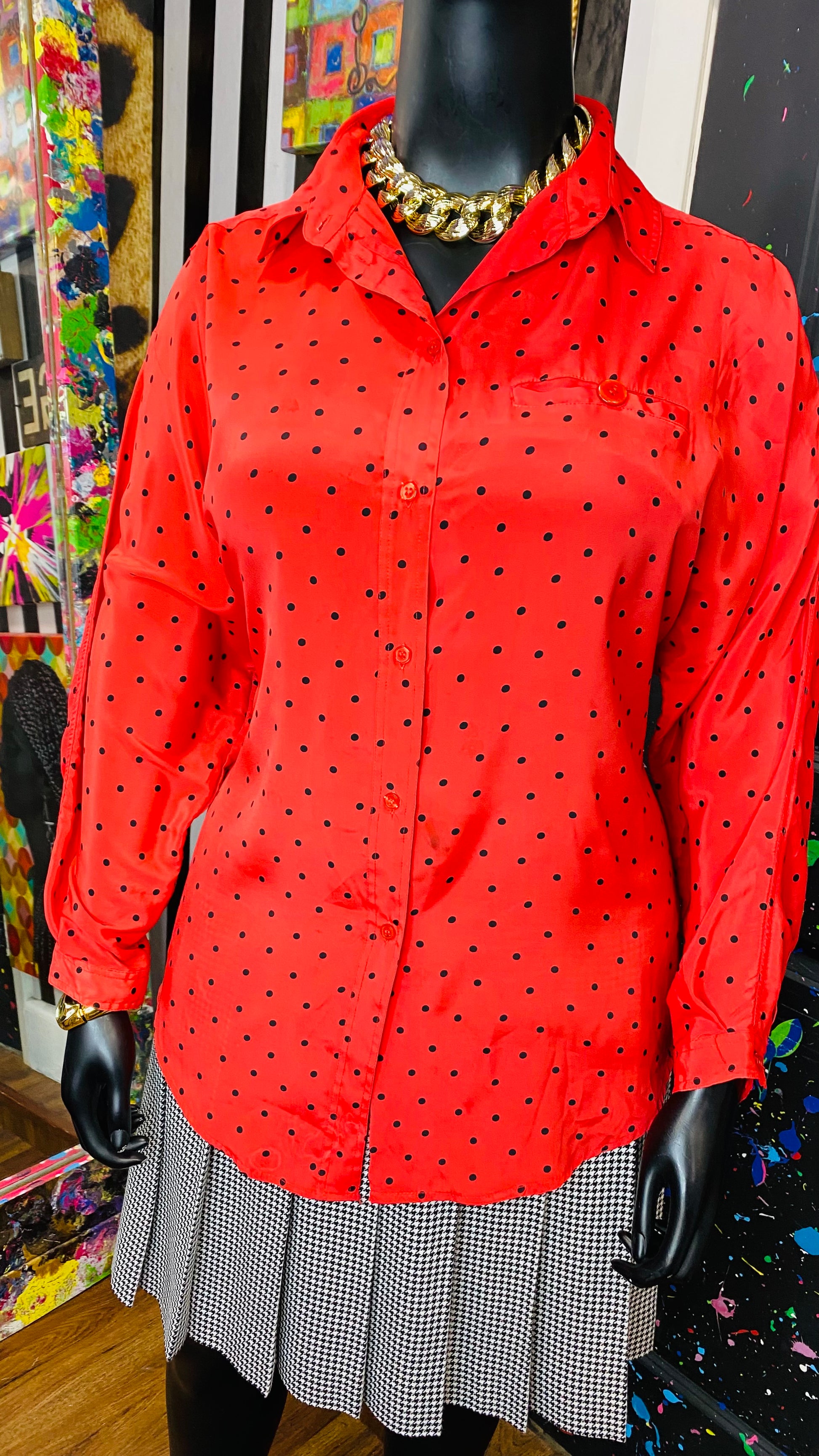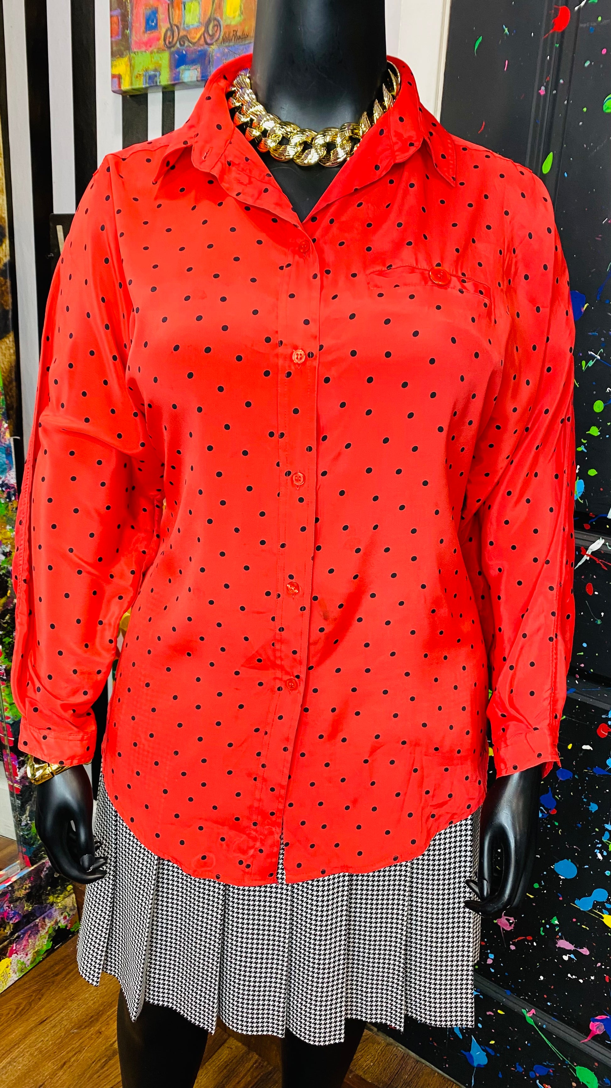 Vintage Red & Black Polka Dot Blouse (20)