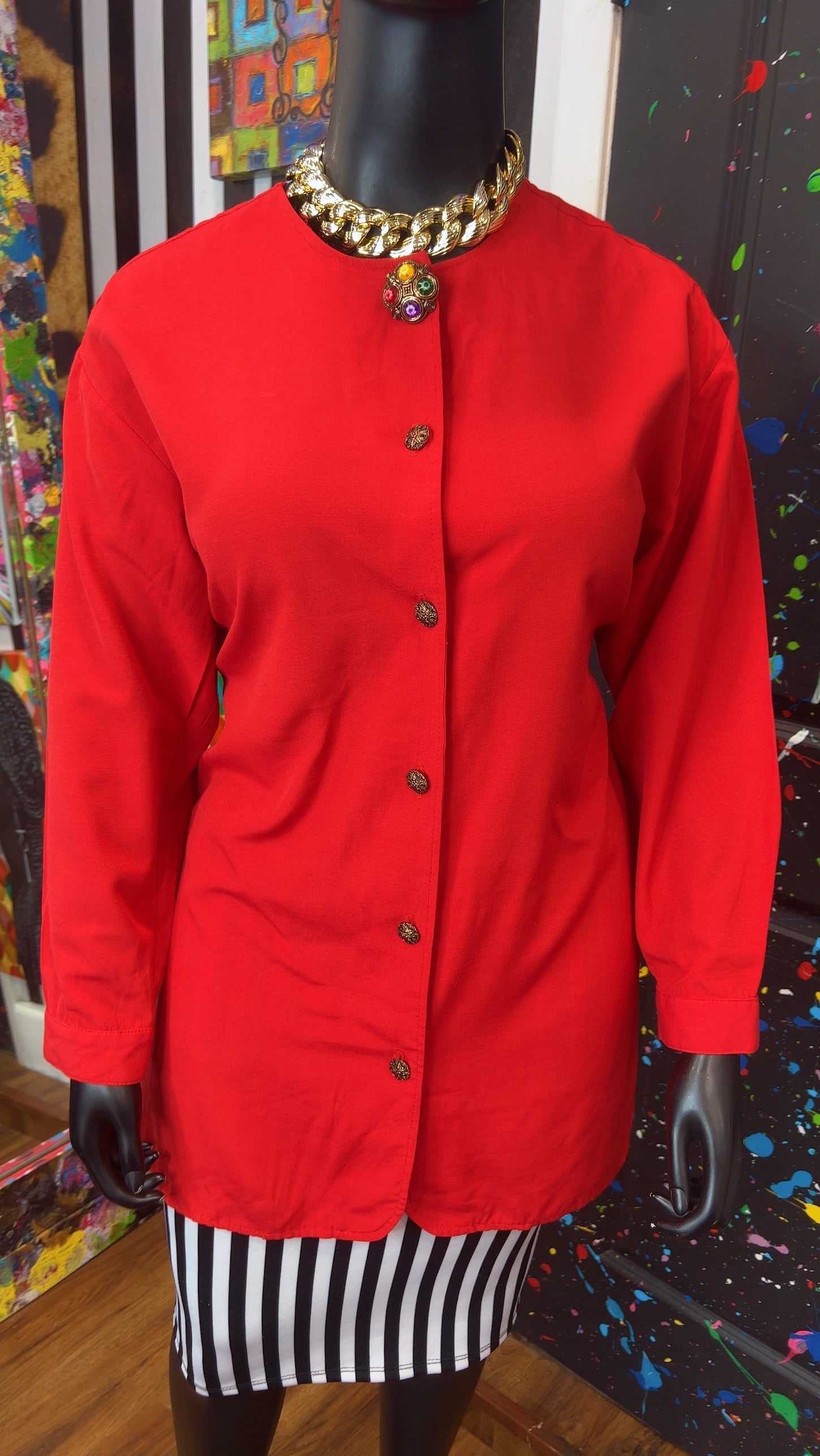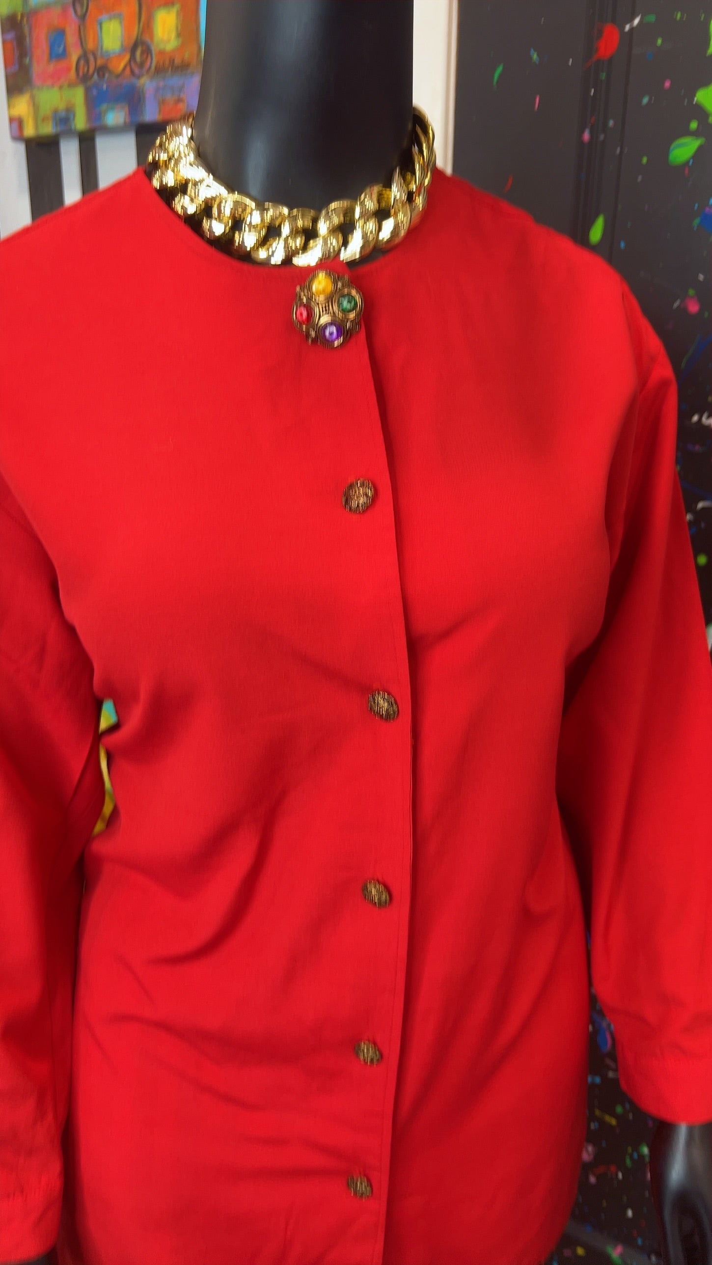 Vintage Red Blouse w/ Jewel Blouse (18)