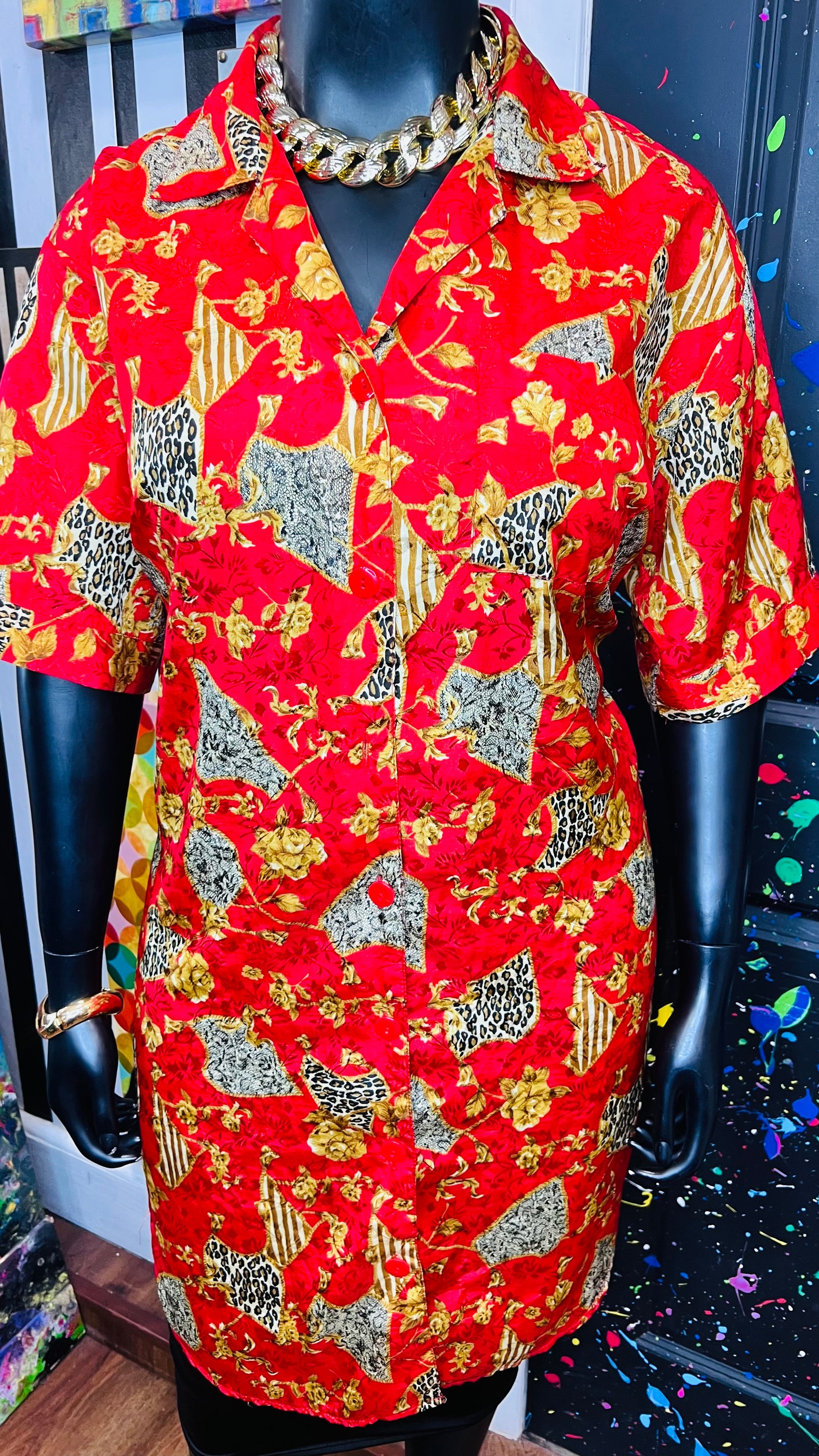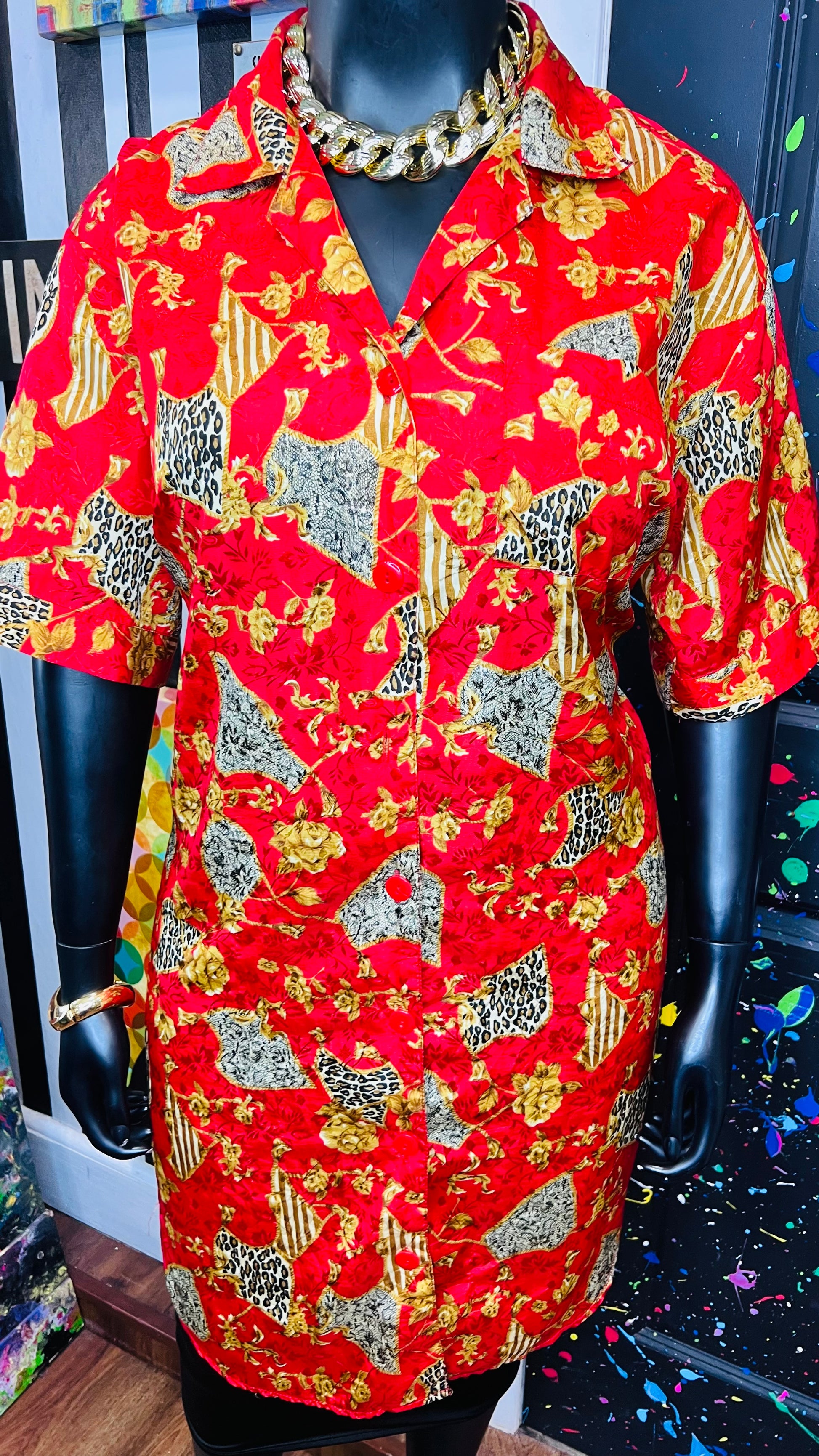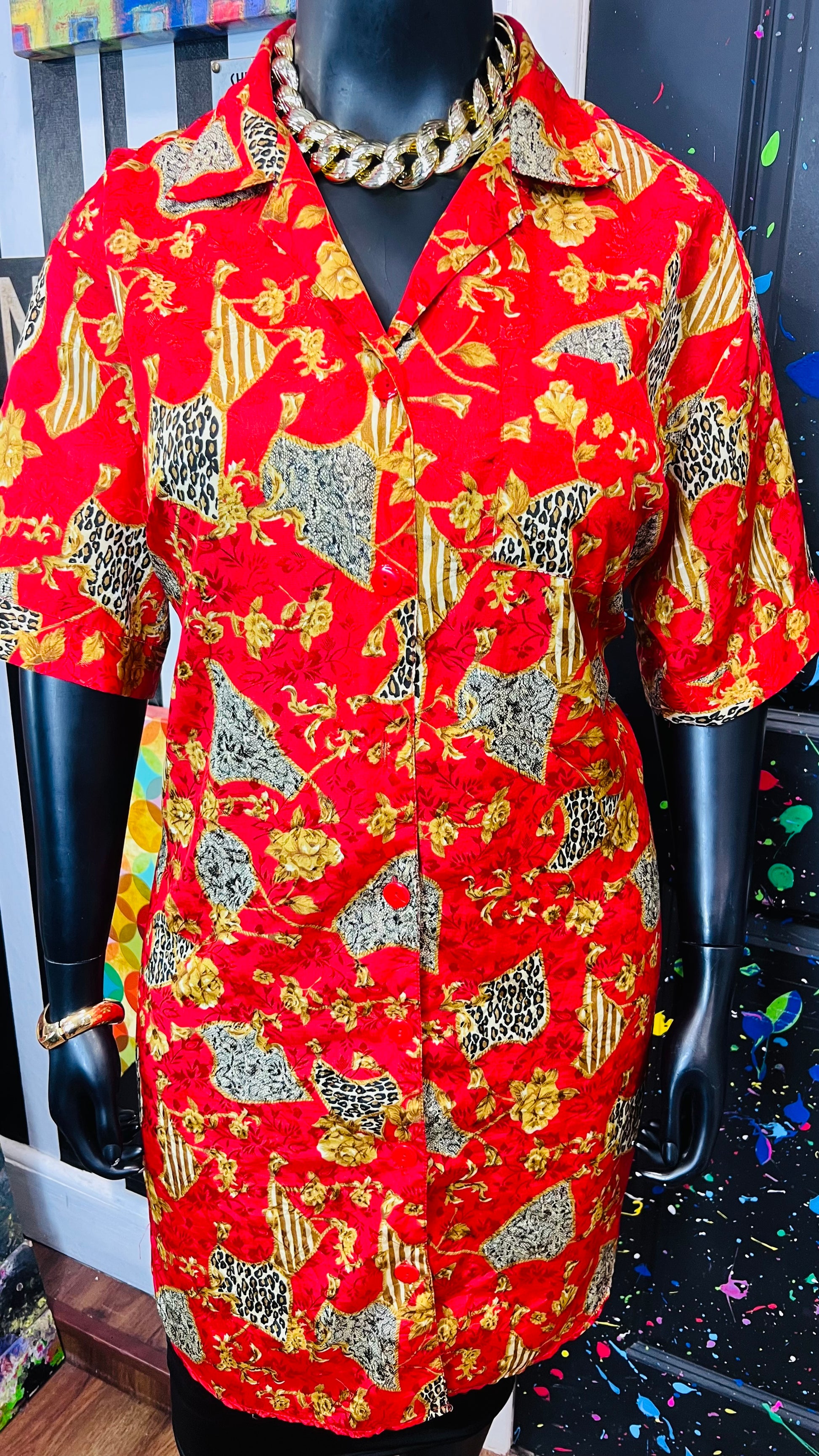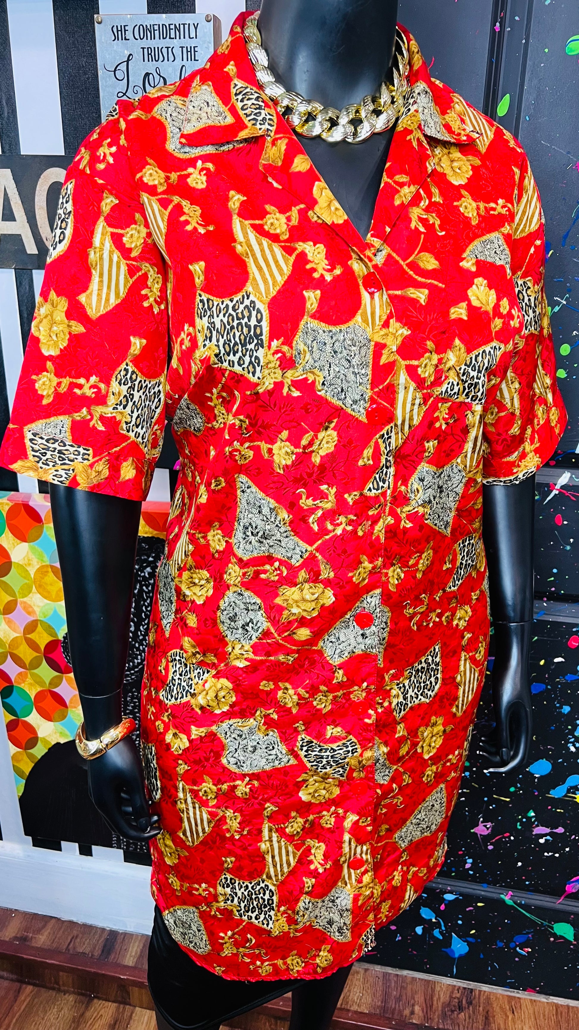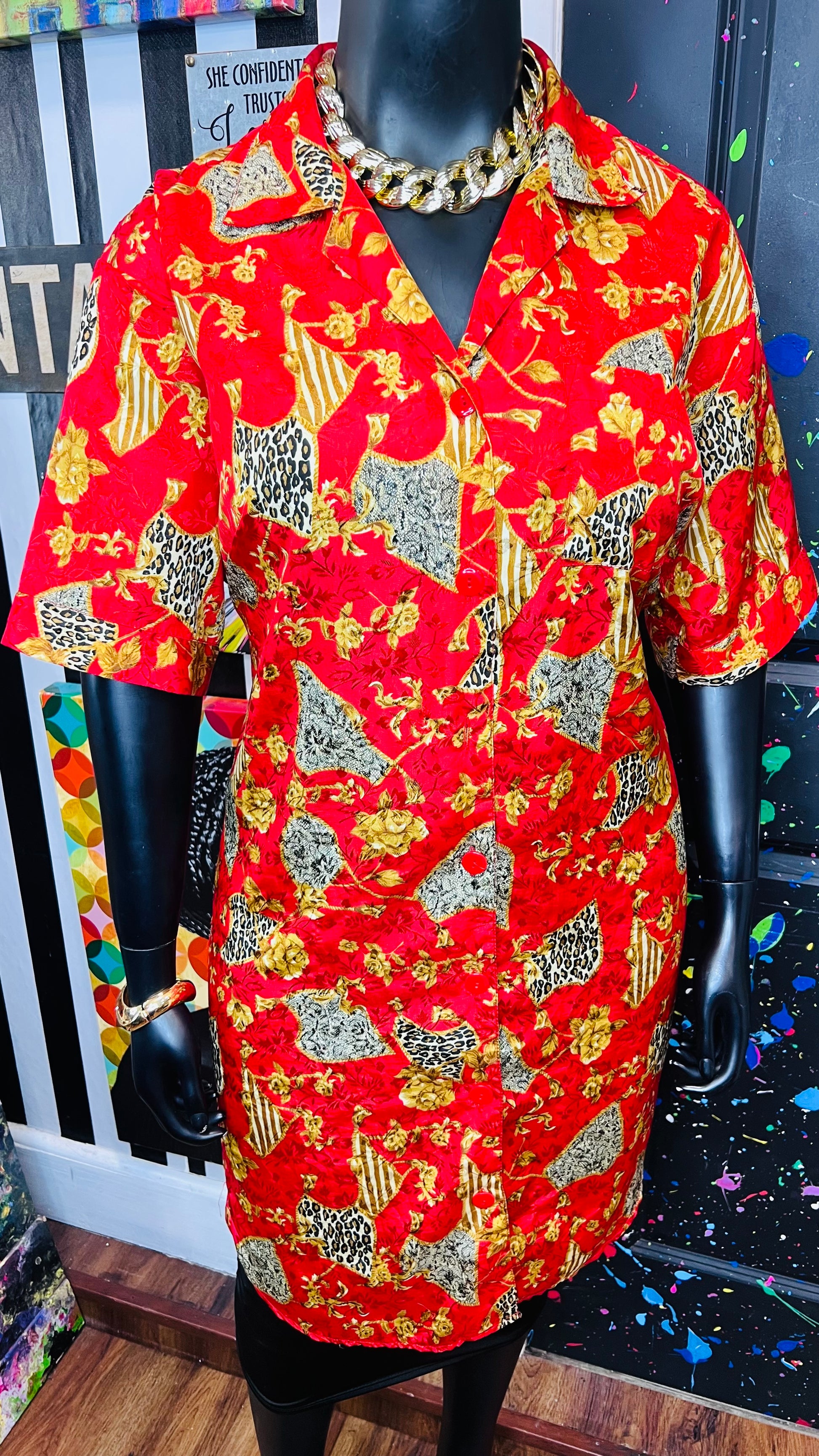 Vintage Red & Gold Animal Print Gown/Duster (OS)