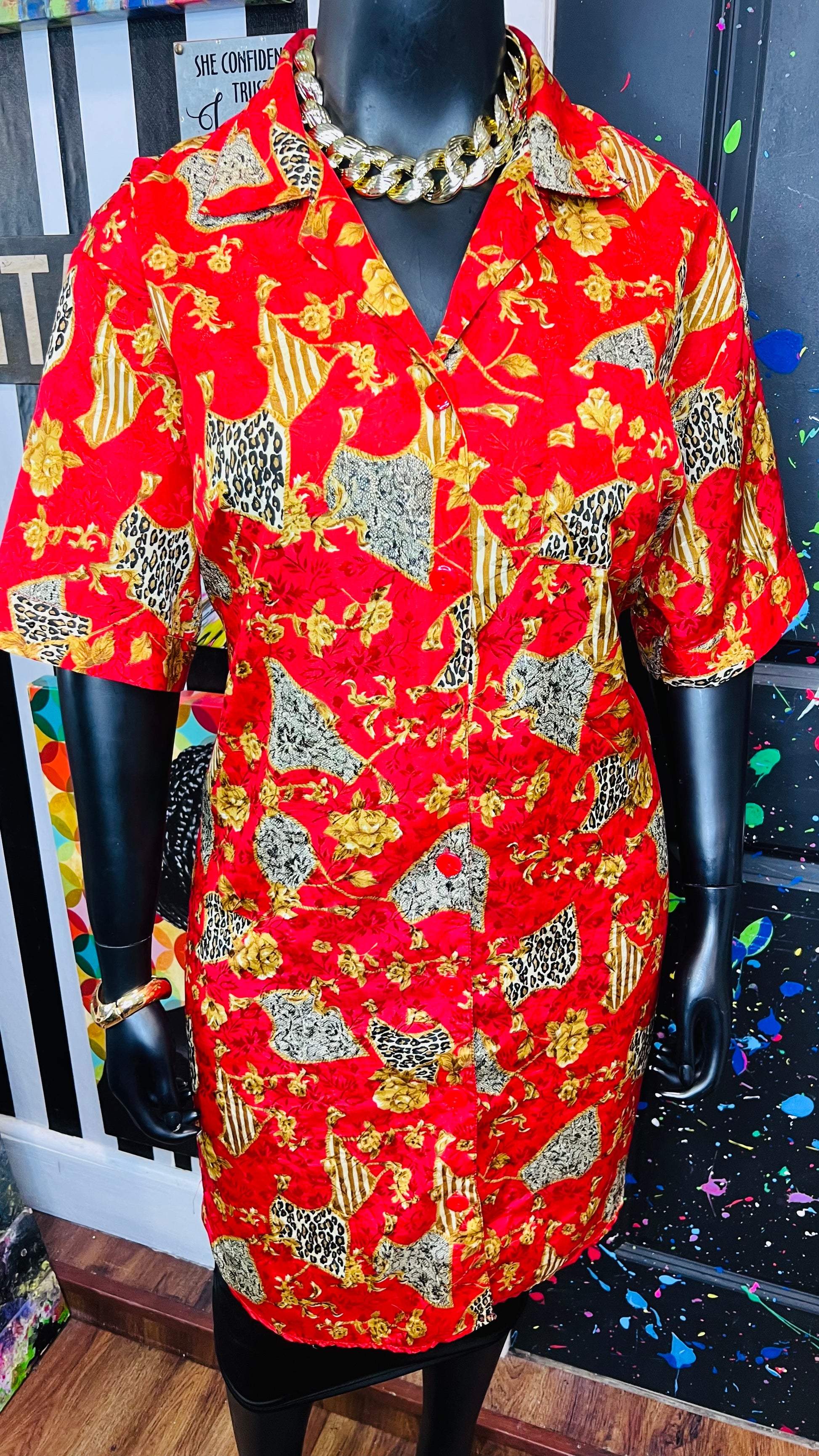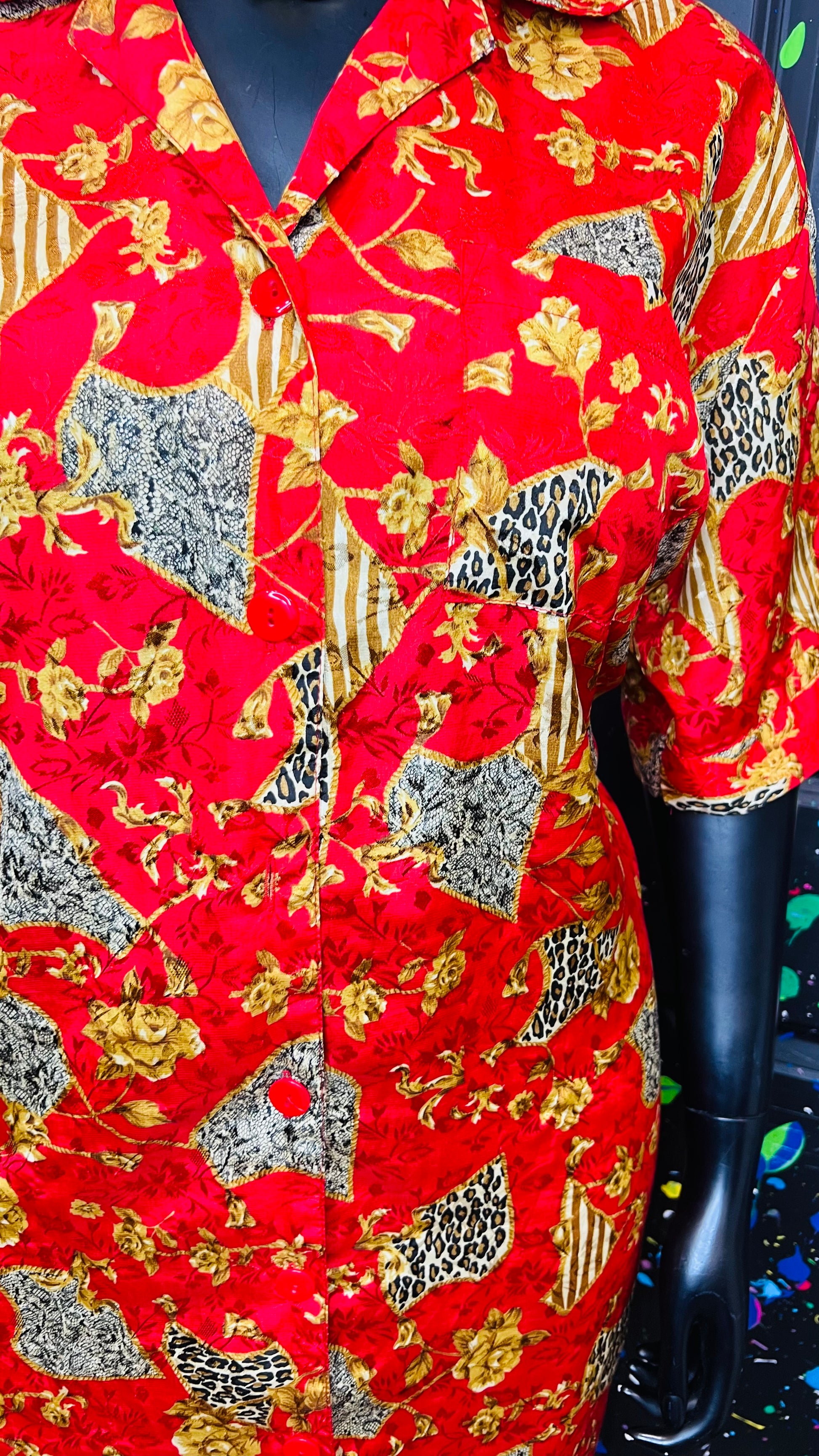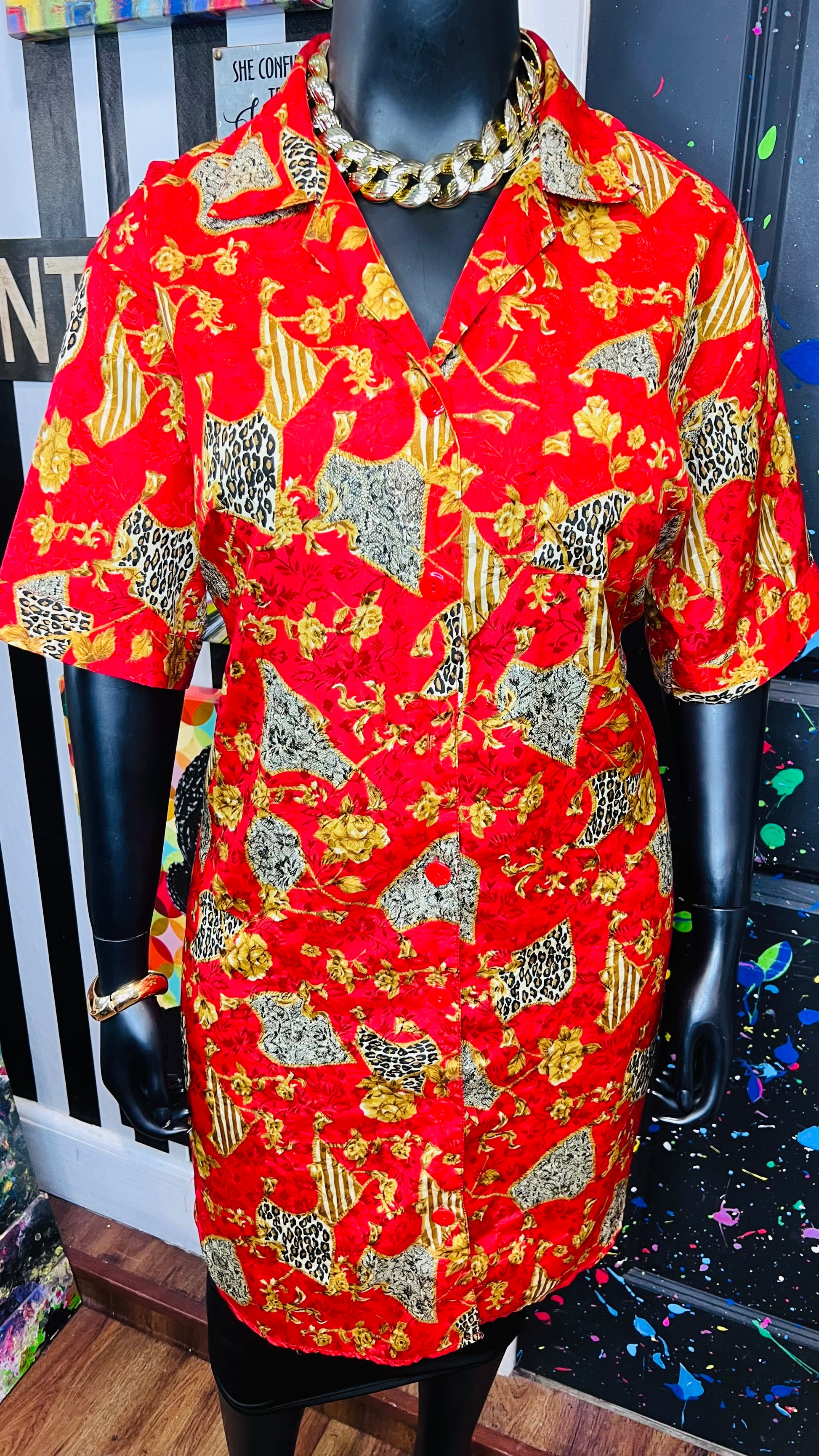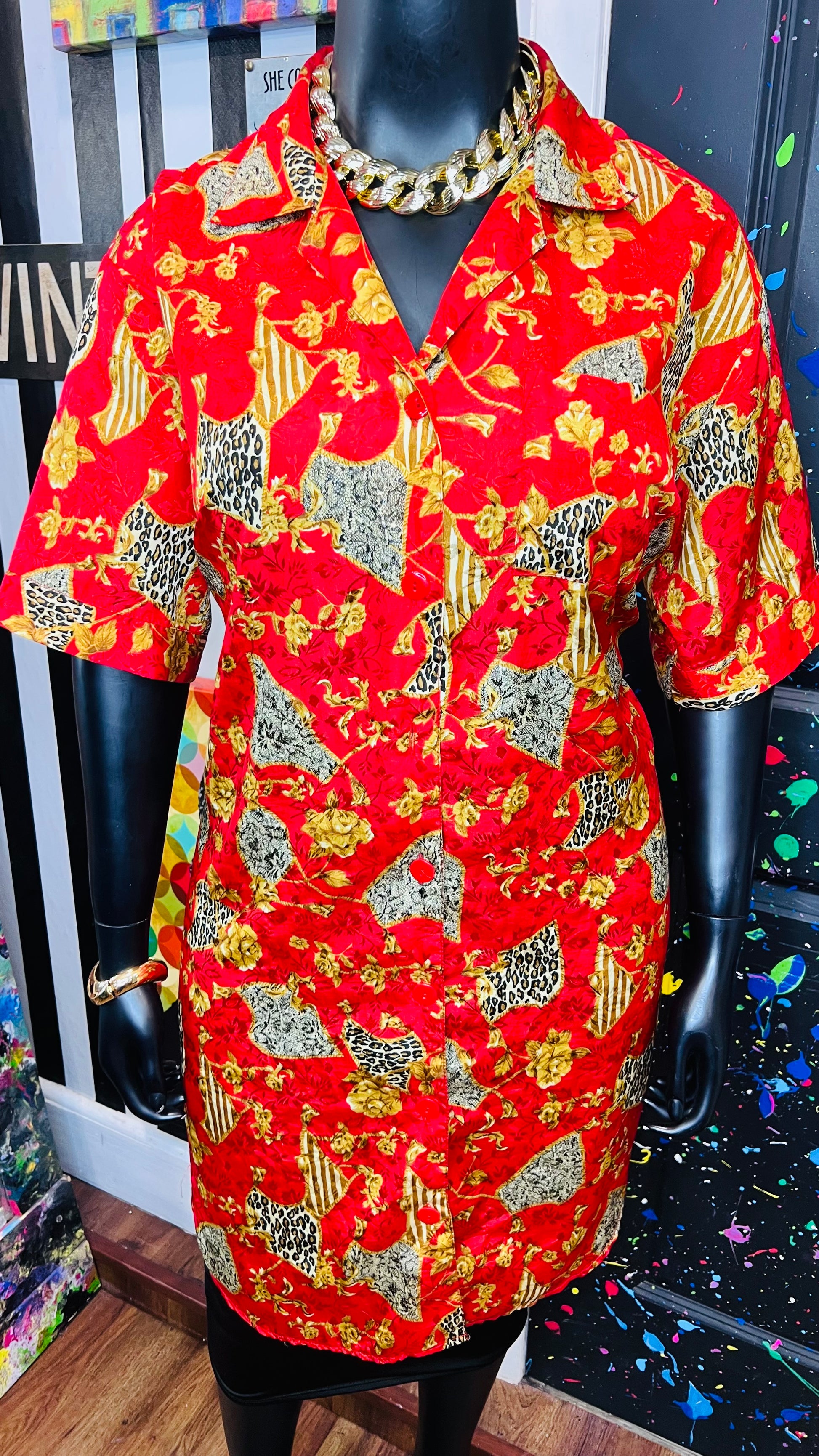 Vintage Red & Gold Animal Print Gown/Duster (OS)