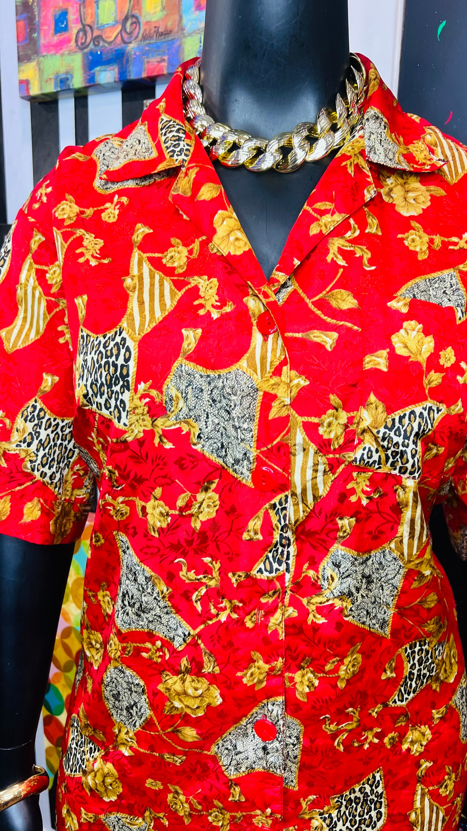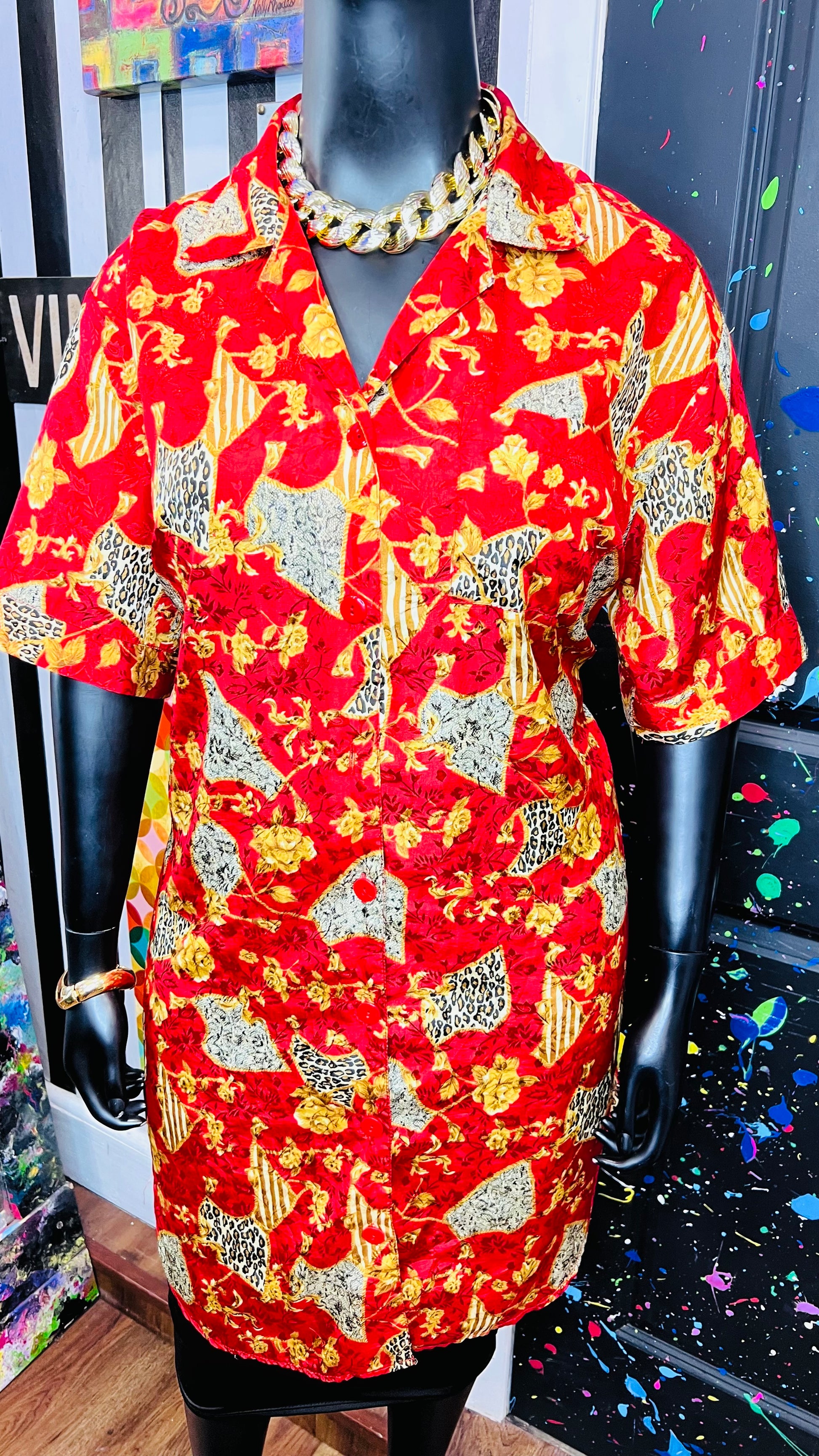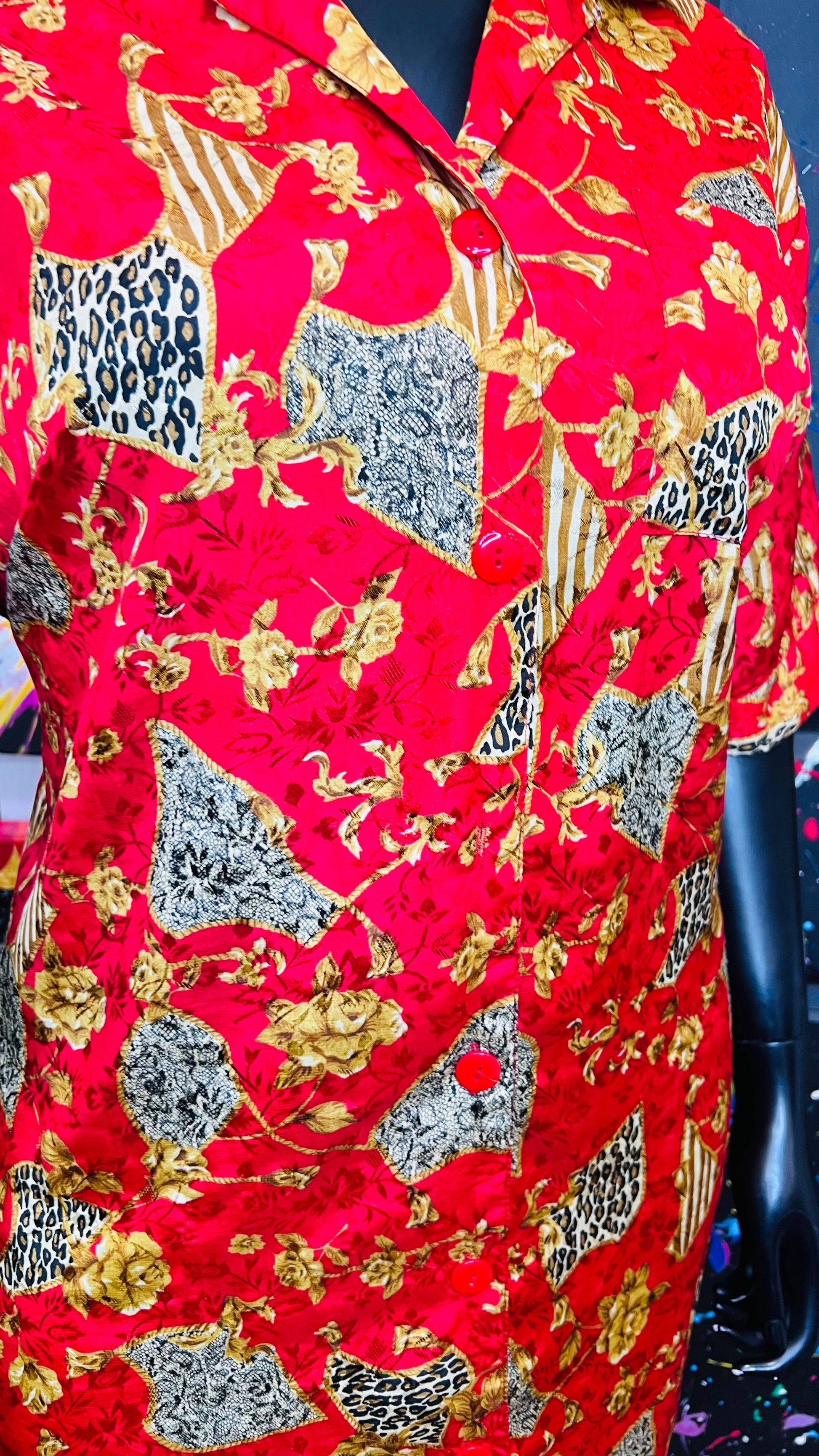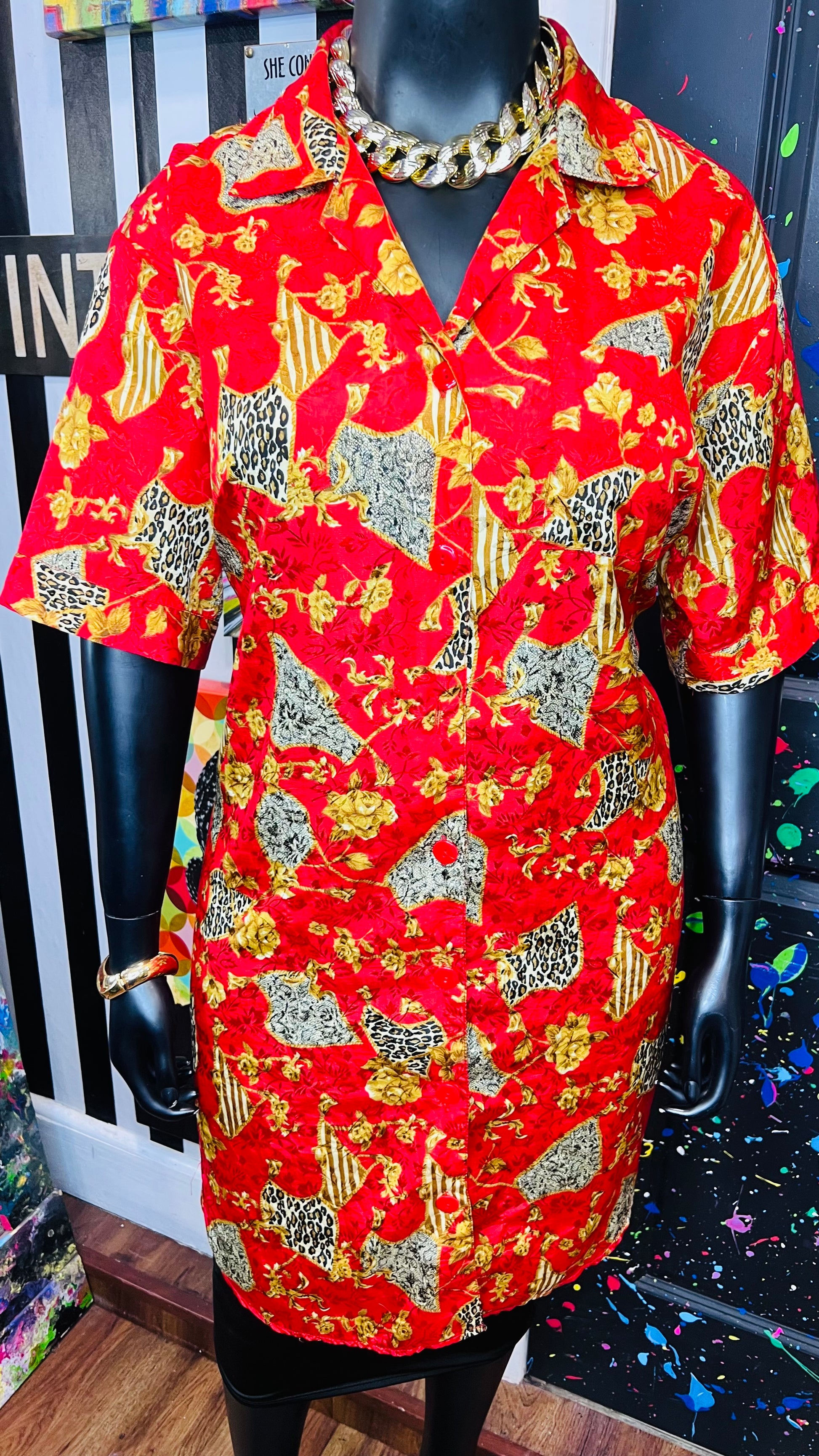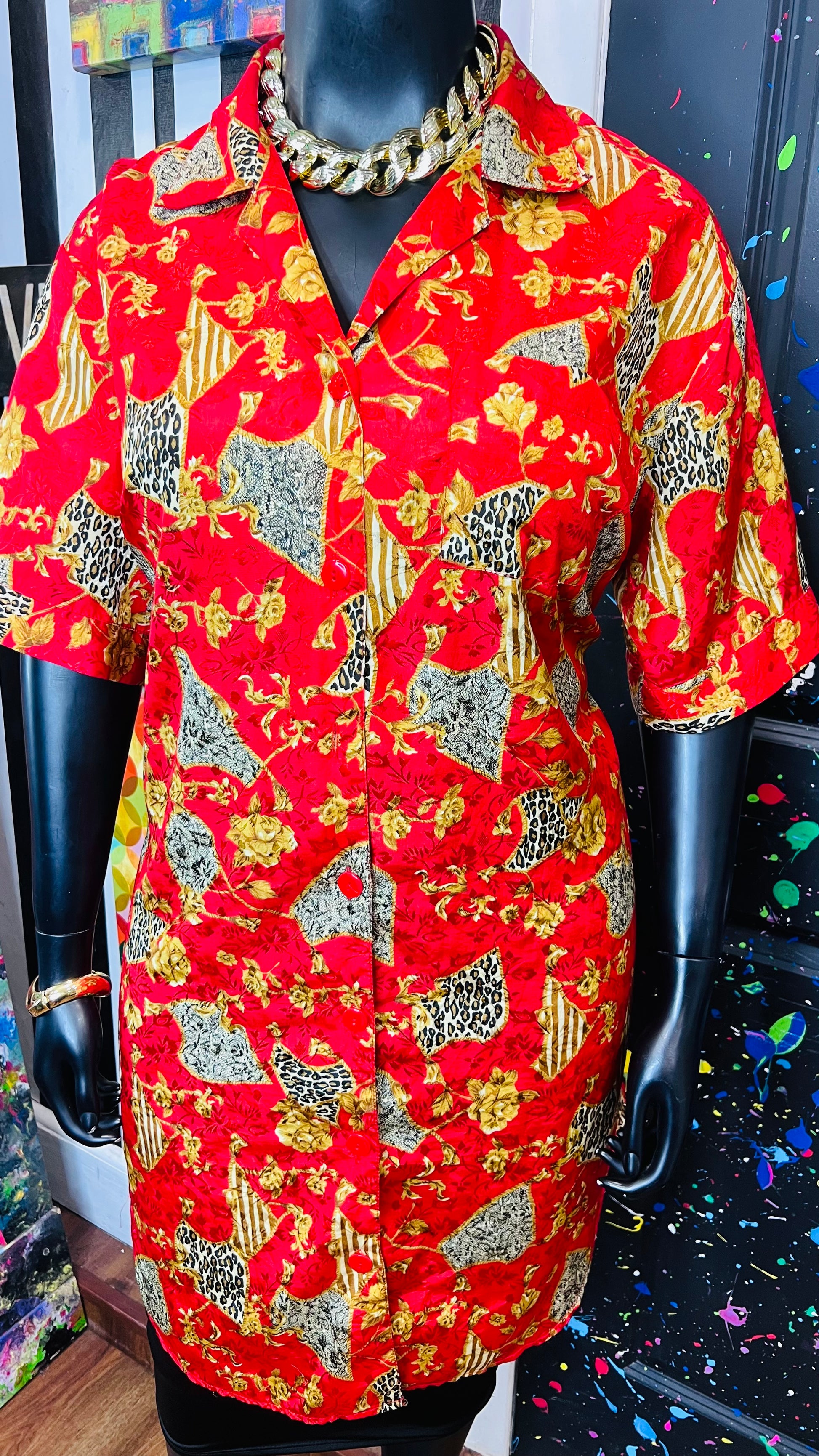 Vintage Red & Gold Animal Print Gown/Duster (OS)
