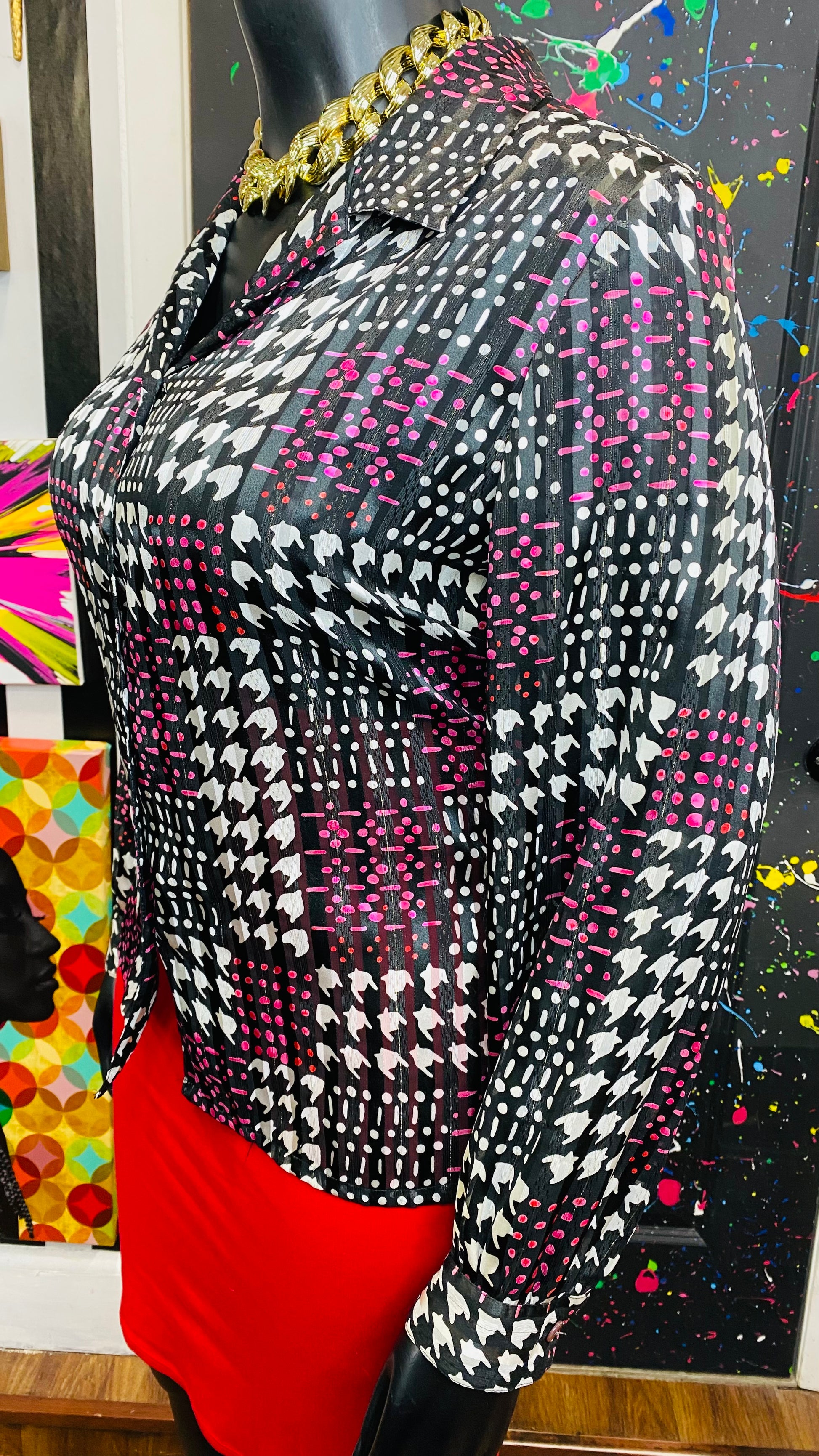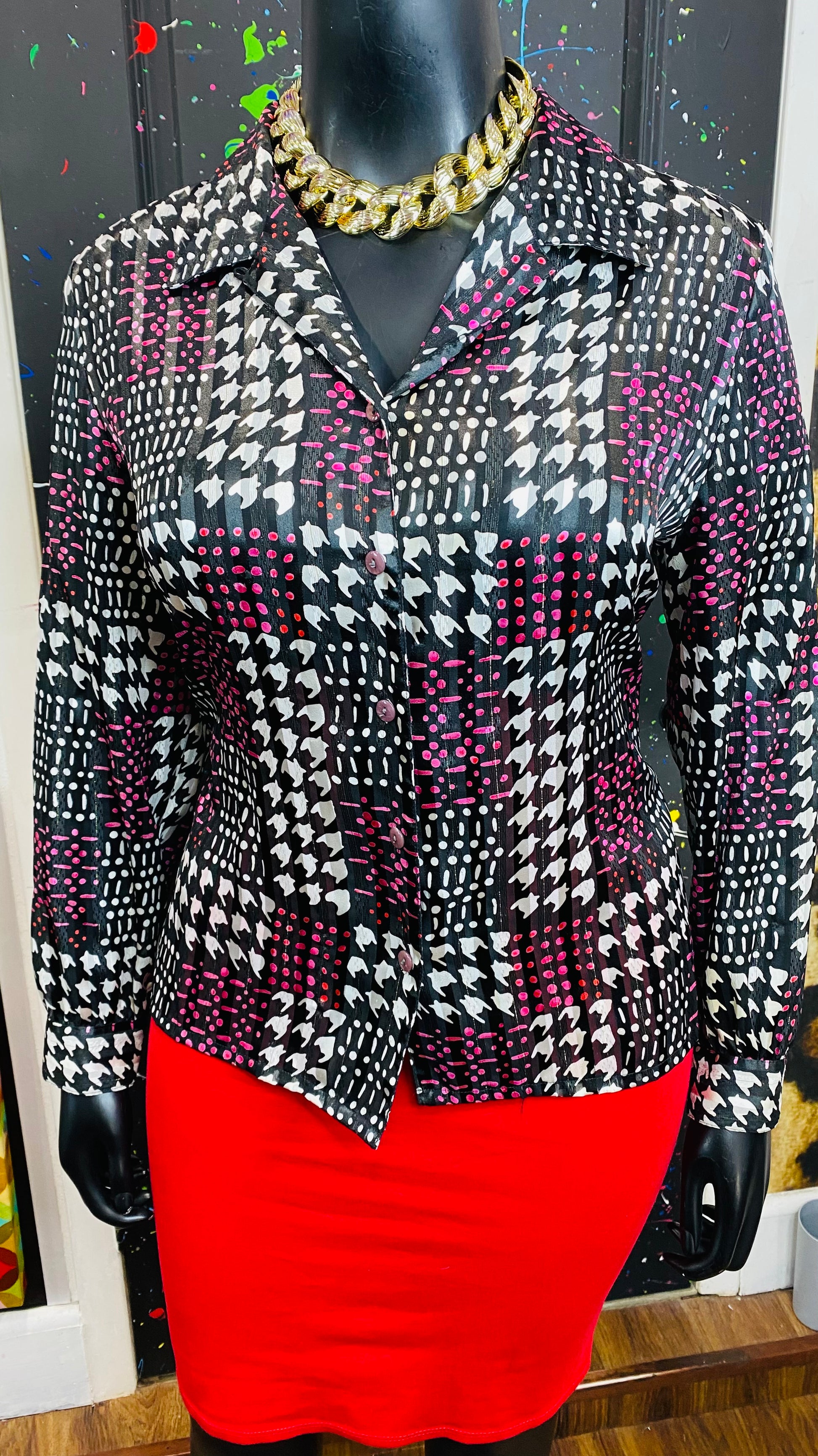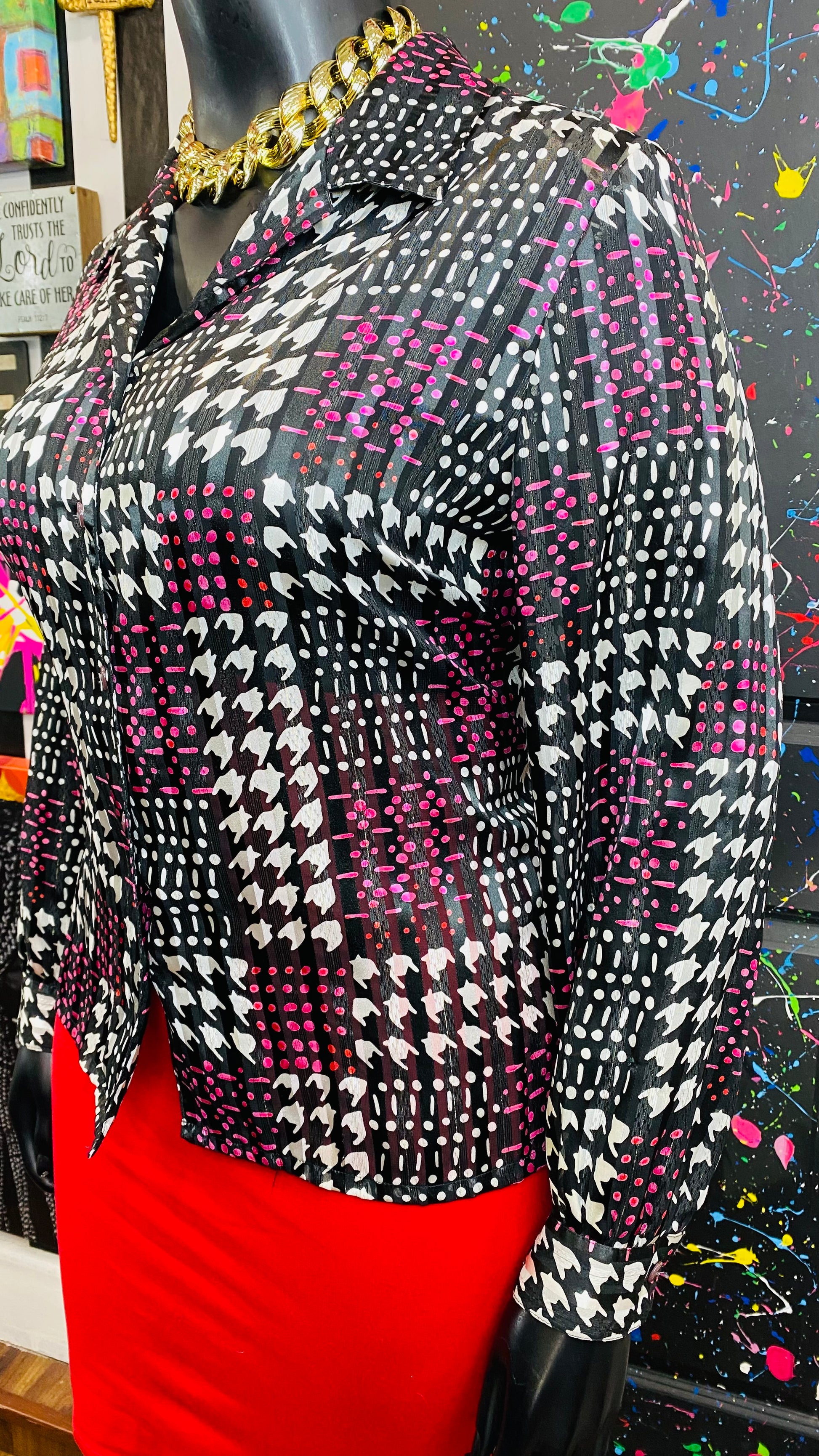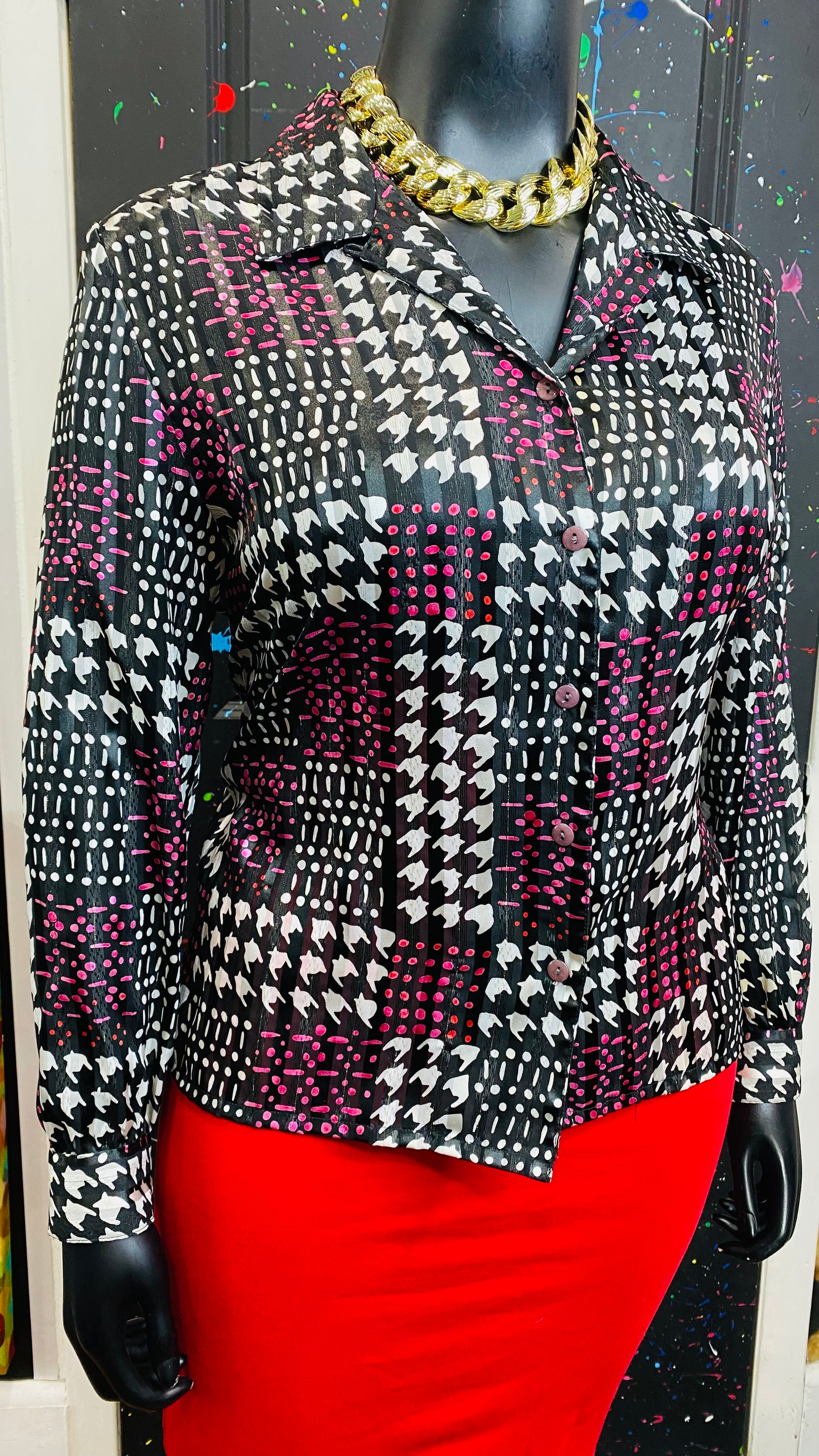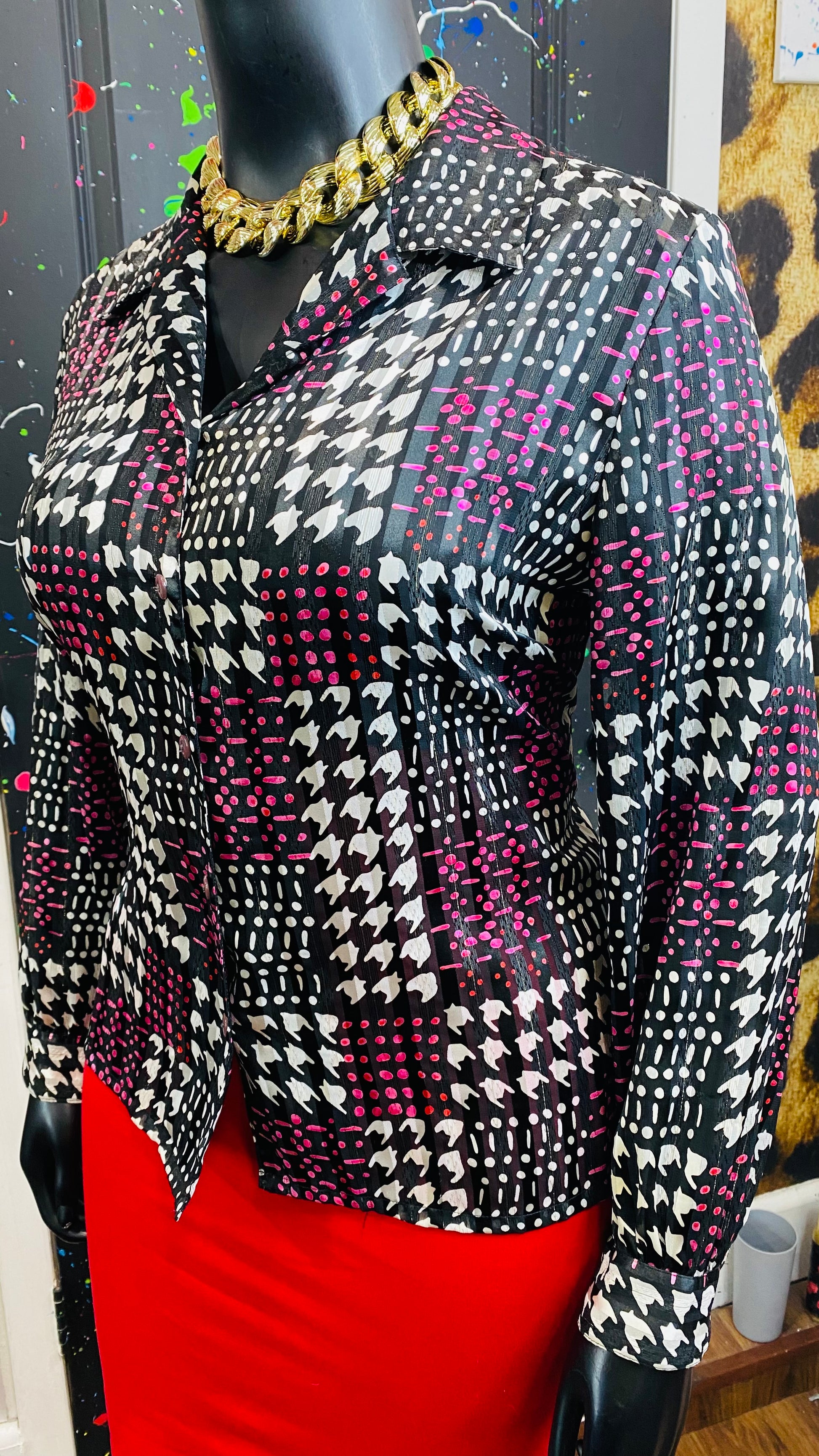 Vintage Sheer Pink Black & White Blouse (18)