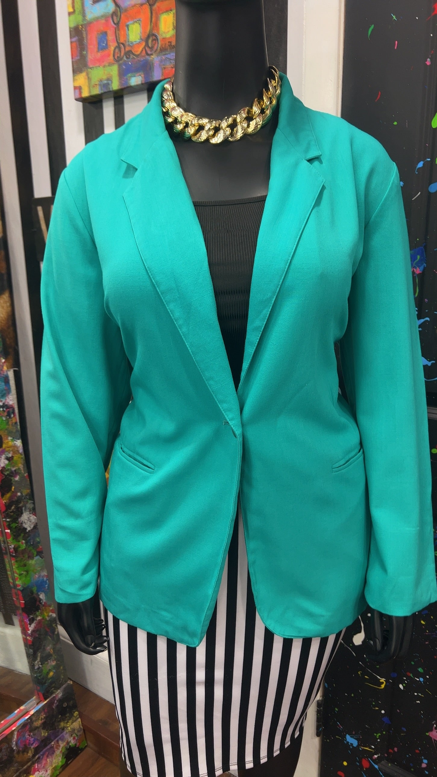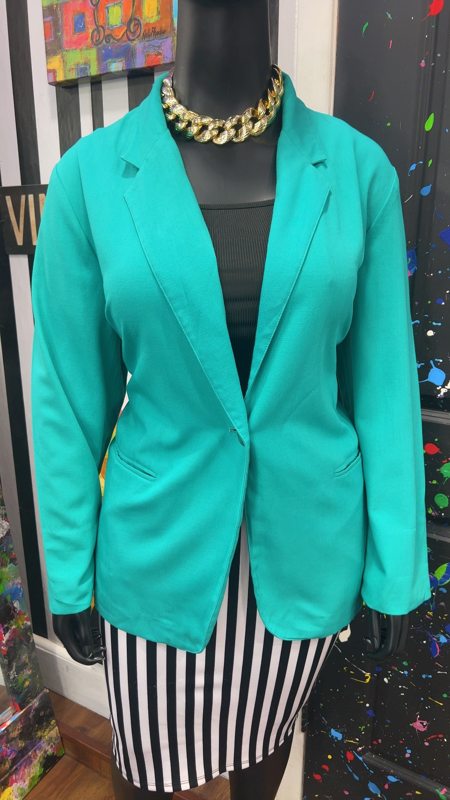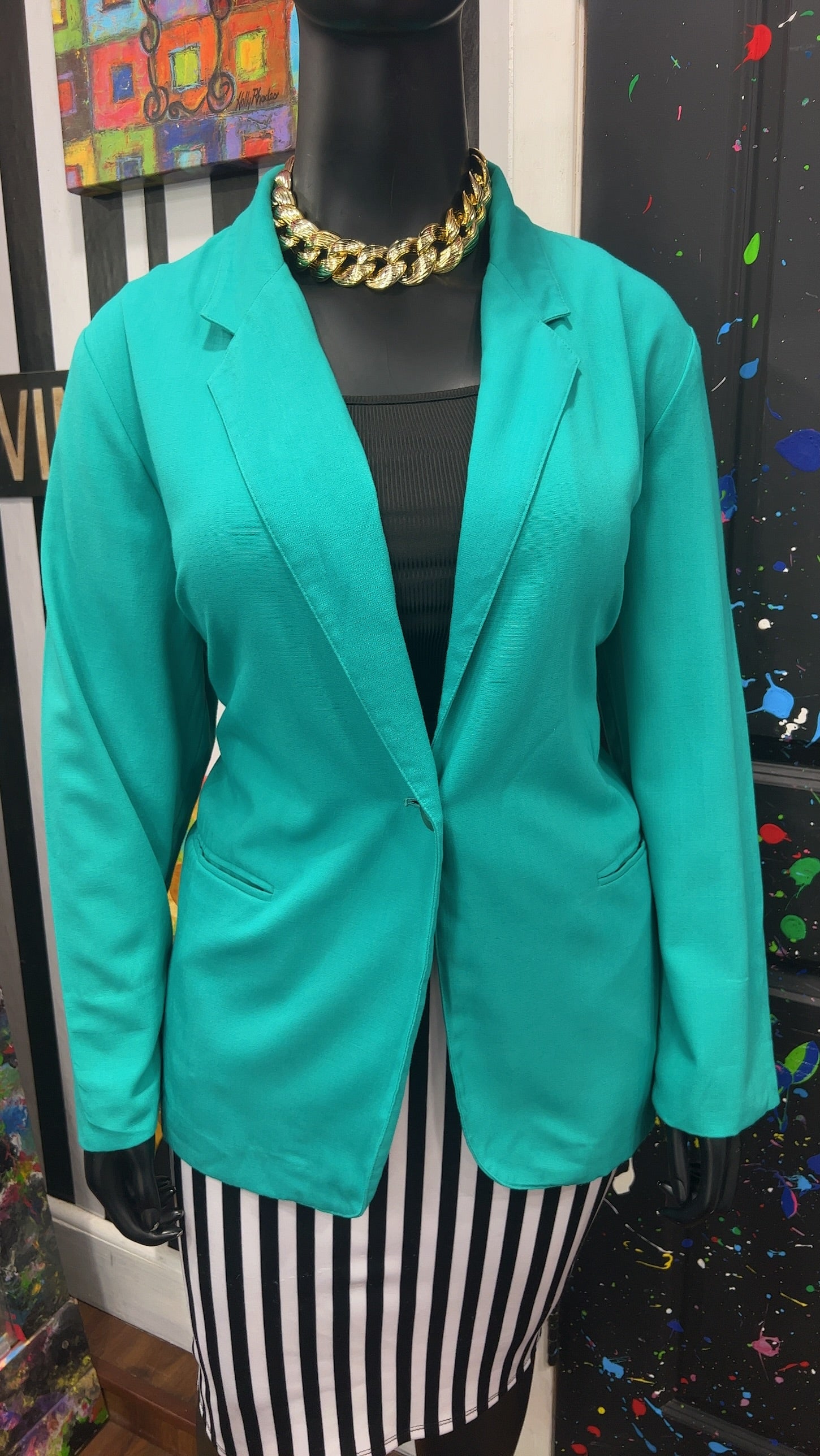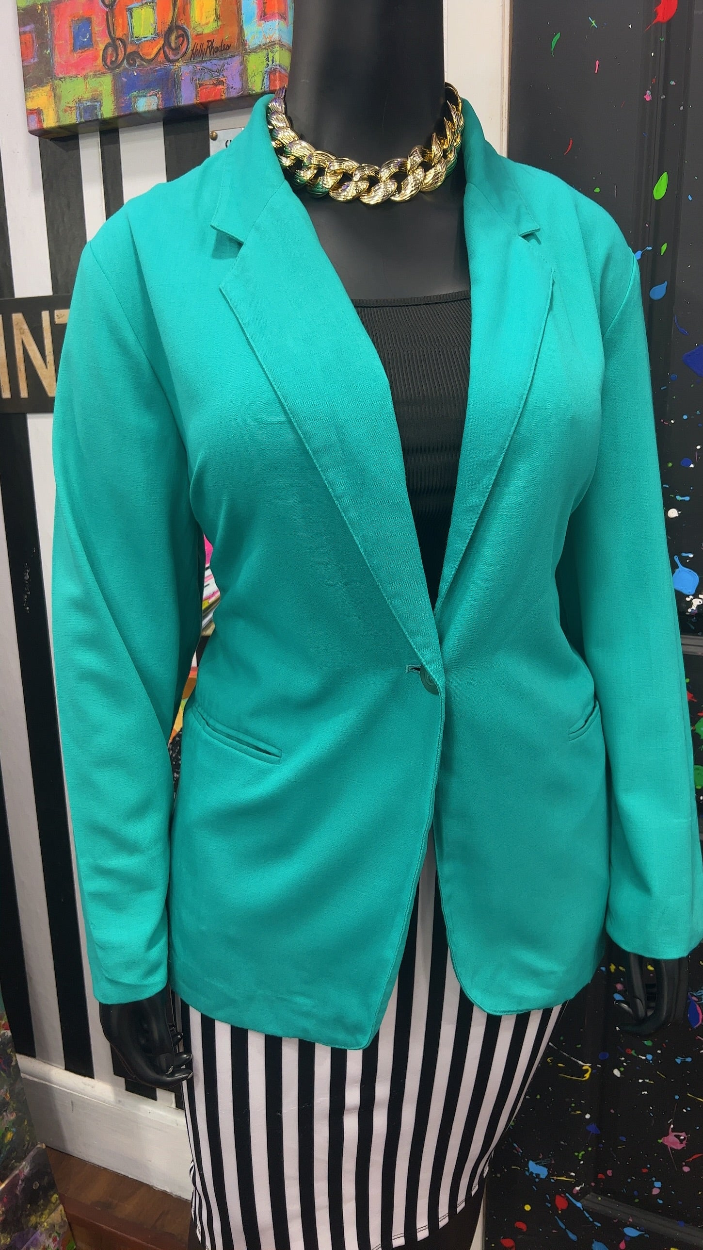 Vintage Solid Teal Blazer (24)