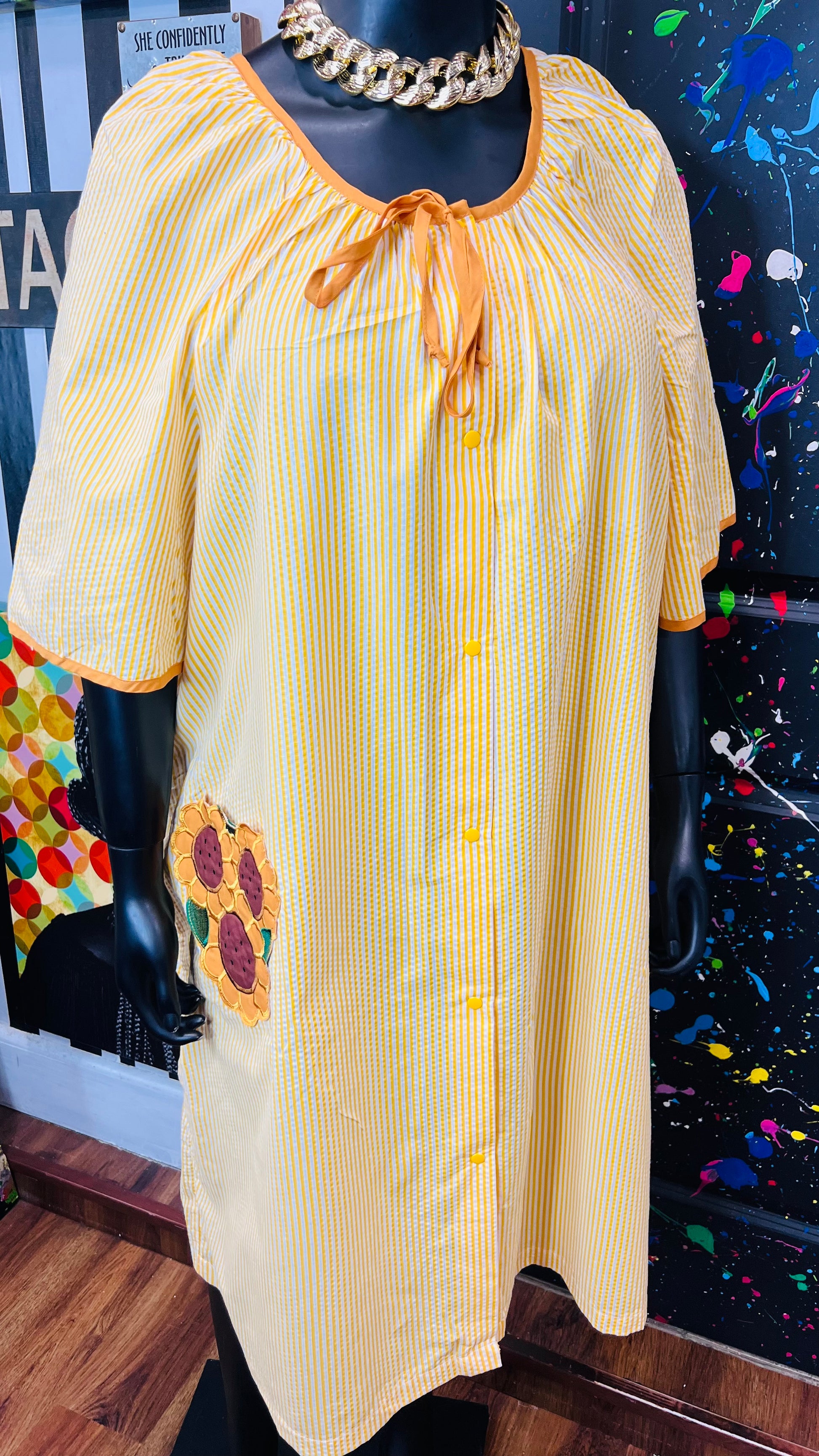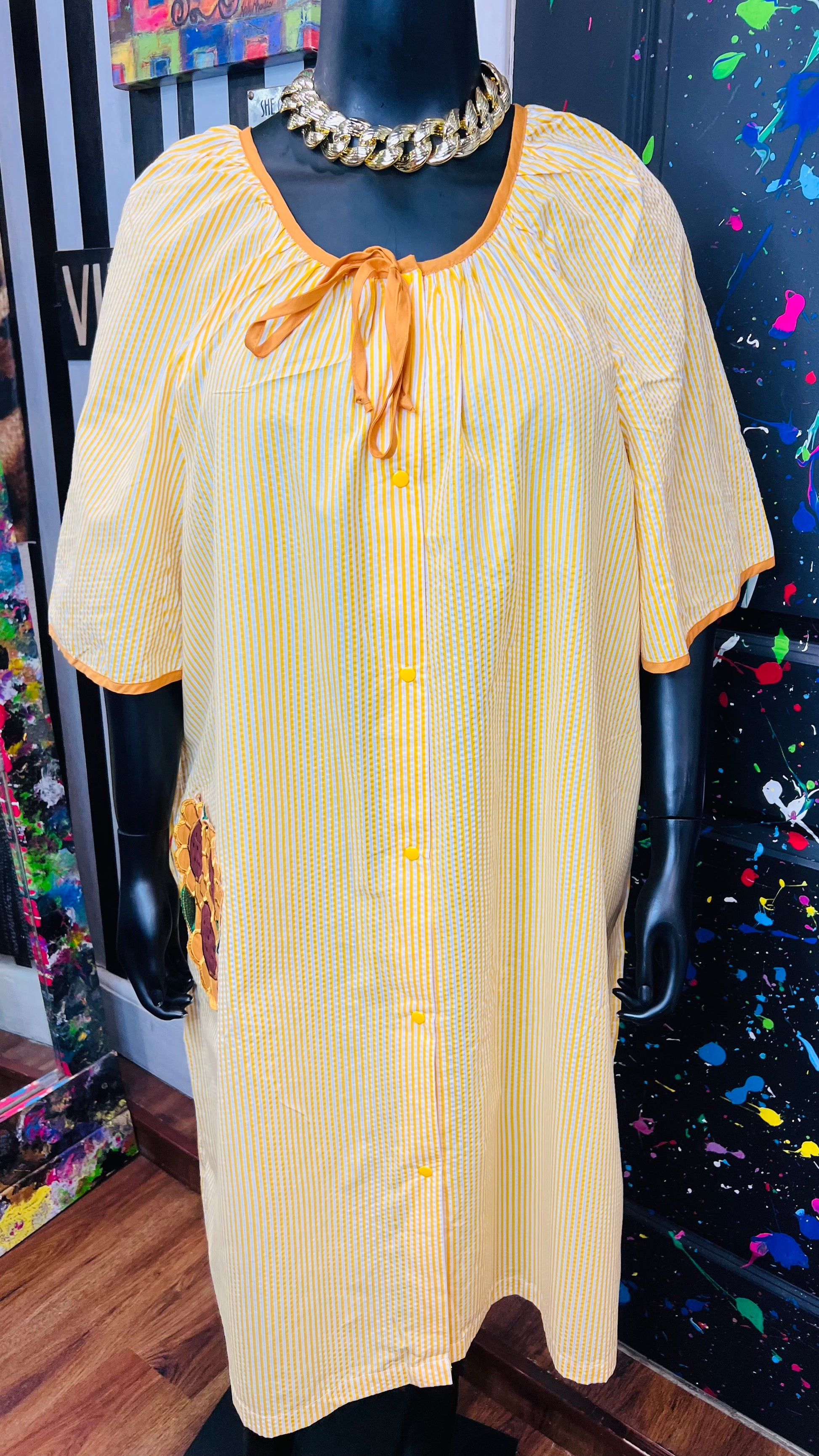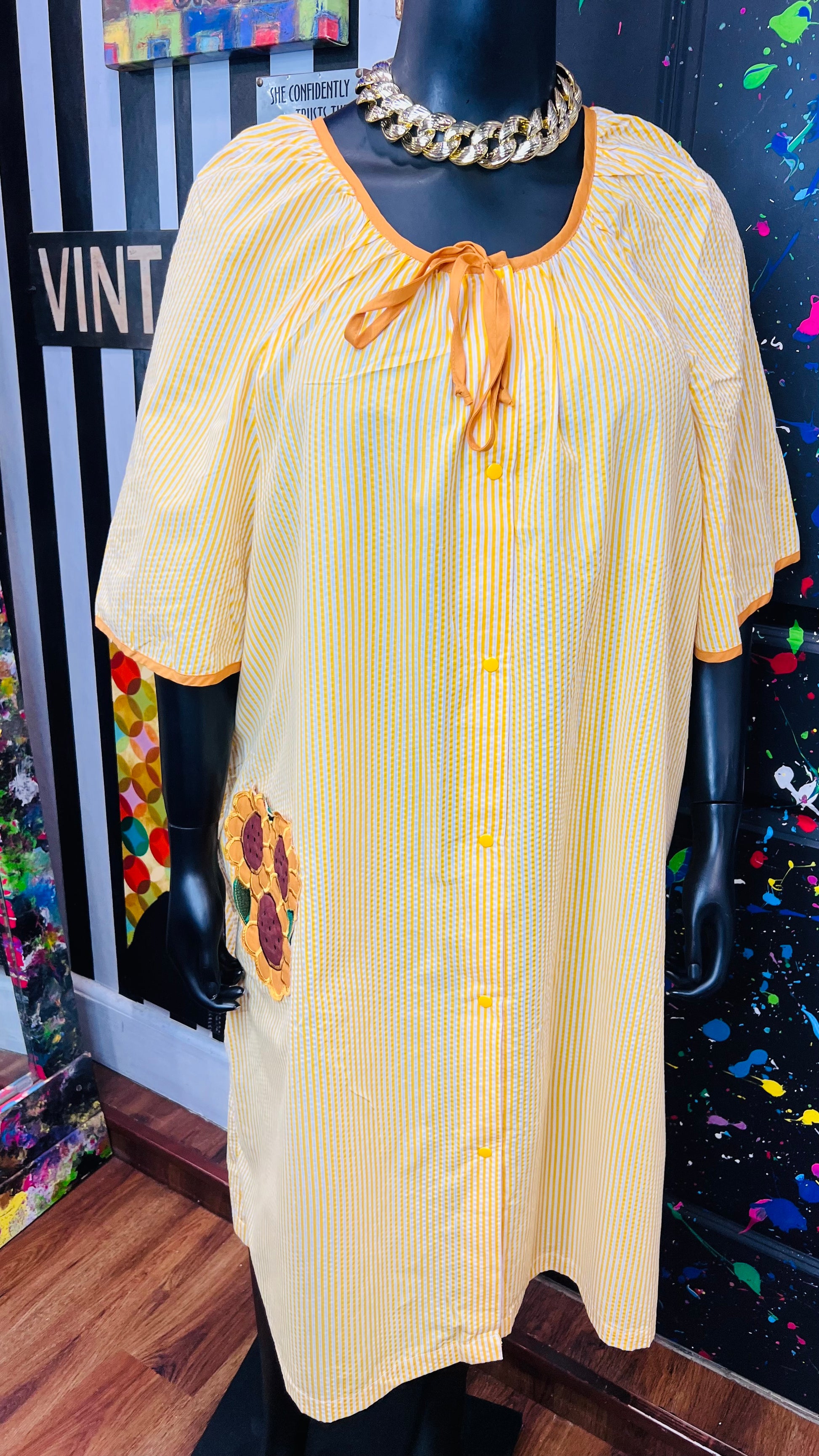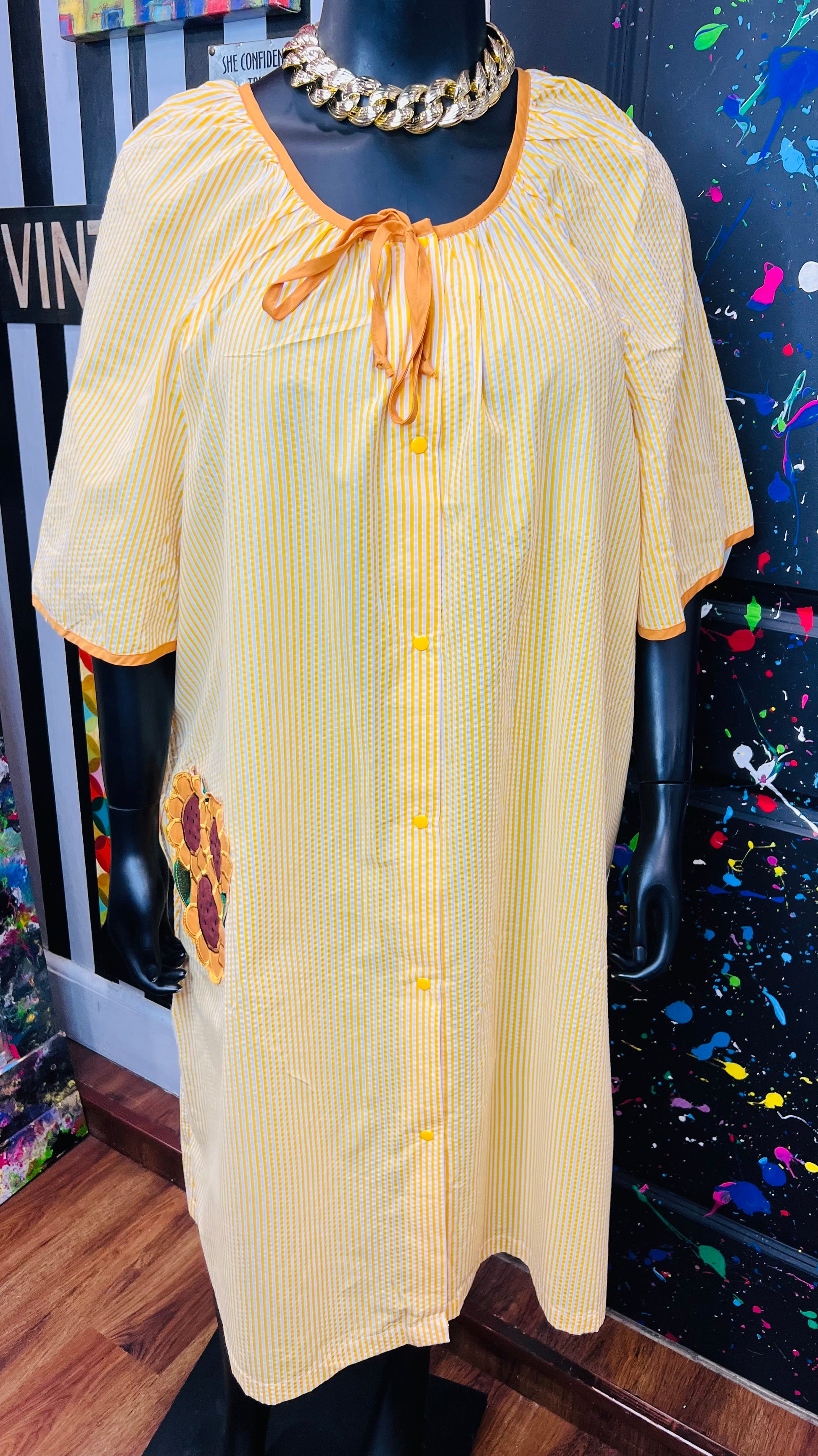 Vintage Striped Cotton Sunflower House Dress (24)