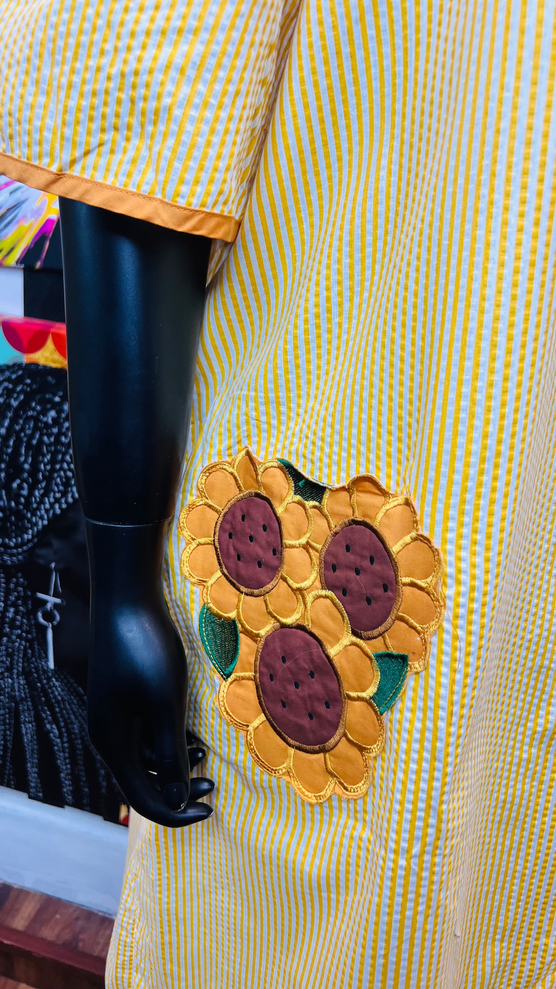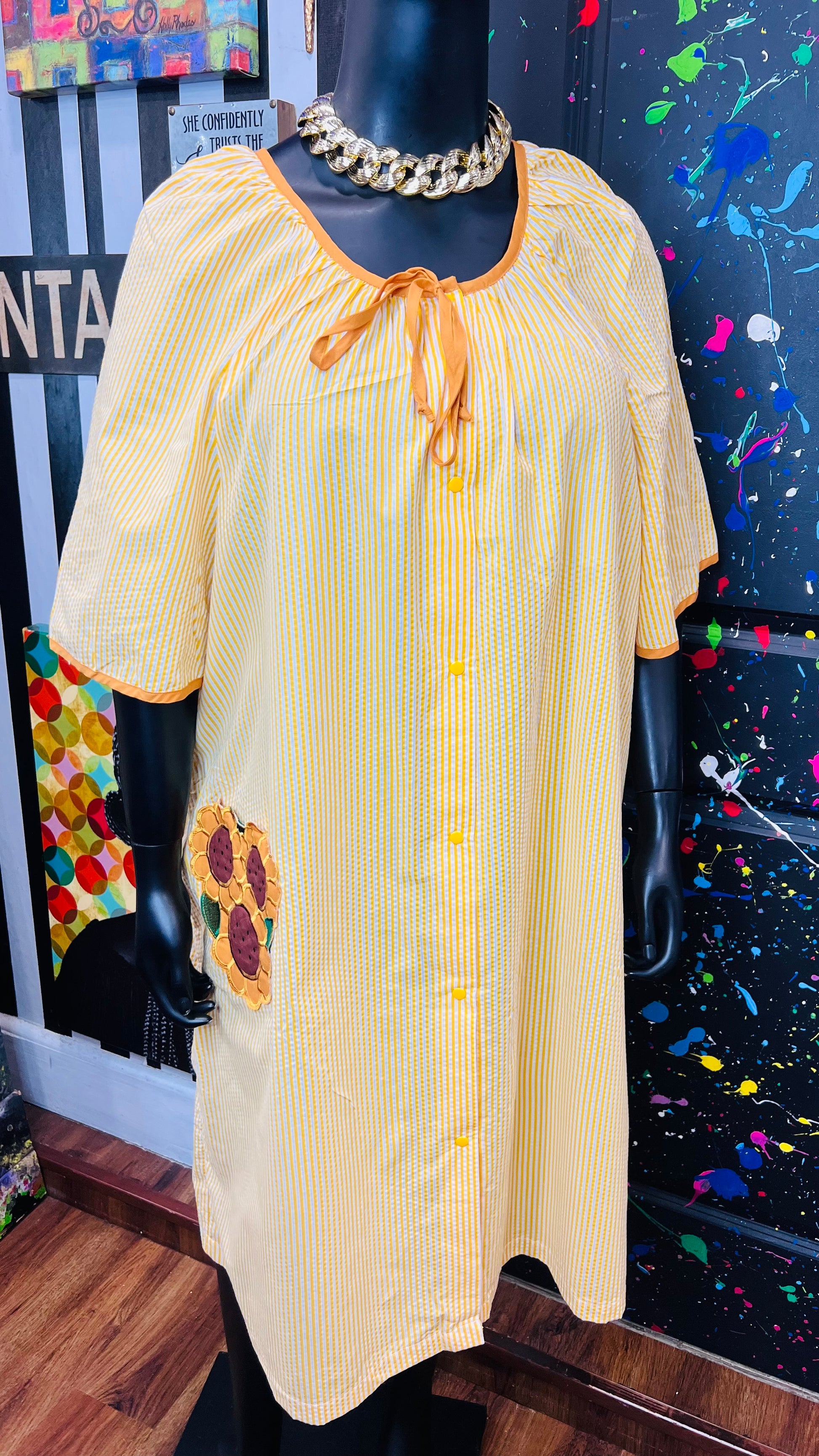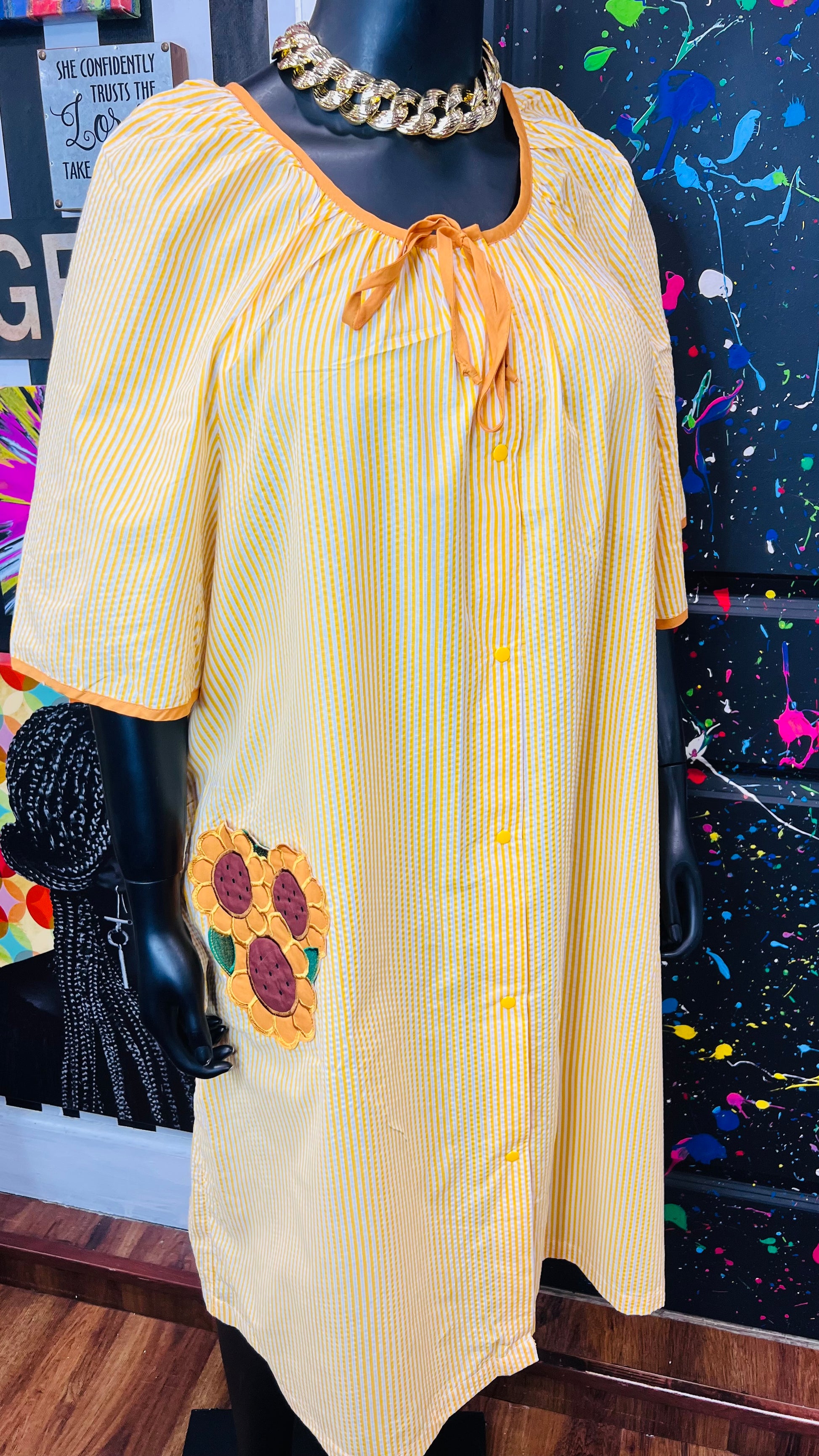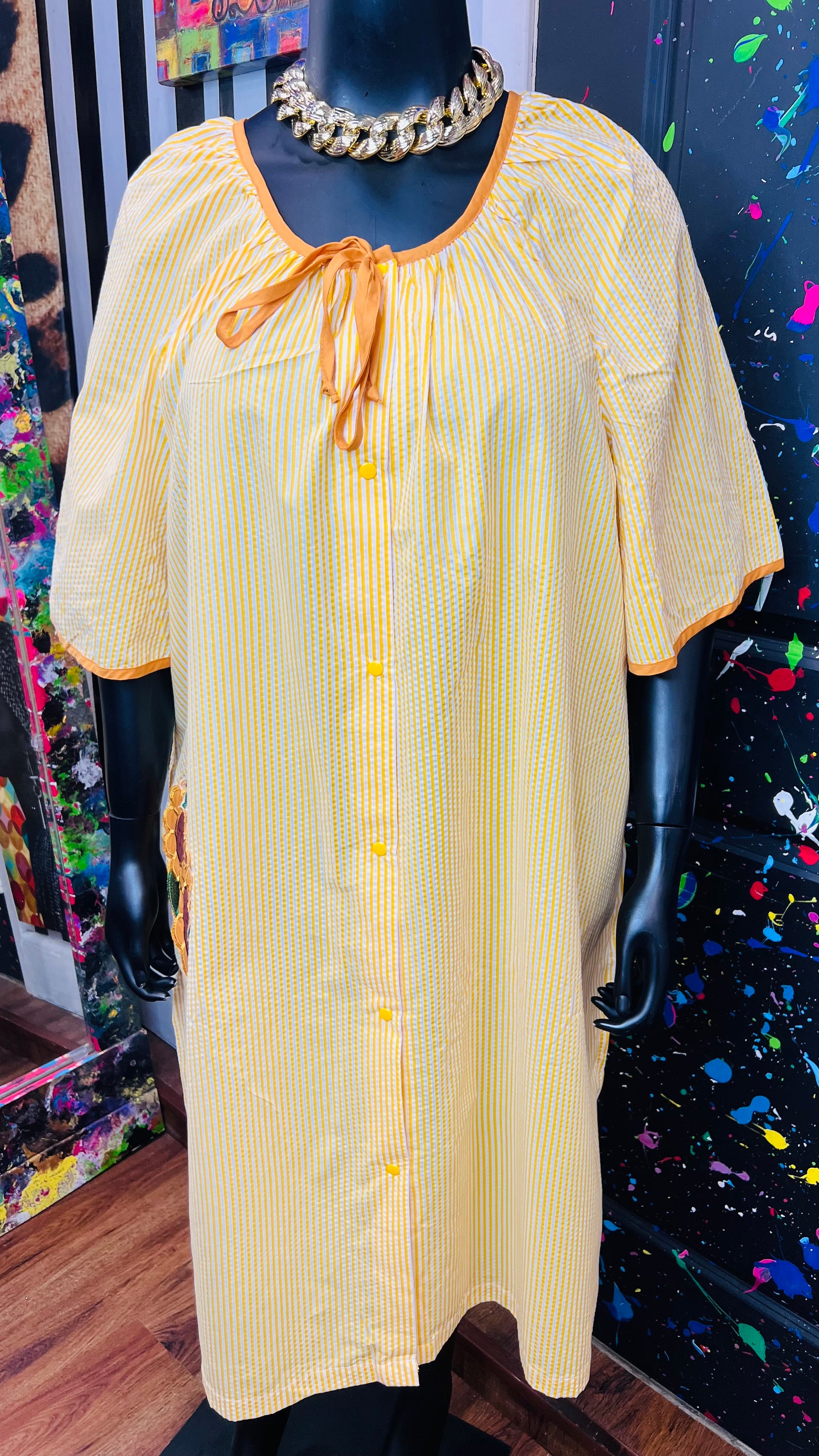 Vintage Striped Cotton Sunflower House Dress (24)