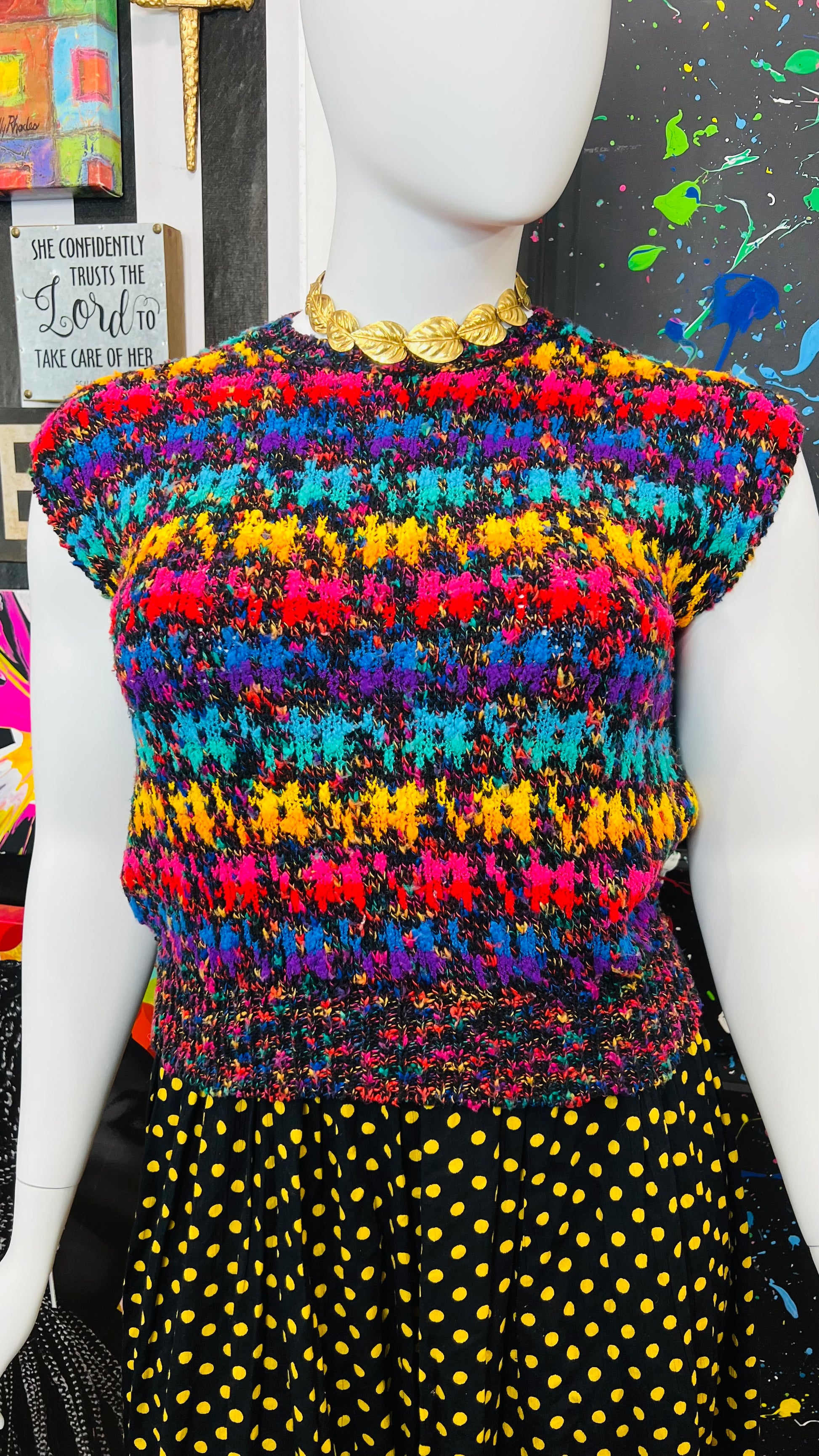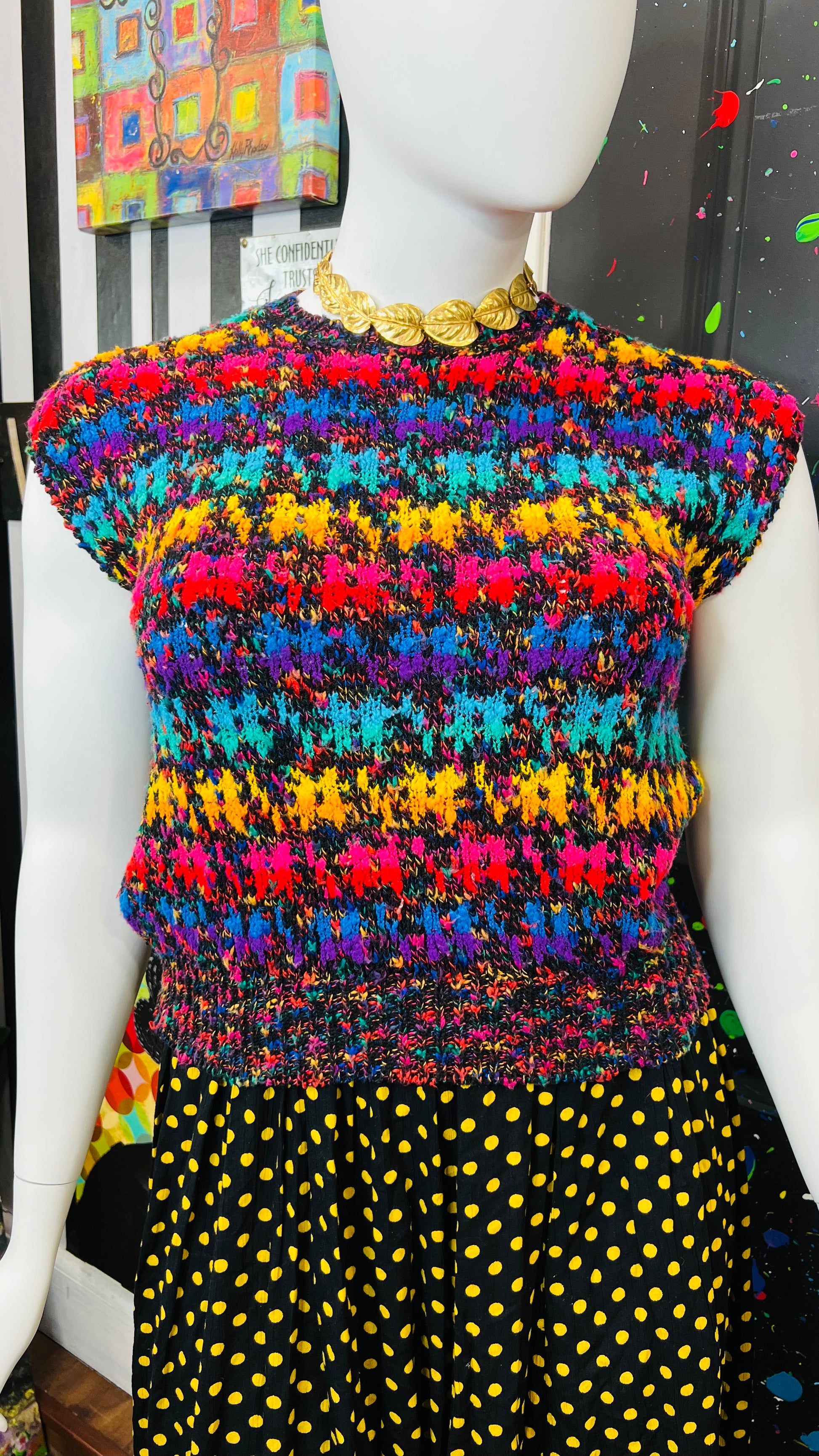 Vintage Colorful Knit Sweater Vest (14/16)