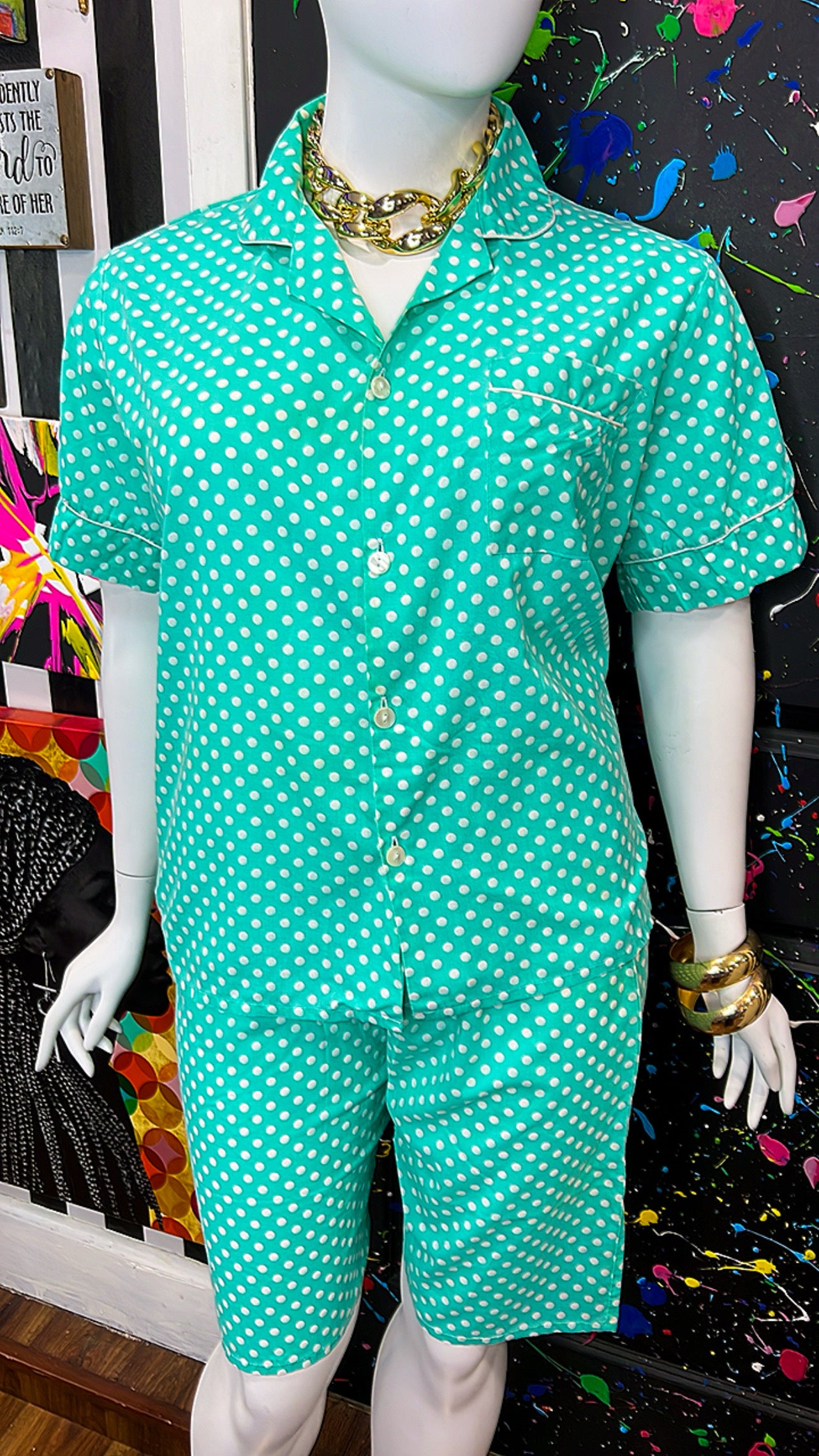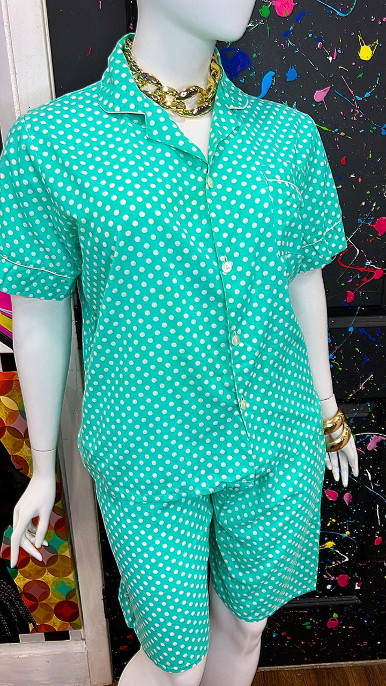 Vintage Teal & White Polka Dot Shorts Set (22)