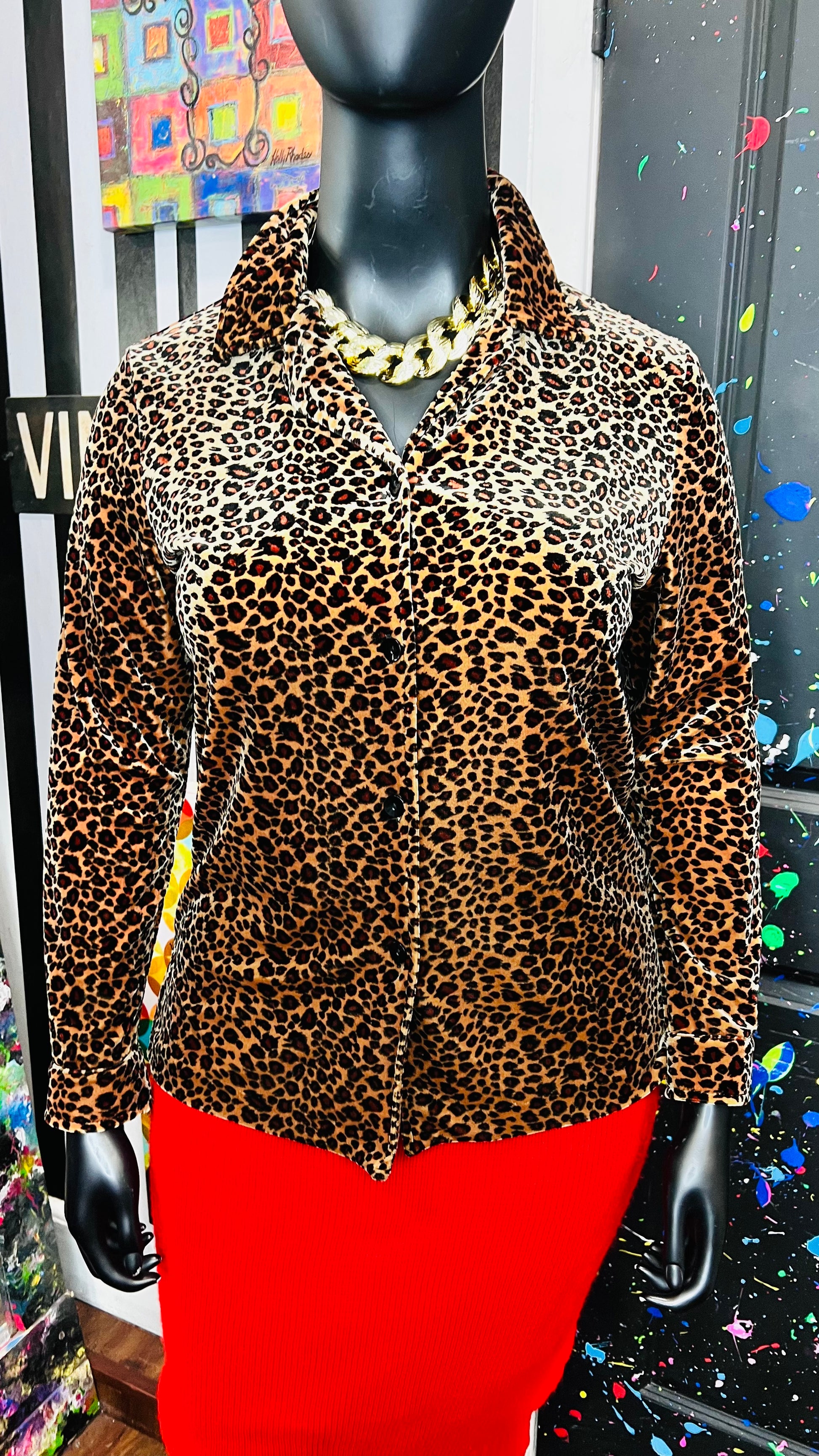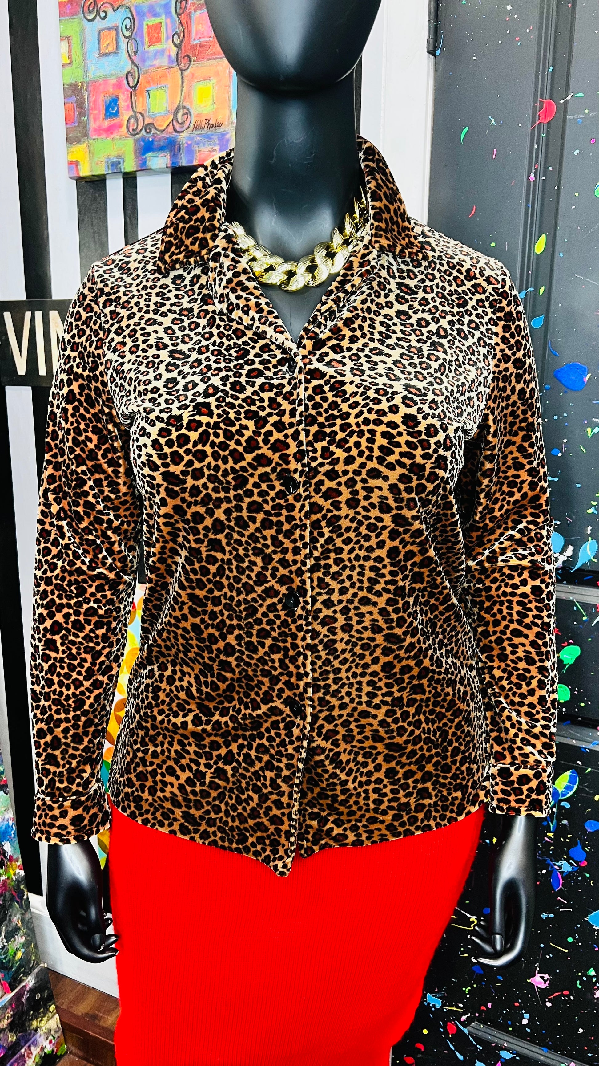 Vintage Velour Animal Print Blouse (14)