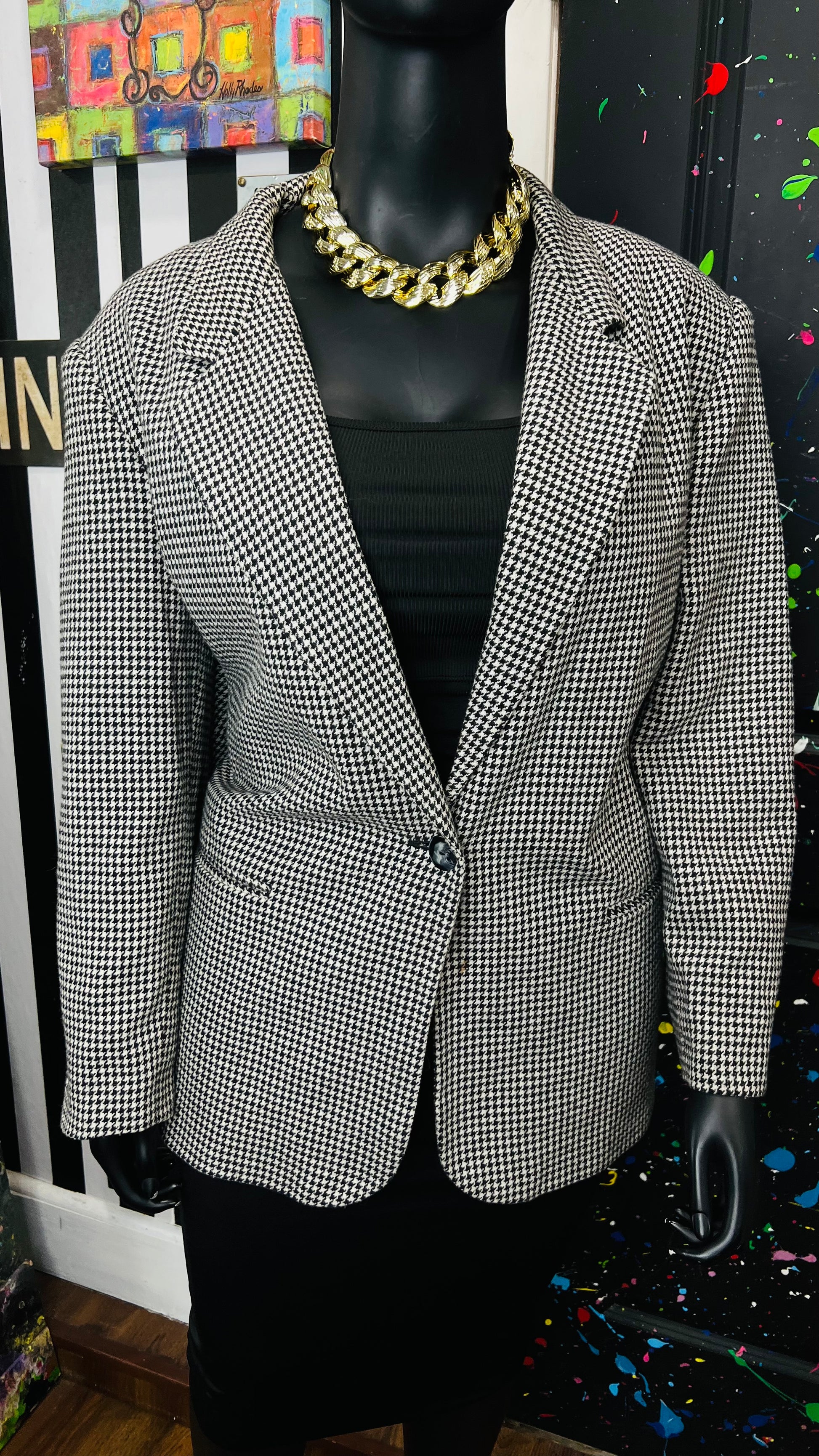 Vintage Wool Houndstooth Black & White Blazer (24)