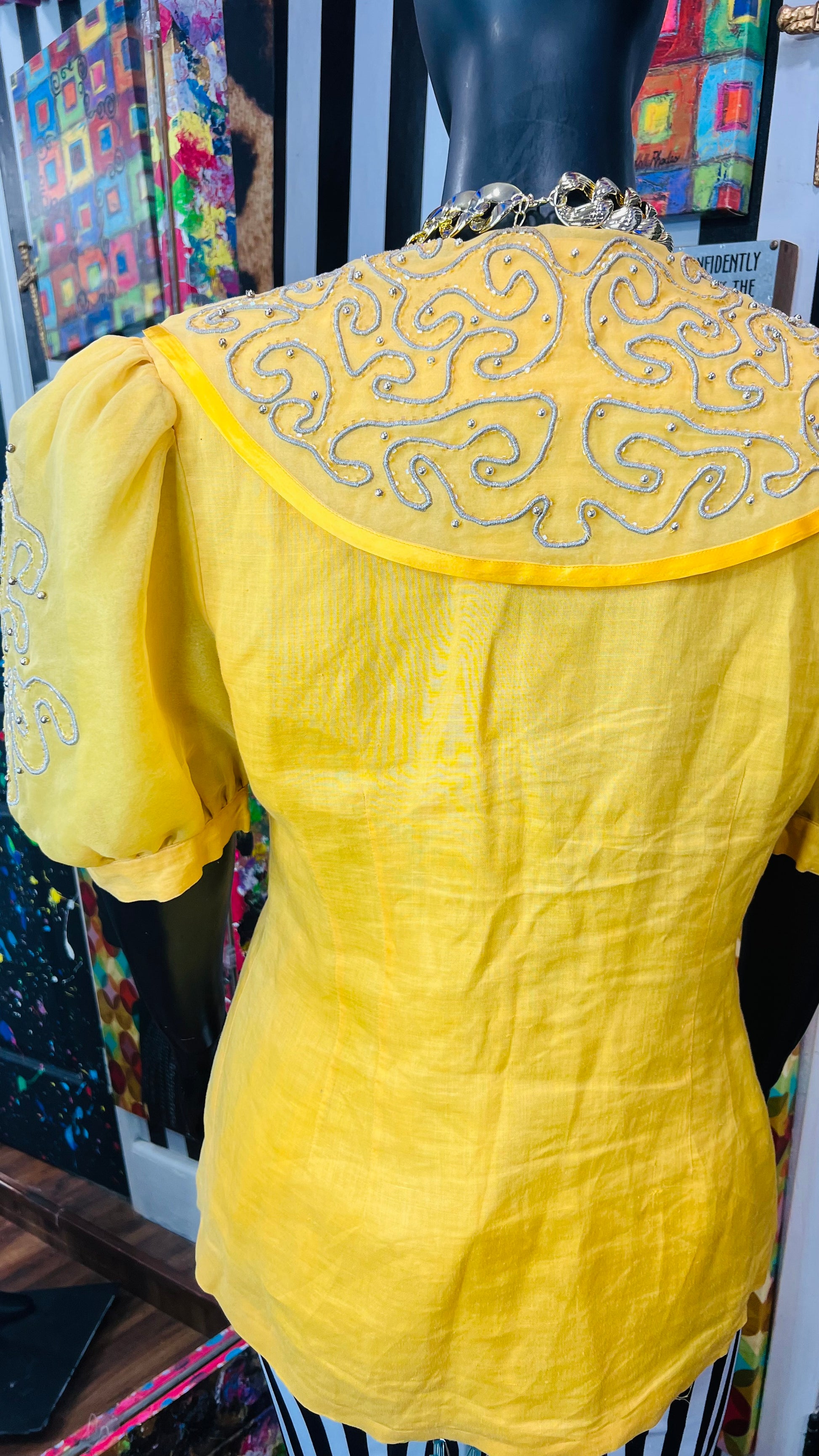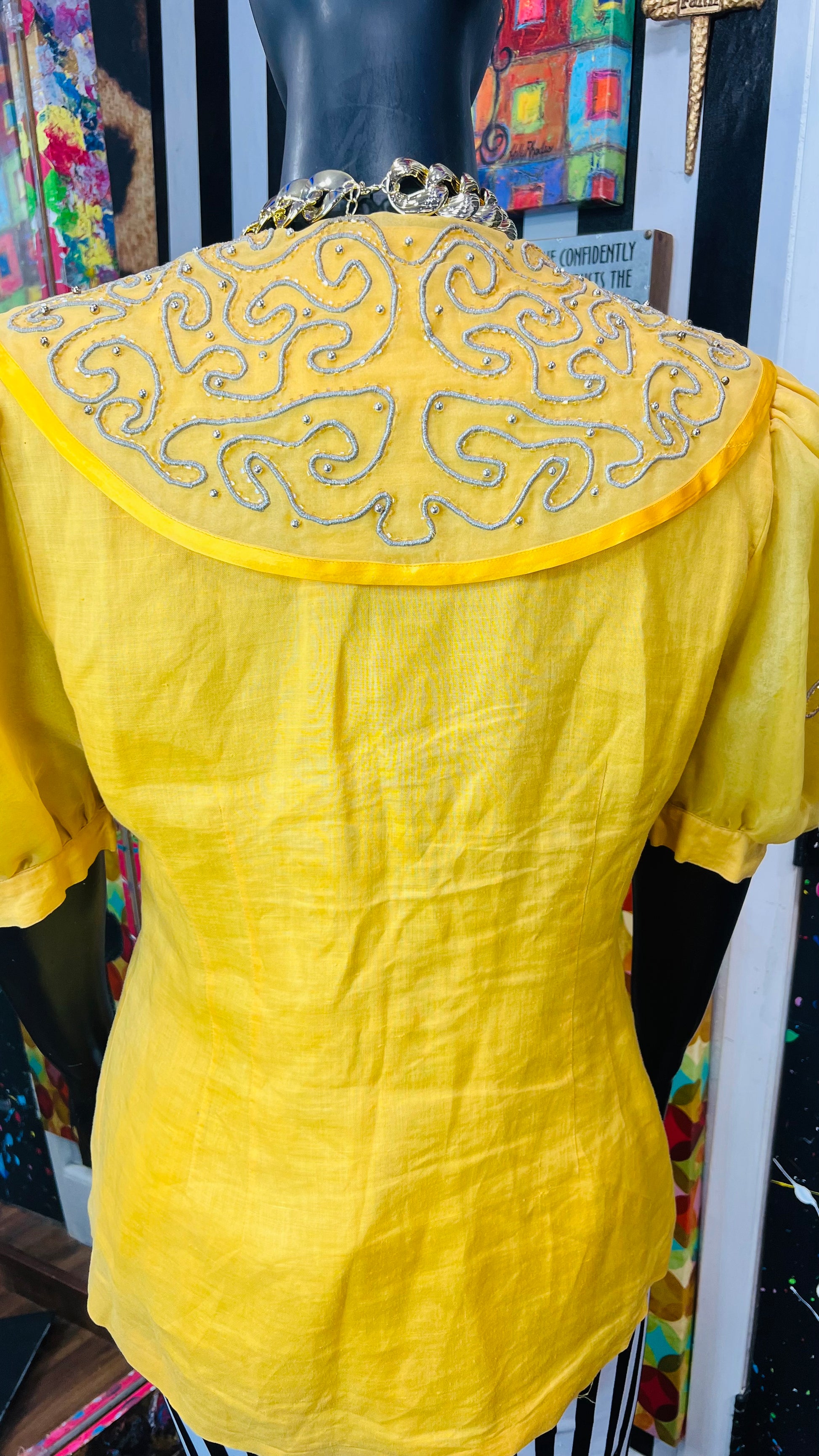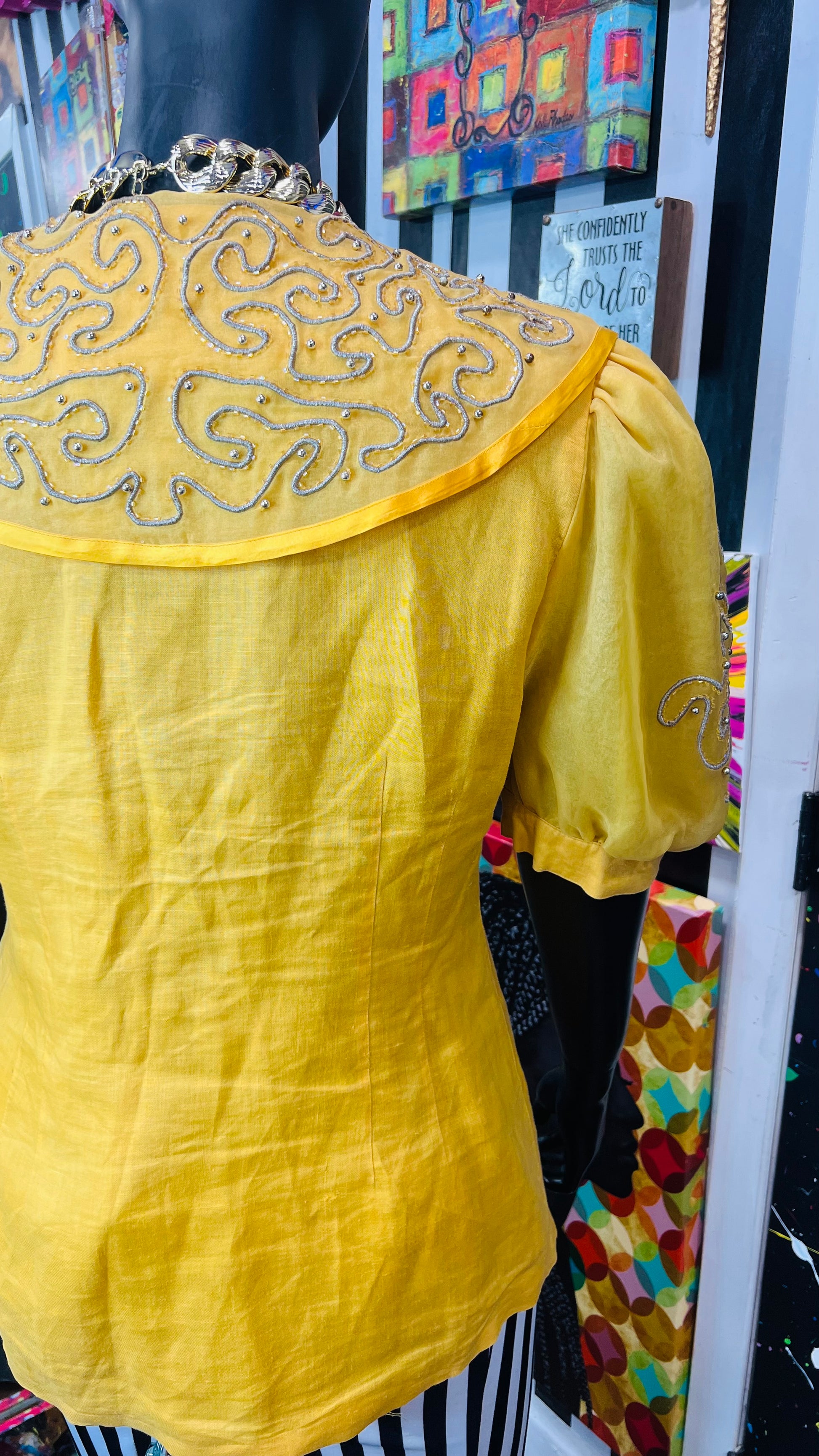Imperfection (see photos): Age and spot on front of blouse; can potentially be laundered out.