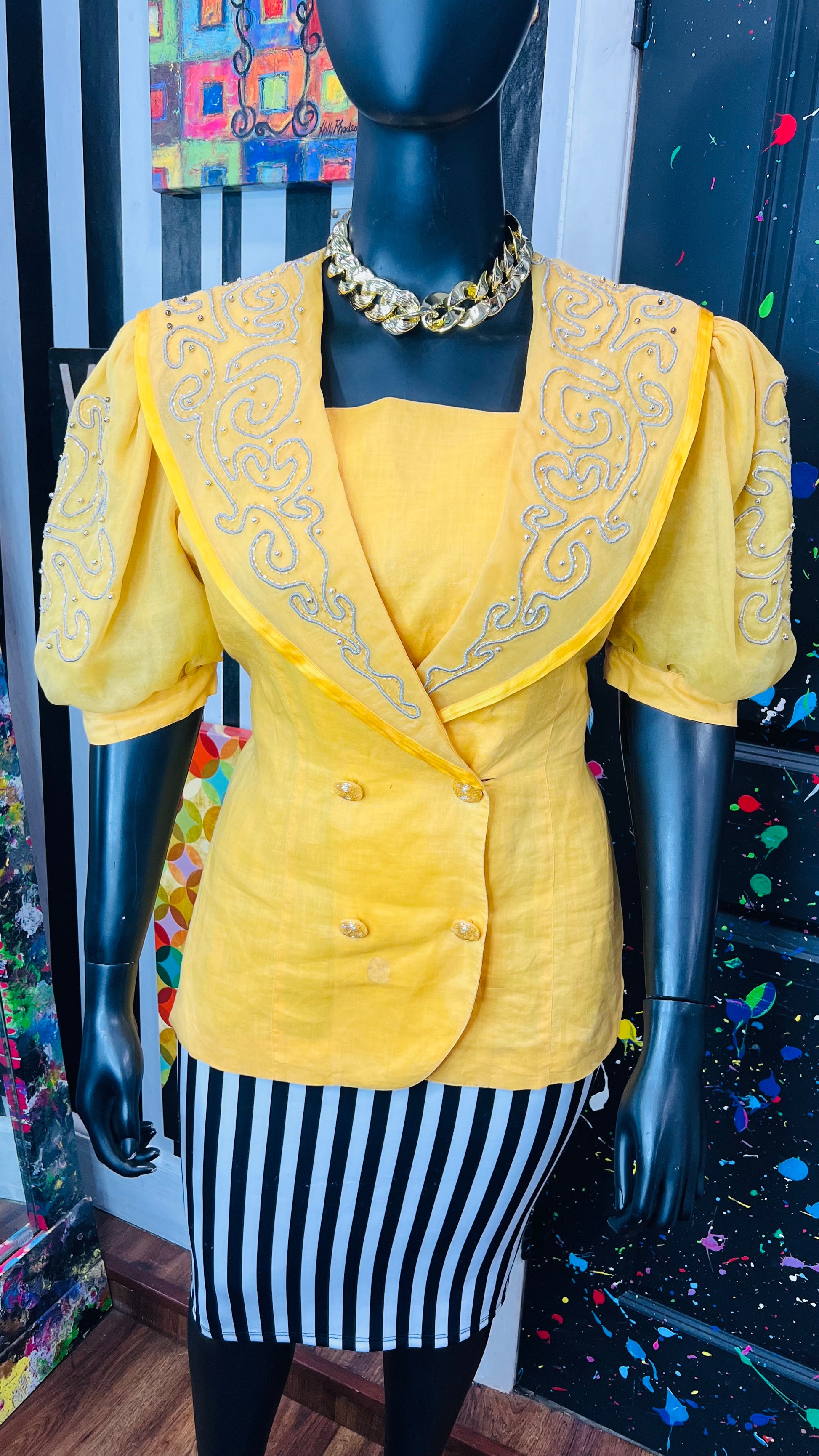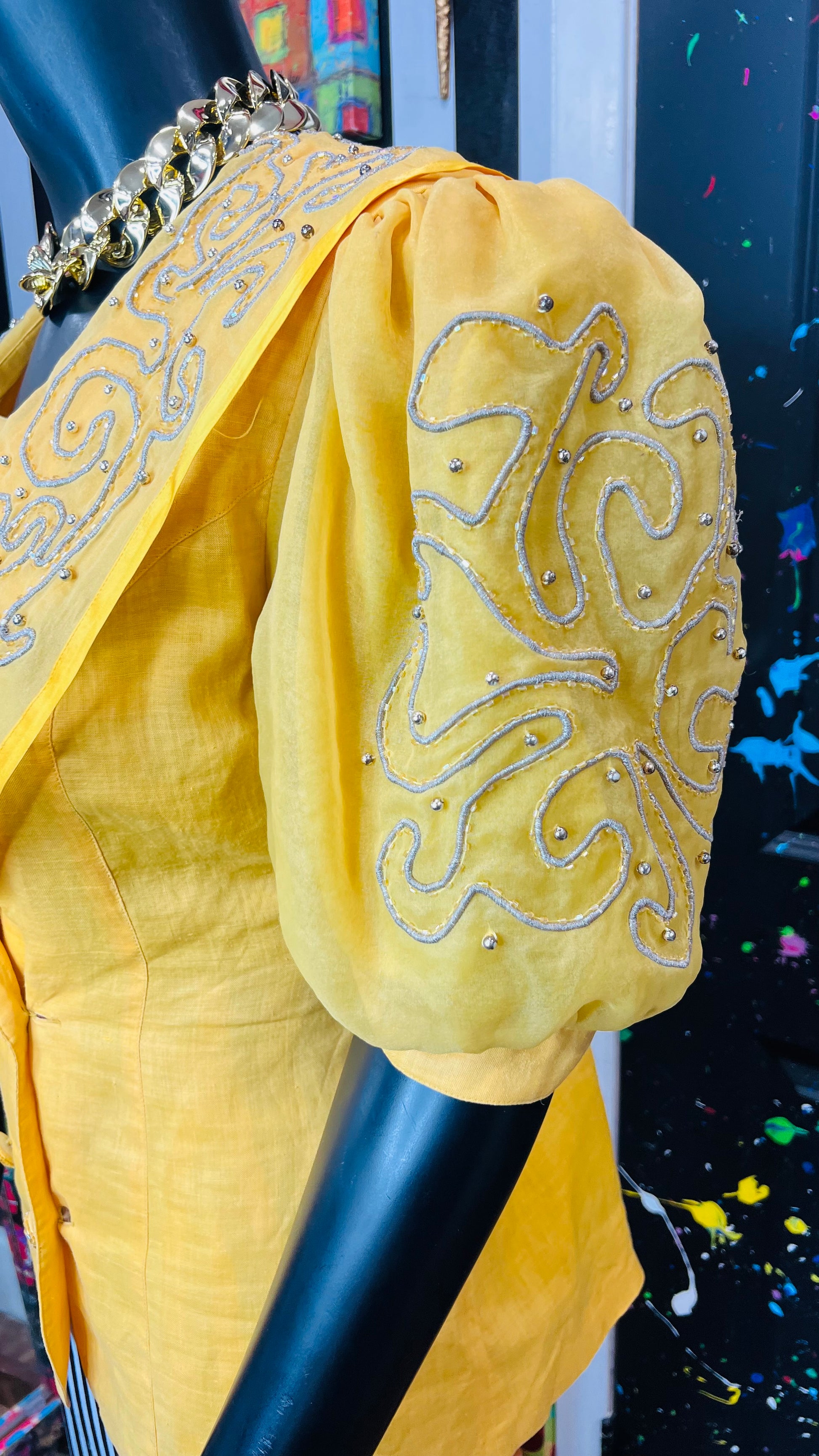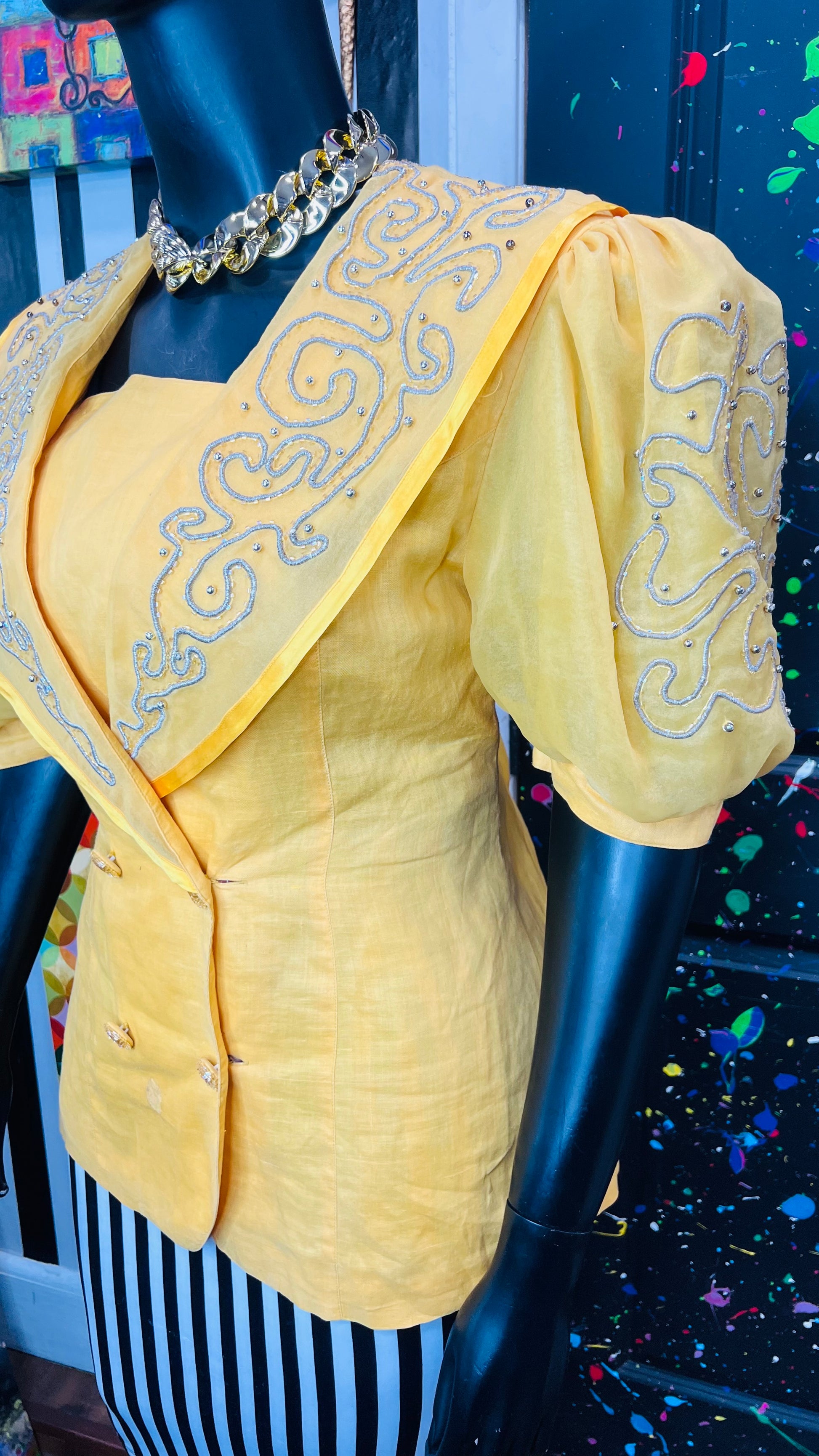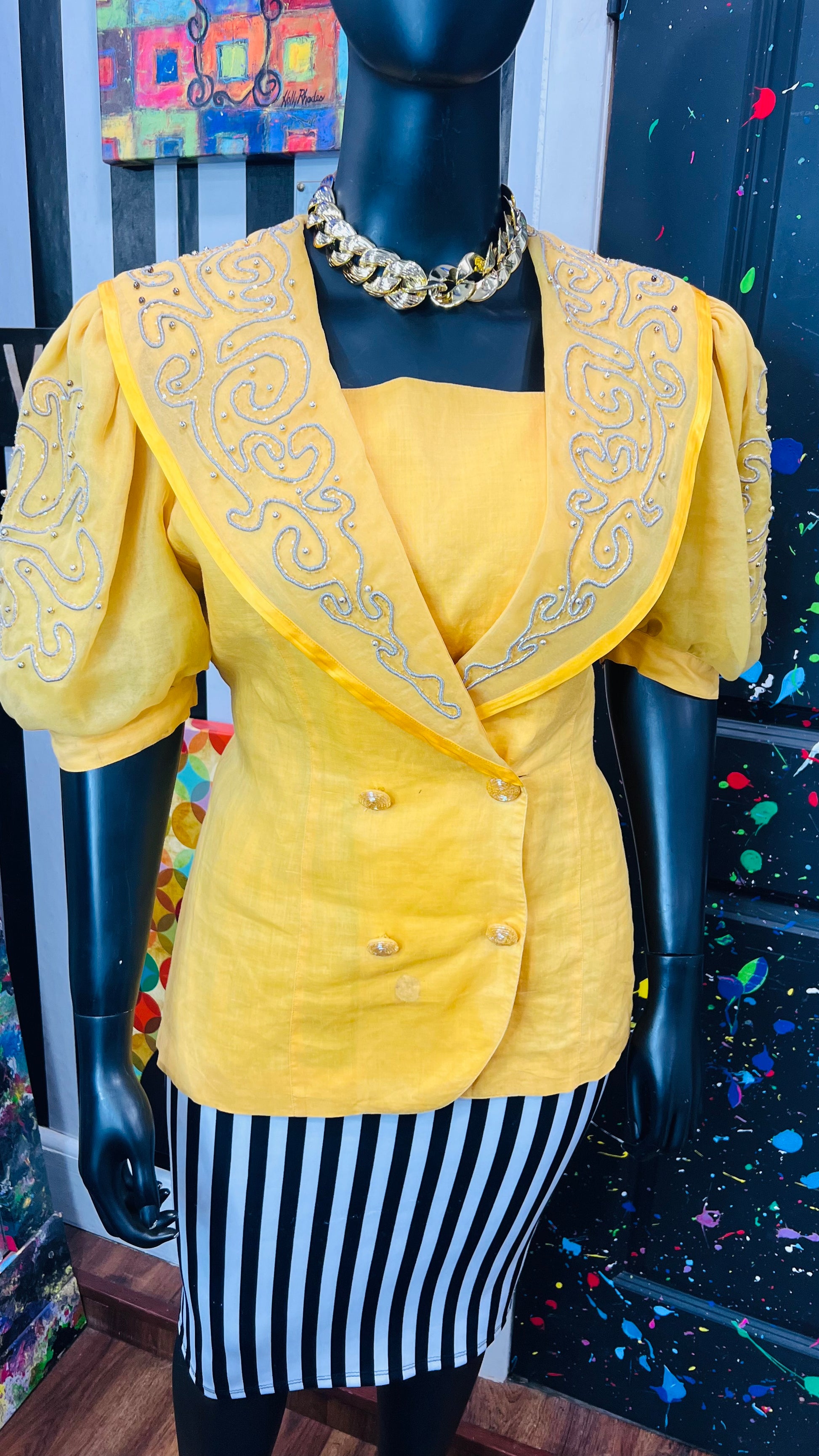Imperfection (see photos): Age and spot on front of blouse; can potentially be laundered out.