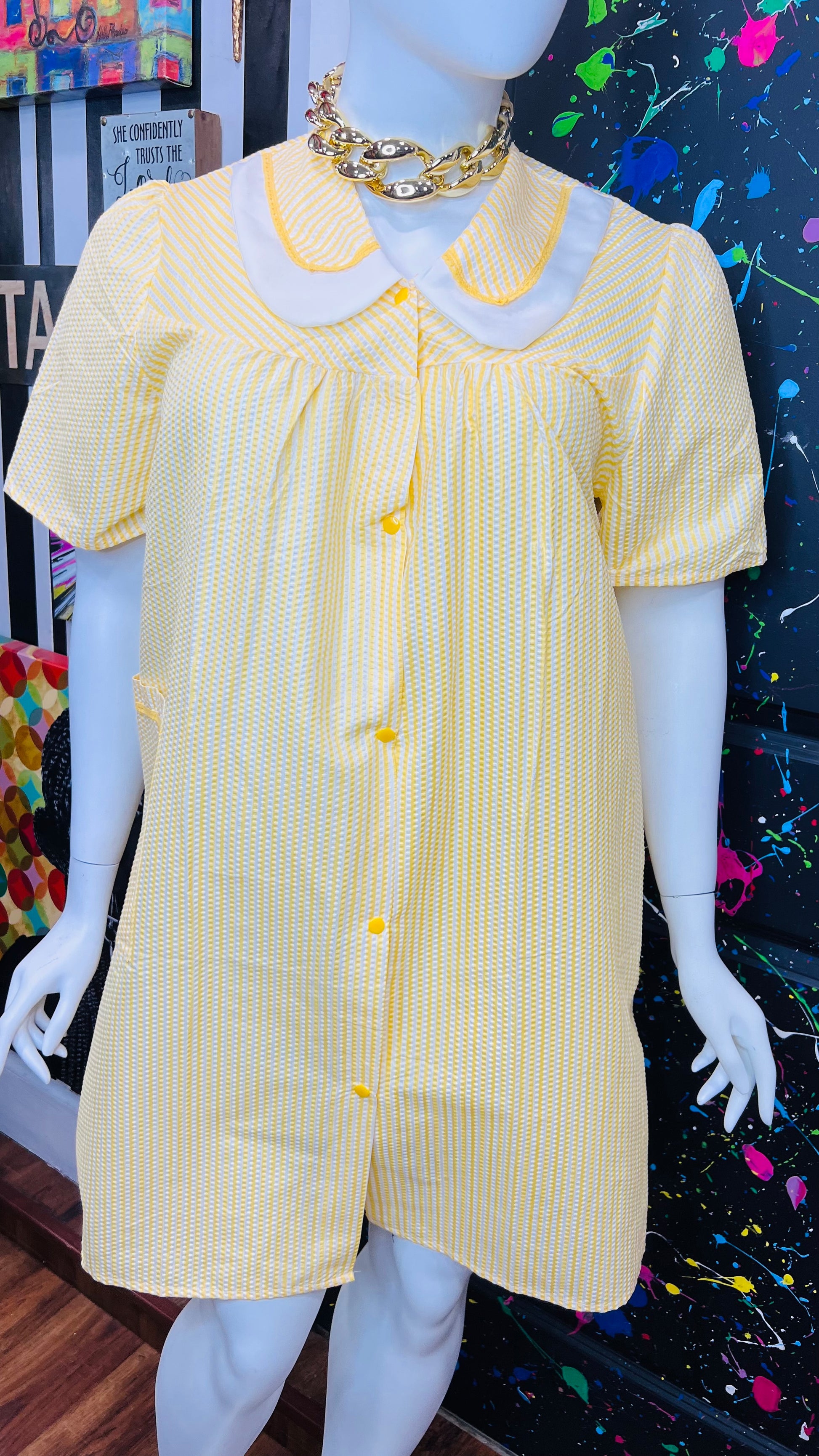 Vintage Yellow & White Striped Night Gown- Dead Stock New w/Tags (14)